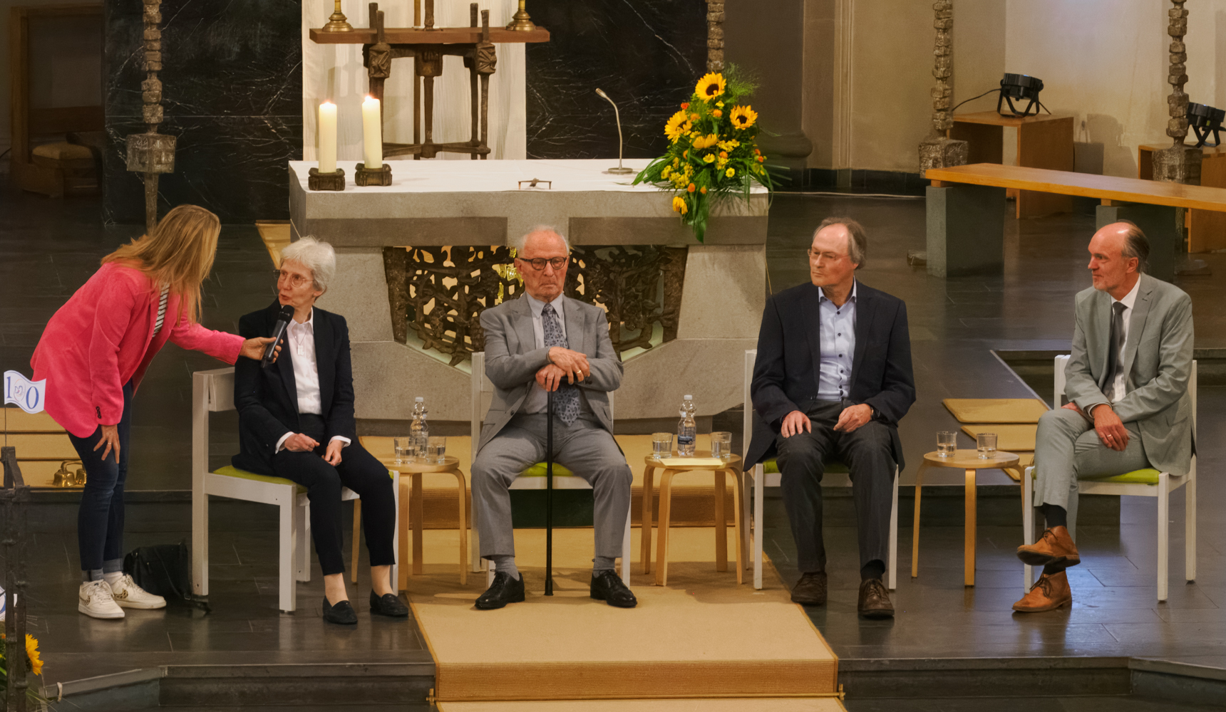 Im anschließenden Festakt, durch den WDR-Moderatorin und ehemalige Hildegardis-Schülerin Sandra Quellmann professionell führte, herrschte eine besonders festliche und zugleich fröhliche Atmosphäre. In der St. Elisabeth-Kirche präsentierten Schülerinnen und Schüler Ergebnisse aus der Projektwoche, die mit viel Kreativität und Engagement erarbeitet worden waren. In Interviews gaben die Augustiner Chorfrau Sr. Ulrike Brand aus Paderborn, die ehemaligen Schulleiter Hubert Lichter und Michael König und der aktuelle Schulleiter Thomas Schomaker spannende Einblicke in die Geschichte und Gegenwart der Schule. Eindrucksvoll musikalisch begleitet wurden Gottesdienst und Festakt vom Schul-Orchester und Sopranistin Irene Kurka, die Lieder der Namenspatronin der Schule, Hildegard von Bingen, vortrug.