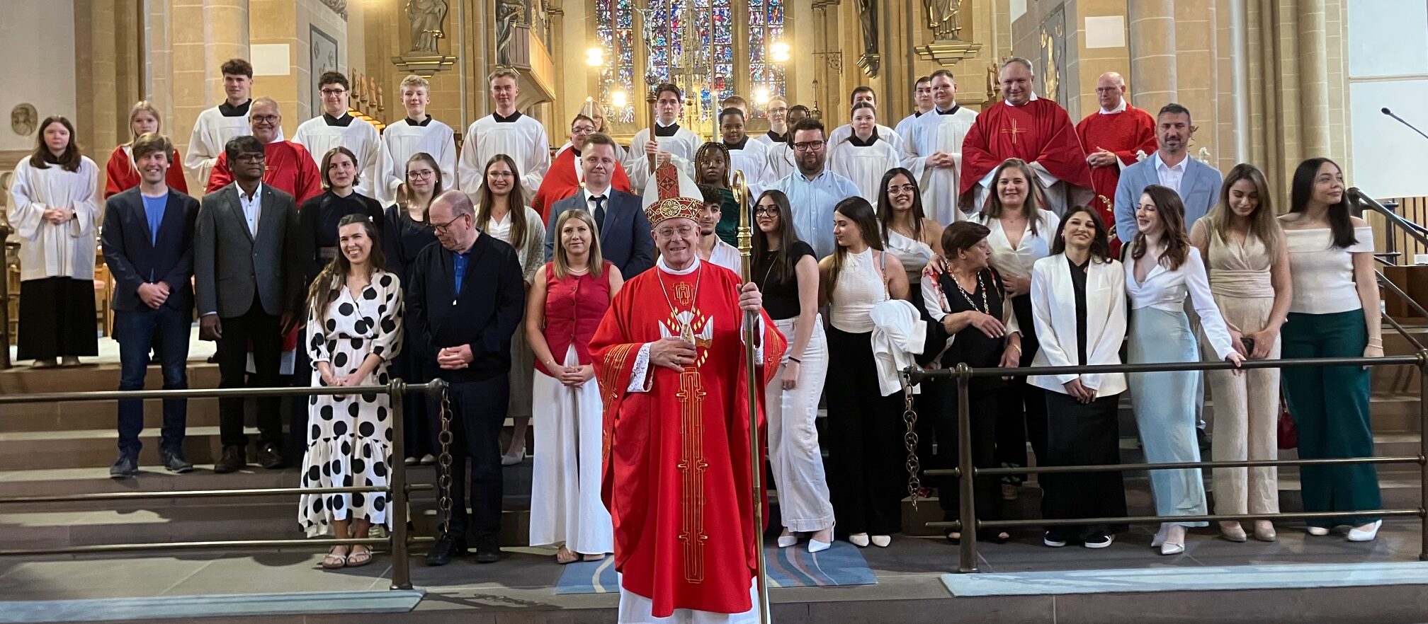 „Manche haben als Jugendliche einfach die Gelegenheit zur Firmung verpasst“, erklärte Weihbischof König. „Andere haben einen bewussten Weg in die katholische Kirche gefunden.“ Besonders bewegend war für Weihbischof König die Geschichte eines Firmbewerbers, der über die Nähe zu Klöstern und seine Liebe zur Eucharistie zum katholischen Glauben fand. Die Vielfalt der Lebensgeschichten spiegelte sich in der Feier wider – eine lebendige Glaubensgemeinschaft mit ganz unterschiedlichen Biografien und doch einer gemeinsamen Hoffnung: Stärkung im Heiligen Geist.