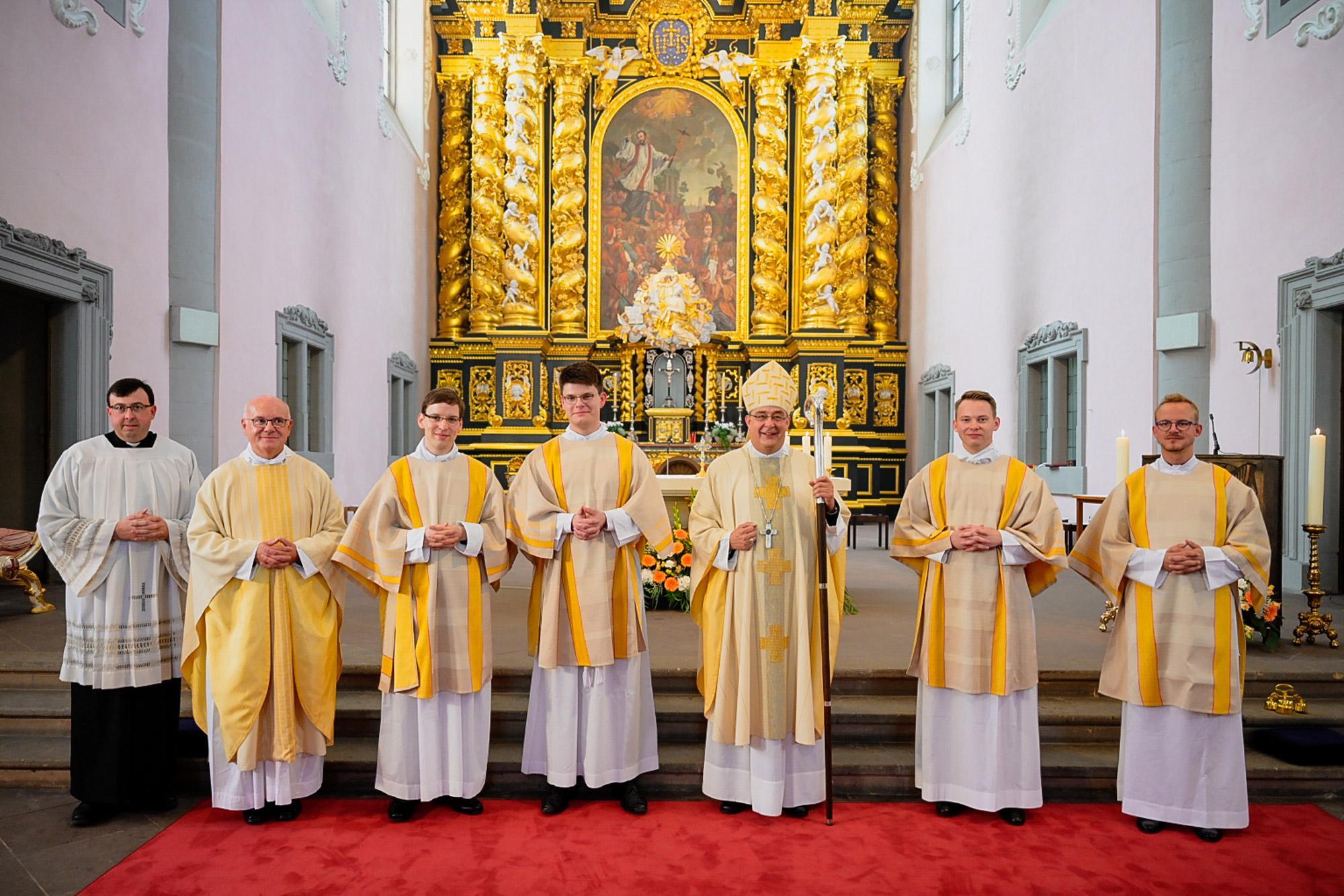 Bei der „diakonalen Mission“ gehe es zudem darum, bei Menschen eine Suche nach einem „Mehr im Leben“ auszulösen, erinnerte Weihbischof Dominicus. Die Antwort auf dieses „Mehr“, auf diese Sehnsucht sei für Christen Gott. Um für Gott ein „effektiver Missionar und Diakon“ zu sein, komme es darauf an, die eigene Beziehung zu Gott zu pflegen und authentisch zu leben, mahnte Weihbischof Dr. Dominicus Meier OSB die Weihekandidaten. „Ich wünsche Ihnen von Herzen, dass Sie in den kommenden Jahren dieser ‚diakonalen‘ Mission Gestalt geben und eine Gestalt dieser Mission sein können. Sie können und dürfen Ihre Mission leben, denn Sie dürfen darauf vertrauen, dass Gott Sie begleitet und Ihnen seinen missionarischen Geist schenkt“, sagte Weihbischof Dominicus zum Abschluss seiner Predigt.