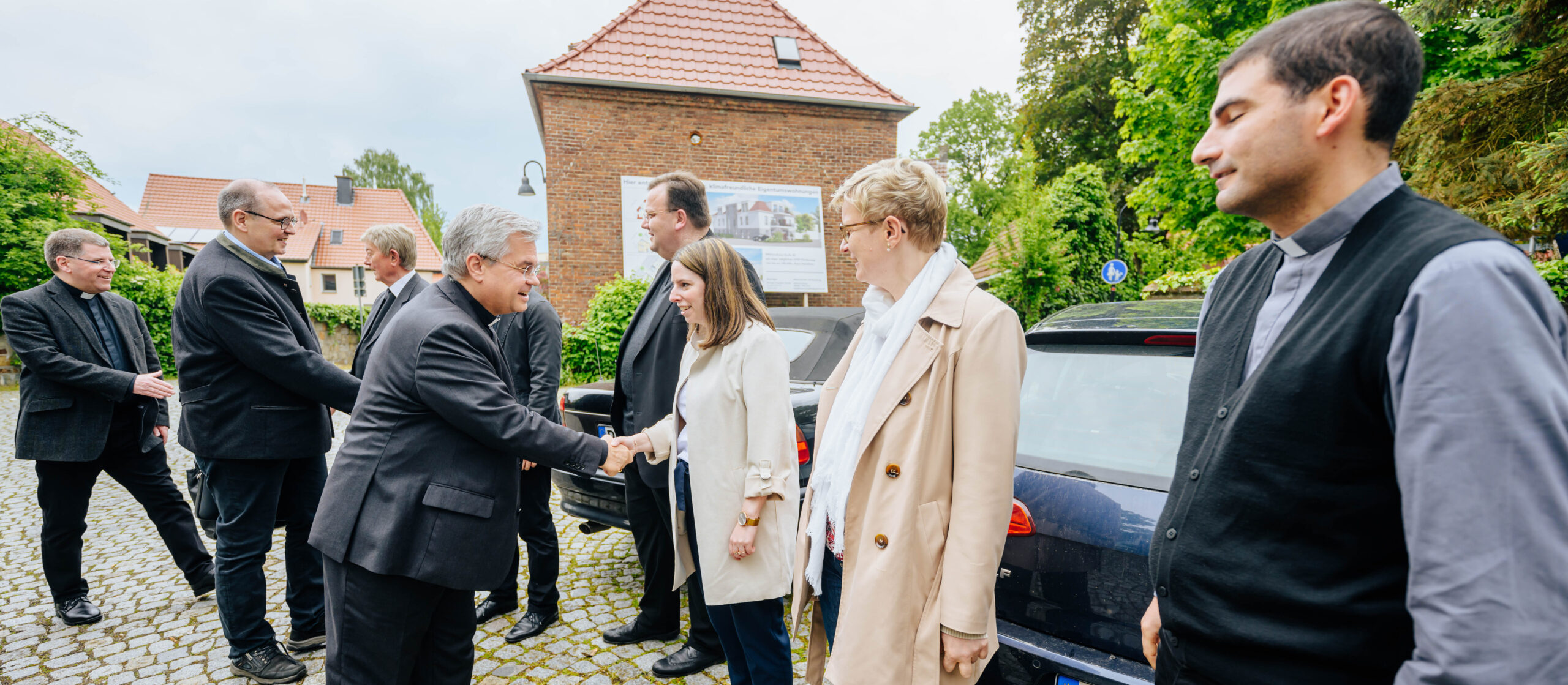 Erste Eindrücke sammelte Erzbischof Dr. Bentz bereits am frühen Morgen im Mutterhaus der Franziskanerinnen von Salzkotten. Nach einem Gottesdienst in der Mutterhauskirche lernte er die Kongregation der Franziskanerinnen und das Geistliche Zentrum Franziskus kennen, einen offenen Ort für alle, die nach dem Glauben fragen, Orientierung suchen oder Menschen begegnen wollen.