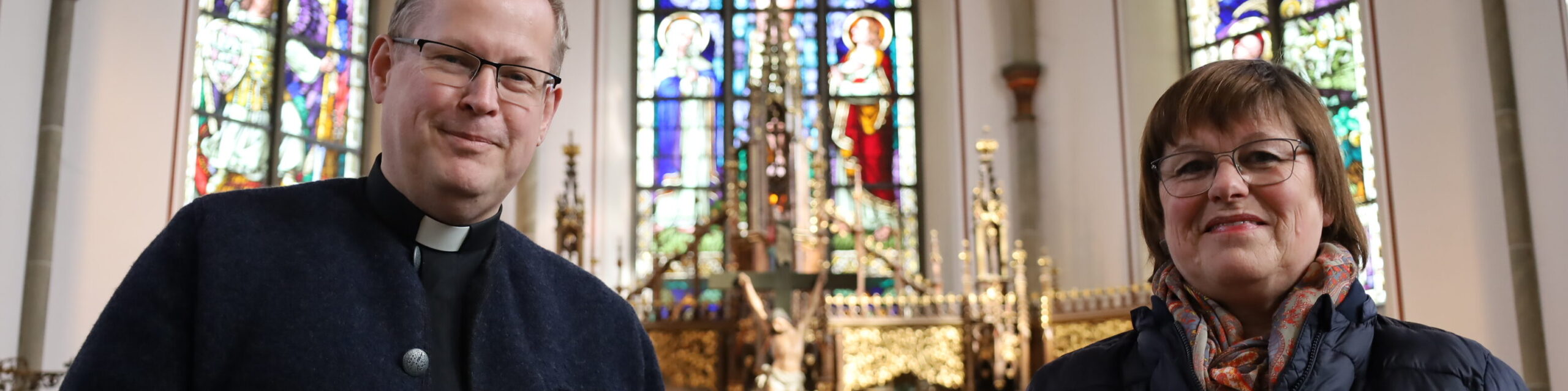 Karin Morfeld vom Gesamtpfarrgemeinderat im Pastoralverbund Delbrück-Hövelhof sowie Vikar Mike Lambrecht und Stefan Slaby vom örtlichen Gemeindeausschuss haben sich intensiv damit beschäftig, welche Anreize den Besuch im Gotteshaus ausmachen. Die Fenster im Chorraum sind ausdrucksstarke Werke des Paderborner Traditionsunternehmens Glasmalerei Peters. Der Hochaltar und die beiden Seitenaltäre stammen aus der Meisterwerkstatt der „Wiedenbrücker Schule“. Dort wurden sie im Künstlerhaus Becker-Brockhinke gefertigt.
