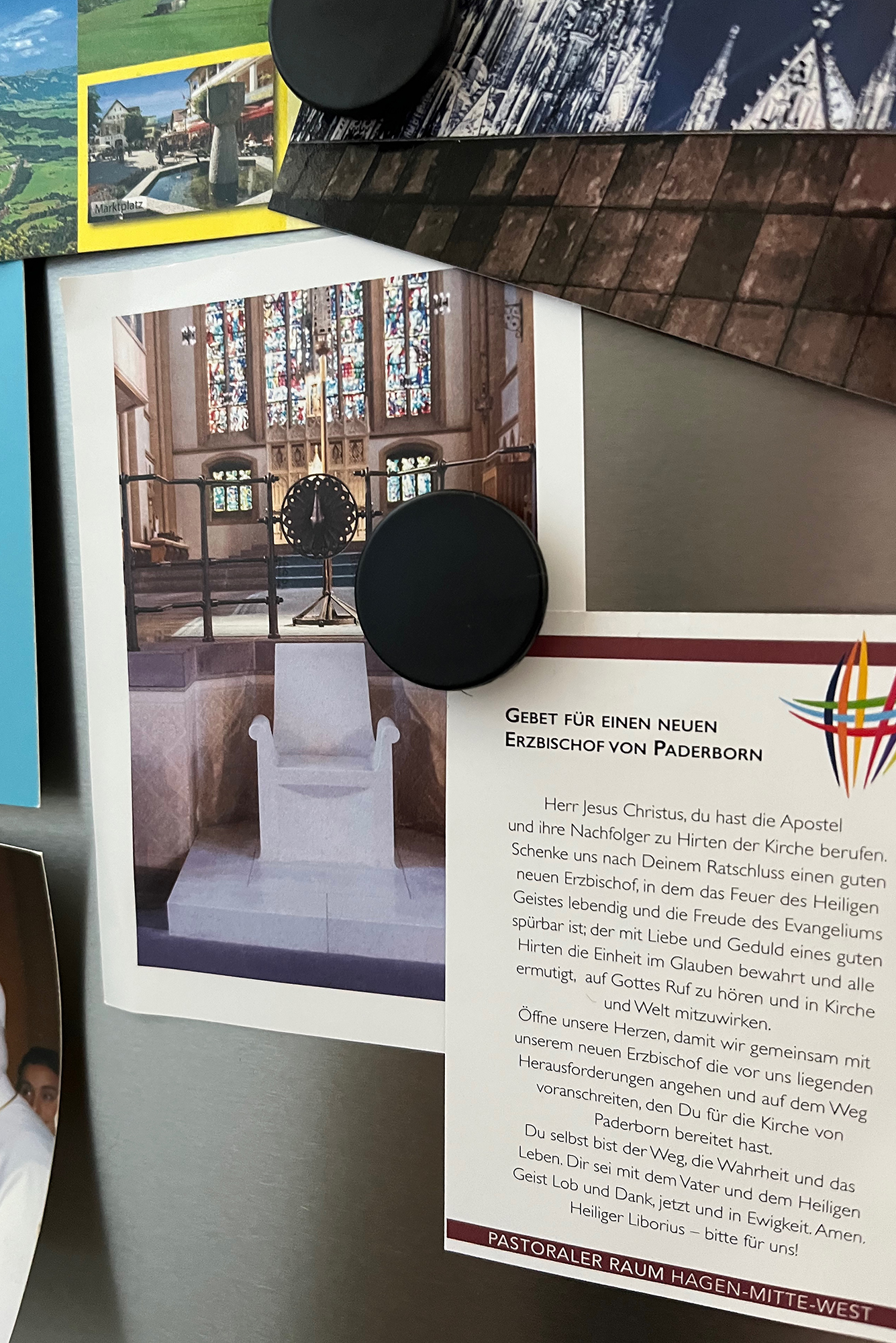 „Es war eine ganz spontane Idee. Mir war wichtig, dass die Zeit der Sedisvakanz nicht nur ein passives Abwarten ist“, erklärt der junge Priester, der im Pastoralen Raum Hagen-Mitte-West als Seelsorger tätig ist. Darum möchte er das Anliegen, für einen neuen Erzbischof zu beten, wach halten. „Das gelingt am besten, wenn etwas daran erinnert, das man in die Hand nehmen und mit dem man etwas tun kann, eben zu beten“, sagt Vikar Hottmann. Er selber habe jetzt zum Beispiel sogar einen Gebetszettel am Kühlschrank hängen. „Auch dort erinnert er mich jeden Tag an das Gebet für einen guten neuen Erzbischof.“