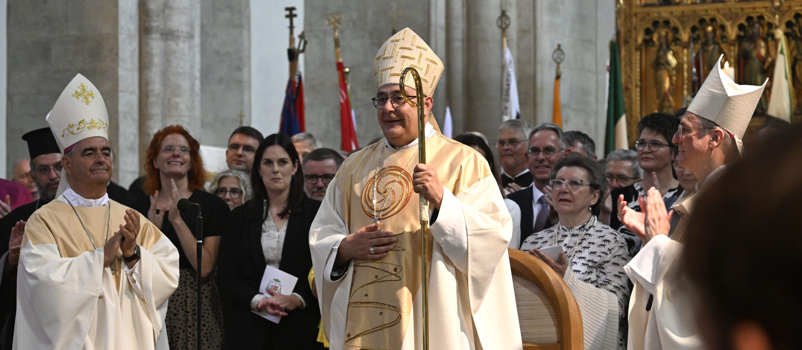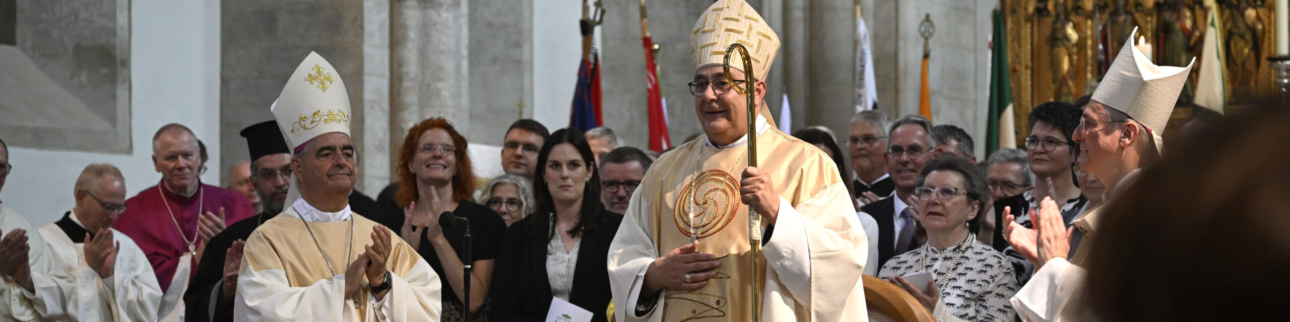 Bischof Bätzing hob hervor, dass Bischof Meier die Leitung des Bistums in einer Zeit der Herausforderung für die Kirche übernehme, in der zugleich Chancen für einen neuen Aufbruch spürbar seien: „Ein neuer Aufbruch ist spürbar, der mit Veränderungen einhergeht und mit dem nüchternen Blick, dass wir weniger werden. Weniger werden heißt aber nicht, dass wir weniger wirksam sein müssen. Denn das liegt an uns, ob wir sichtbar sind, ob wir uns einsetzen, ob wir in die Gesellschaft hineinwirken.“ Ebenso rief er den neuen Bischof dazu auf, seine langjährige Erfahrung und kirchenrechtliche Expertise auch weiterhin aktiv in die Arbeit der Deutschen Bischofskonferenz einzubringen. Dabei unterstrich er die Bedeutung des synodalen Weges im Handeln der Kirche: „Lass uns den Weg der Kirche, der ein synodaler Weg ist, gemeinsam weitergehen, als Kirche von Osnabrück und als Kirche in Deutschland.“