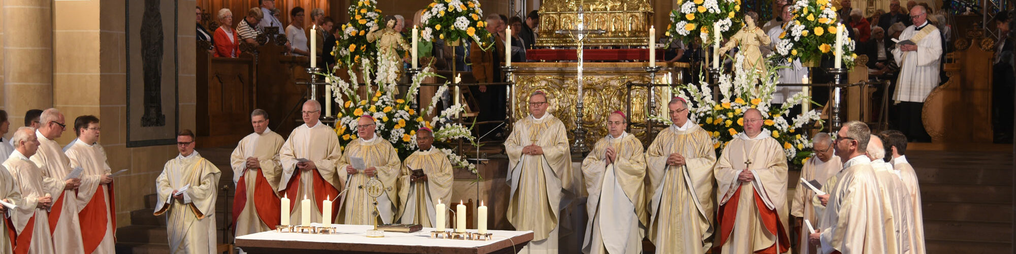 Vor 30 Jahren, am 1. September 1991, empfing Dr. Franz-Josef Bode im Hohen Dom zu Paderborn die Bischofsweihe. Er war zunächst Weihbischof in Paderborn und übernahm 1995 die Leitung des Paderborner Nachbarbistums Osnabrück, so dass er im vergangen Jahr sein 25-jähriges Jubiläum als Bischof von Osnabrück begehen konnte. Erzbischof Hans-Josef Becker überbringt dem aus Etteln im Erzbistum Paderborn stammenden siebzigjährigen Geistlichen persönlich seine Glück- und Segenswünsche zum Bischofsweihejubiläum: Der Paderborner Erzbischof nimmt am 5. September am Festgottesdienst im Osnabrücker Dom teil. Als Vertreter des Paderborner Metropolitankapitels gratuliert auch Dompropst Monsignore Joachim Göbel Bischof Dr. Franz-Josef Bode, der Ehrendomherr am Hohen Dom zu Paderborn ist, zum Weihejubiläum.
