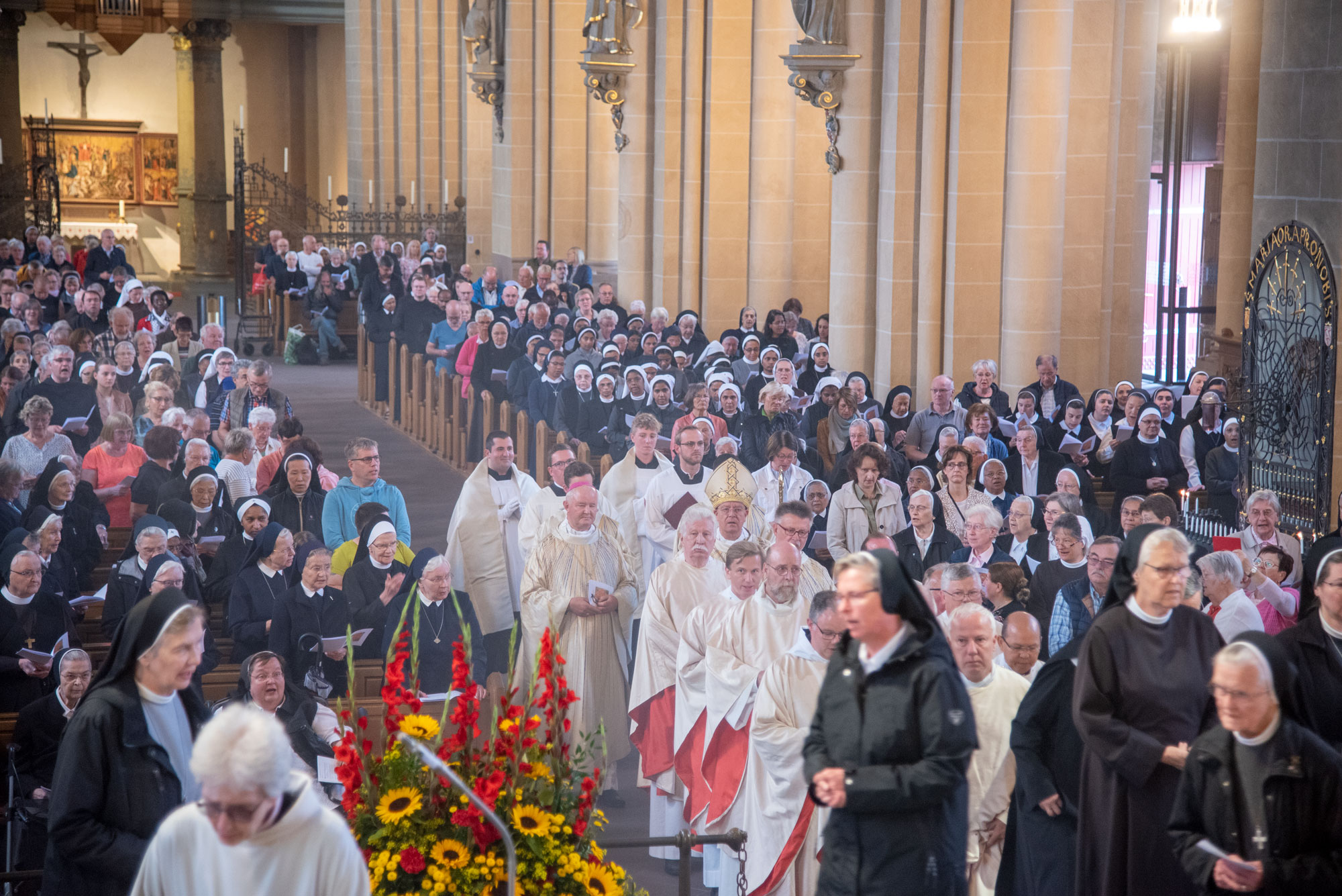 Menschen würden in Klöstern und Konventen „Oasen des Friedens“ suchen, führte Weihbischof König aus. Es sei deshalb der Dienst von Ordens-Christen, Schwestern und Brüdern, die Sehnsucht nach Frieden hochzuhalten. Das Leitwort des Libori-Festes „Pax vobis!“ mache Mut und sporne an, Brücken des Friedens zu bauen, so wie der heilige Liborius in seinem Leben und seiner Wirkungsgeschichte. „Liborius führt zusammen. Libori gibt Raum zum Gespräch und Austausch. Libori lädt auch ein, sich die Hände zu reichen in einer Verbundenheit, die nur der Glaube schenken kann. Lassen wir uns das ins Herz geben“, sagte Weihbischof Matthias König zum Abschluss seiner Predigt.