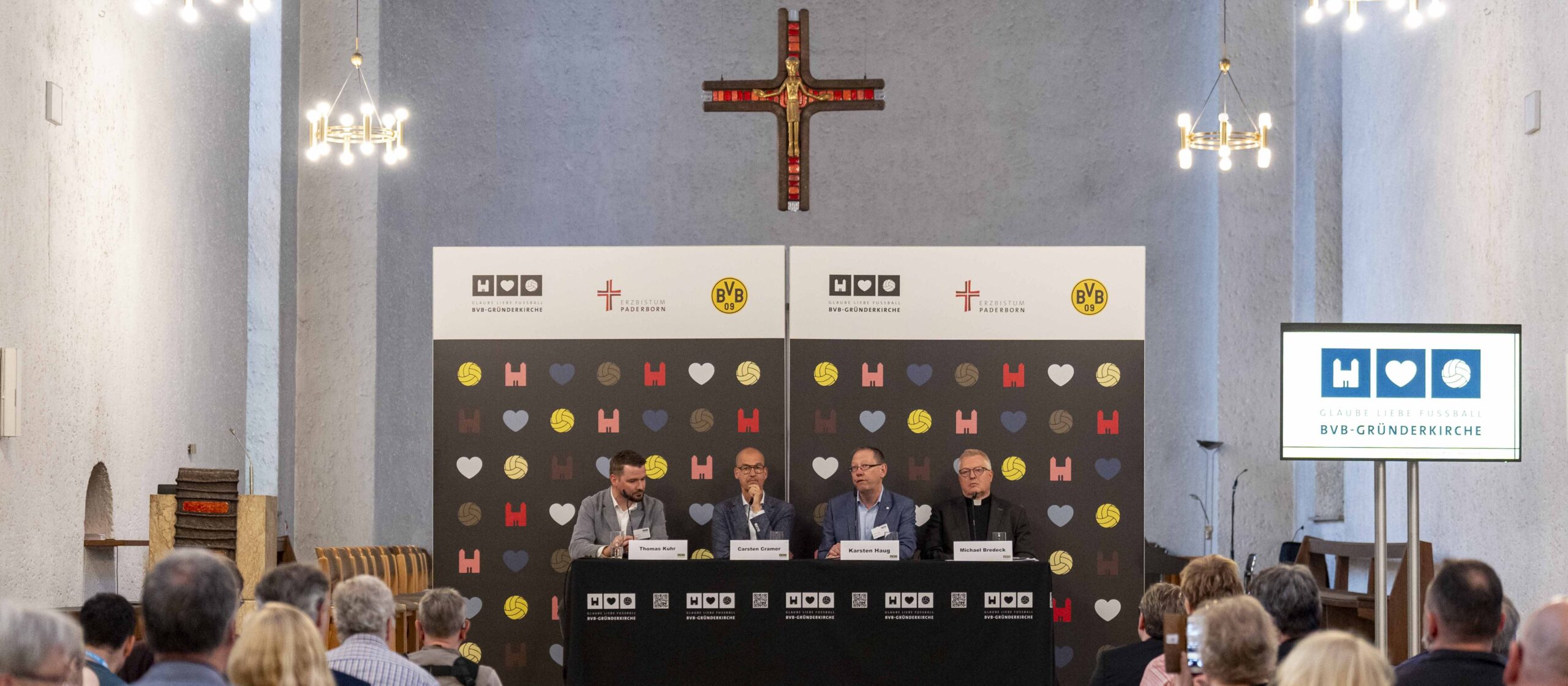 Gleichzeitig erhält der Ursprungsort des traditionsreichen Fußballvereins Borussia Dortmund, der bereits jetzt 4.000 Besucher- und Besucherinnen jährlich anzieht, eine völlig neue Qualität. Der BVB bekennt sich mit diesem Projekt zu seinem sozialen Auftrag, den der Gründer Franz Jacobi einst formuliert hatte. Dessen Leitsatz “Die Qualität eines Fußballvereins zeigt sich darin, wie er seinen sozialen Aufgaben gerecht wird” spielt im Verein auch heute noch eine wichtige Rolle. Die Partnerschaft mit der Kirche unterstreicht das Engagement des Vereins für Integration, gesellschaftliche Vielfalt und den Zusammenhalt innerhalb der Community. Die Gründerkirche wird zum Ort, an dem die Werte des BVB – Teamgeist, Gemeinschaft und die Markenbotschaft “Echte Liebe” – vermittelt werden.