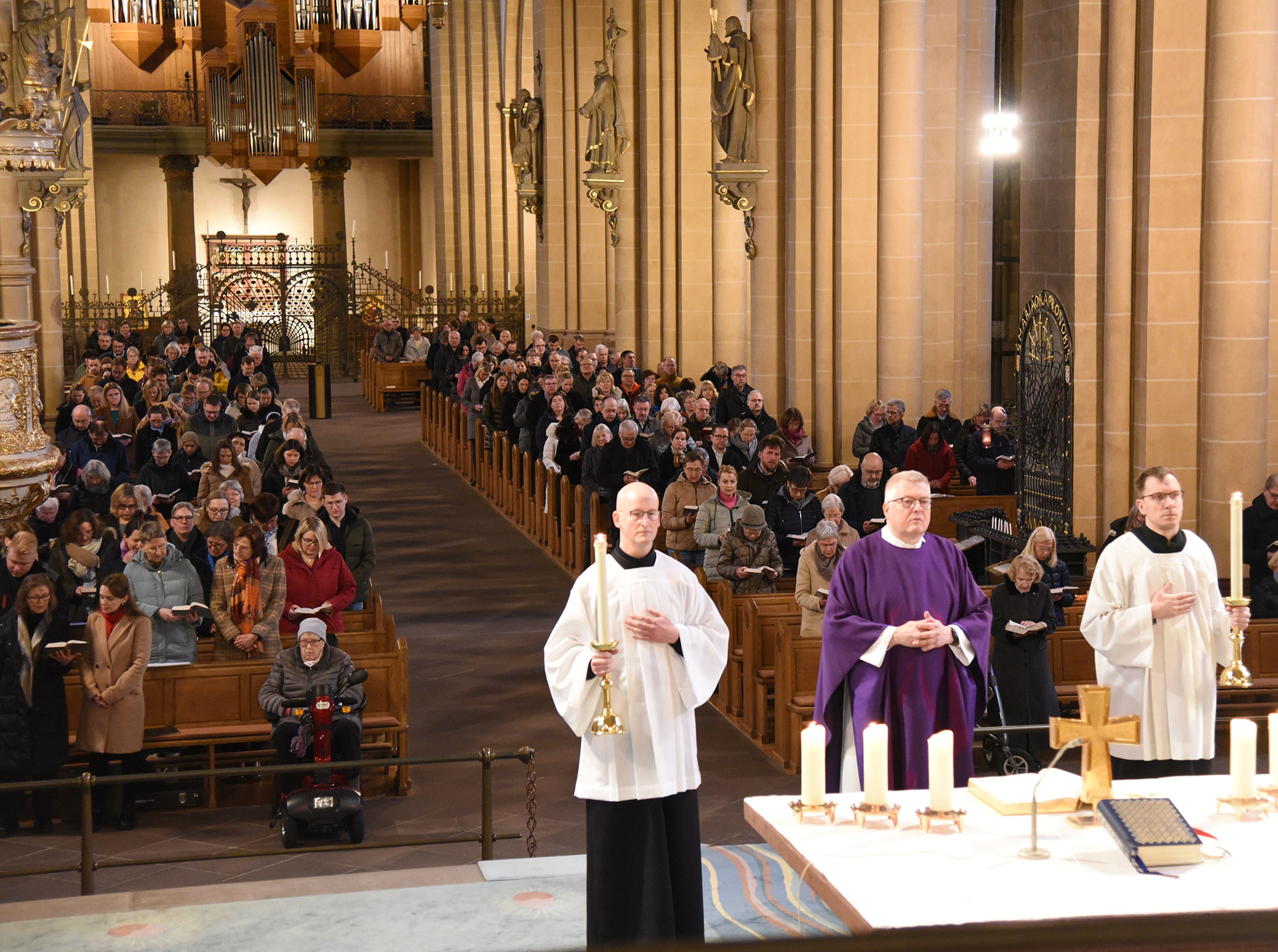 In der Fastenzeit könne der Mensch „sich selbst zur Frage werden“, betonte Msgr. Dr. Bredeck in Anlehnung an Papst Franziskus. Es gehe darum, „dass wir uns ungeschützt den Existenzfragen aussetzen: Wer bin ich? Was stärkt mein Leben? Was schwächt mein Denken? Wer ist Gott für mich?“ Papst Franziskus formuliere all das in der Grundfrage: „Hast du ein Herz, das Großes will?“. Die entscheidenden menschlichen Dinge wie Wärme und Mitgefühl würden sich meist leise äußern, so der Diözesanadministrator: „In der vierzigtägigen Bußzeit lässt sich diese Schönheit des Leisen und Stillen gut einüben. Vielleicht auch, indem wir etwas fragender werden und weniger selbstsicher sind.“