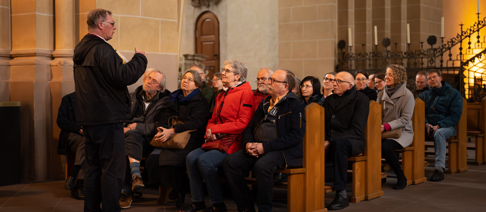 Nach einer Exkursion in das Arbeitsfeld der Archivpflegenden der EKvW, galt es, den Gästen aus Bielefeld Einblicke in das Paderborner Erzbistumsarchiv zu gewähren. Gemeinsam mit Archivarin Julia Hennig führte Michael Streit die Besuchergruppe durch das Erzbistumsarchiv hin zu spannenden Archivalien wie etwa dem ältesten deutschen Bischofssiegel, dem Siegel des Bischofs Liuthard (Bischof von 862-887). Auch die älteste Urkunde des Archivs, eine Kaiserurkunde von Otto I. aus dem Jahr 964, stieß auf großes Interesse. Besonders fasziniert waren die evangelischen Besucher jedoch von der Unterschrift von Papst Franziskus auf der jüngsten Urkunde im Erzbistumsarchiv: der Ernennungsurkunde des neuen Paderborner Erzbischofs Dr. Udo Markus Bentz. „Wann hat man schon mal Gelegenheit, die Unterschrift des Papstes live vor sich zu sehen? Das ist etwas ganz Besonderes“, zeigte sich ein Teilnehmer der Besuchergruppe begeistert.