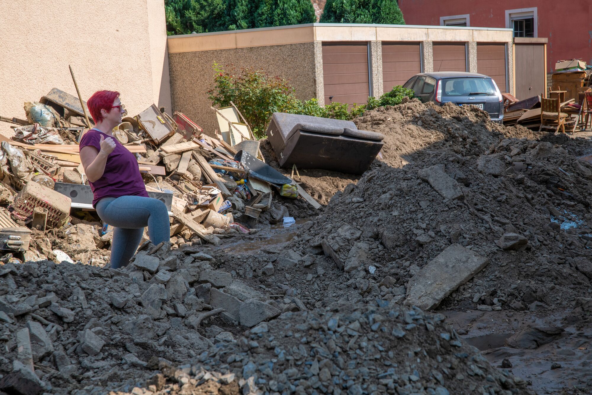 Die Haardstraße in Hagen-Hohenlimburg ist seit fast einer Woche das Einsatzgebiet von Magdalena Walthes. Sie ist in Hohenlimburg aufgewachsen, ein Kind der Stadt. Da ihr Haus vom Hochwasser verschont blieb, ist sie ohne zu zögern aufgebrochen, als sie den WhatsApp-Status einer alten Mitschülerin sah: „Die ganze Straße braucht Hilfe!“
