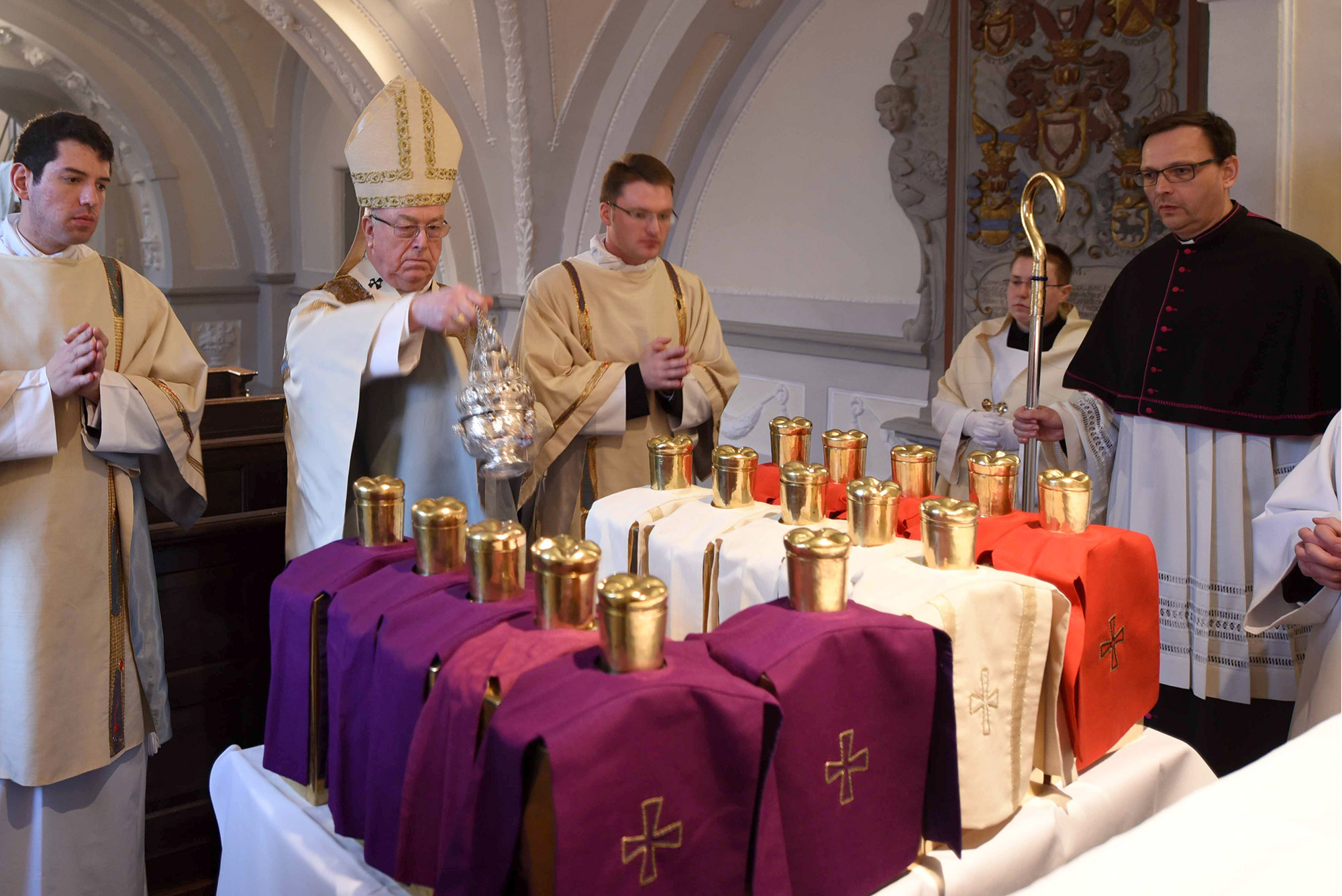 Der Glaube an Jesus Christus zeige sich in Symbolen, erklärte Erzbischof Becker in seiner Predigt: „Zu diesen Symbolen zählen die heiligen Öle, die von hier aus als Christuszeichen nach Norden und Süden, nach Osten und Westen in das ganze Erzbistum gebracht werden. Jedes der drei Öle bindet uns Menschen näher an Jesus Christus, dessen Leidensweg wir in den kommenden Tagen begleiten.“