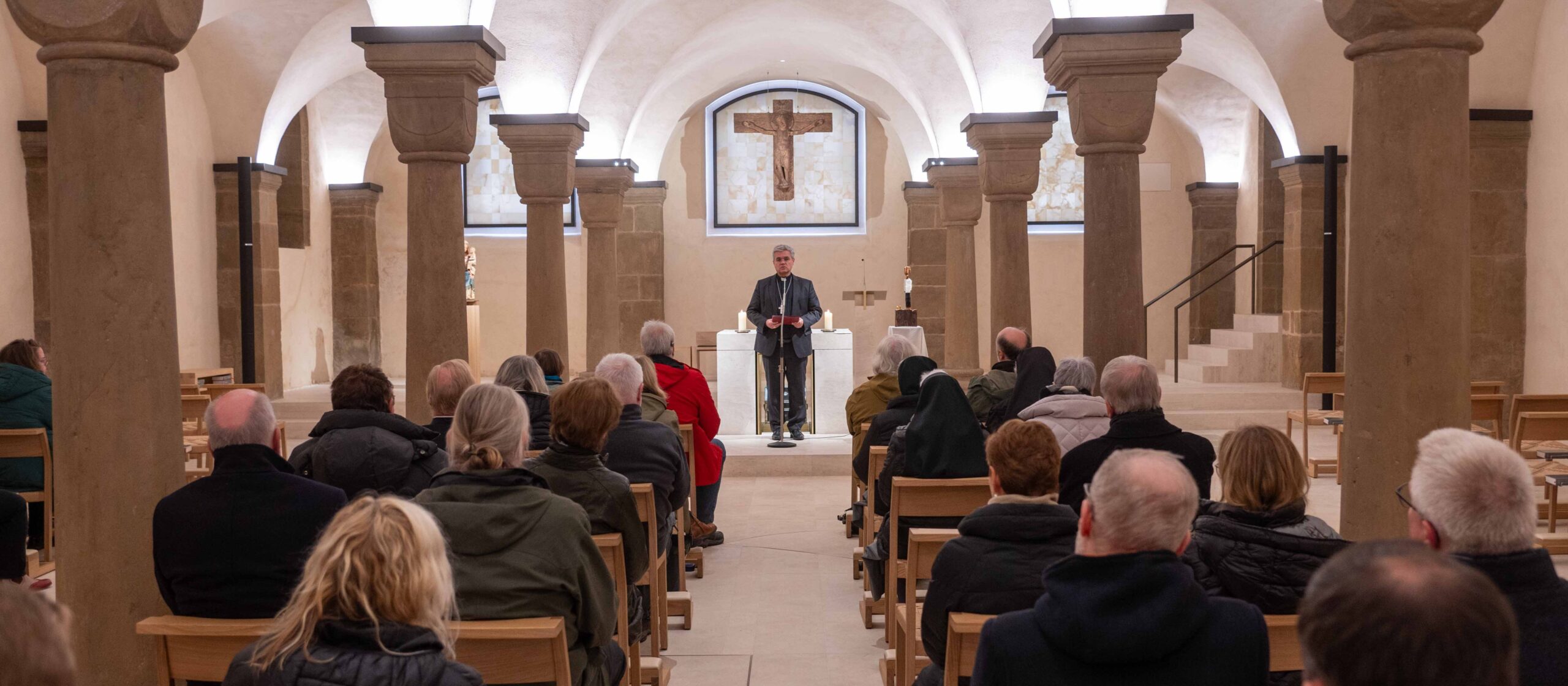 Burkhardt Stutenz rief in seinem Impuls als Mitglied der Betroffenenvertretung dazu auf, den Kindern von heute zu helfen, „weil wir als die Kinder von Gestern wissen, wie grausam einen Menschen dieses Leid das ganze Leben begleitet. Missbrauch ist ein gesellschaftliches Problem, wir dürfen da nicht wegschauen, wir müssen den Finger in die Wunde legen.“ Ausgehend von der Bitte im Vater-unser-Gebet „erlöse uns von dem Bösen“ betete Burkhardt Stutenz für die Mitarbeitenden in der Aufarbeitungskommission um „die Kraft, die unendlich schrecklichen Akten durchzuarbeiten“, für die Prävention um „kreative Ideen, das Böse zu verhindern“, für die Intervention bei ihrer täglichen Bearbeitung des Leids, um Geduld und Empathie für die unabhängigen Ansprechpersonen, „die dem Unaussprechlichen zuhören“. Burkhardt Stutenz betete um Mut für das Domkapitel, „dass sie Erinnerung schaffen, damit niemals vergessen wird, was passiert ist“. Er wünschte beiden Generalvikaren Ausdauer, dem Forscherteam der Universität Einsicht, „unserem Erzbischof die Motivation, bei diesen dunklen und schweren Themen zu führen und zu leiten“. Und schließlich: „Vater unser, vergiss uns nicht, Deine Kinder die wir Betroffene sind, hilf uns, ein Teil dieser Gemeinschaft zu sein und zu werden, damit wir unser Leid gemeinsam tragen können und damit jeder einzelne es auch besser ertragen kann.“