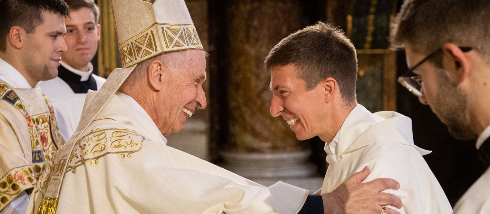 Gemeinsam mit Dominik Riedl wurden zwei Studierende des Collegium Germanicum et Hungaricum zu Diakonen geweiht. Neupriester Dominik Riedl feierte am Sonntag, 2, Oktober 2022, in der Kirche Sant Maria in Trastevere seine Primizmesse. Nach der Weihe und auch nach seinem ersten Gottesdienst als Neupriester konnte Riedl zahlreiche Glück- und Segenswünsche entgegen nehmen, so auch von Gästen aus seiner Heimatgemeinde in Bielefeld sowie aus Olpe, wo er als Diakon tätig war.