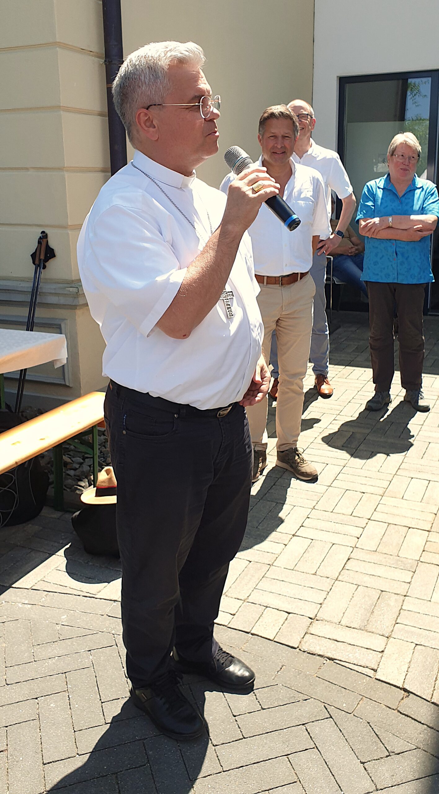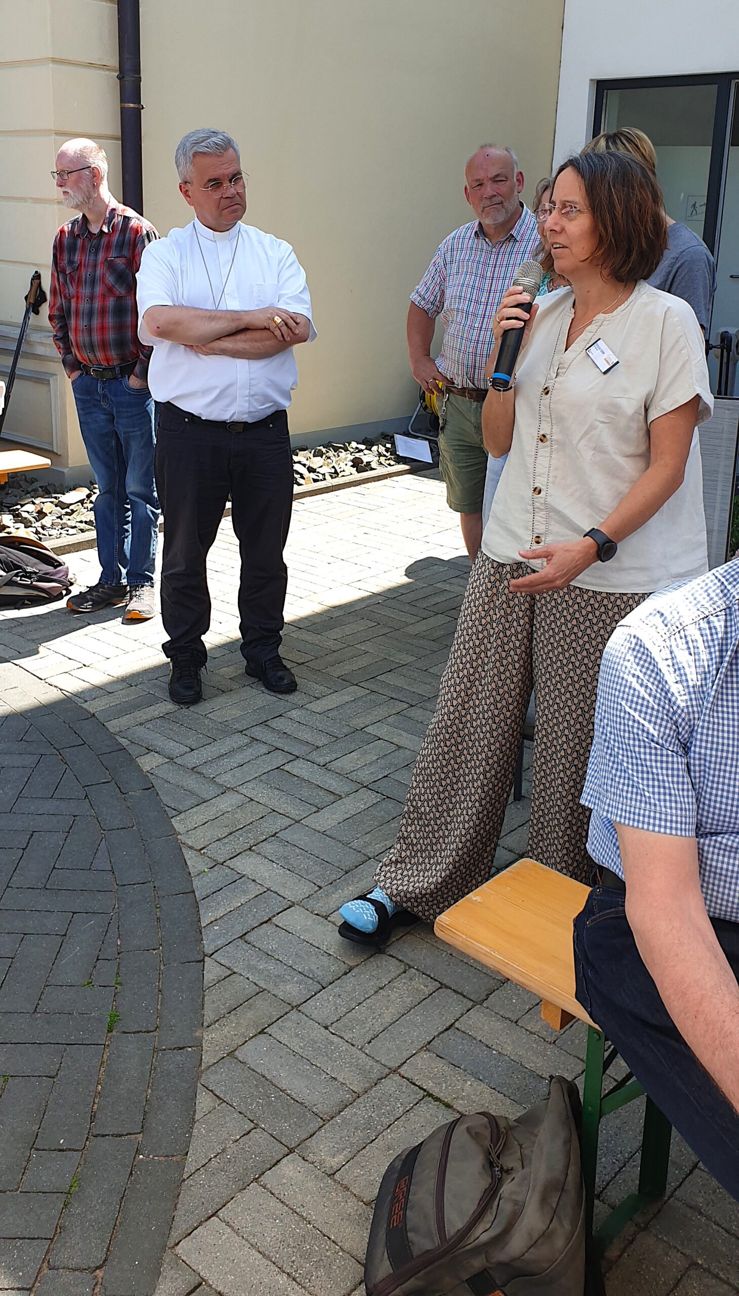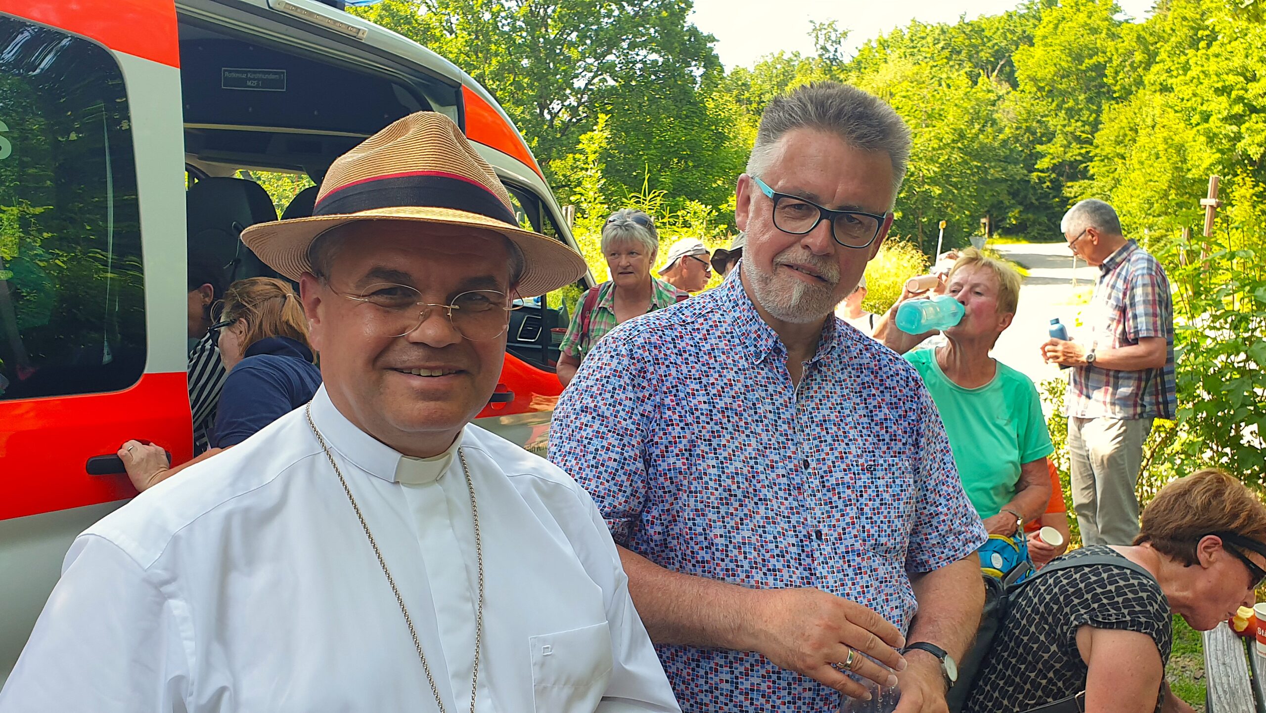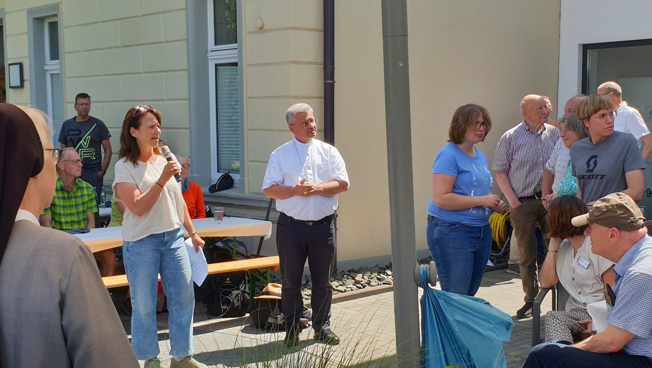 Erzbischof Udo Markus Bentz hatte sich Zeit genommen, um die Pilgergruppe ab Welschen Ennest, wo das Caritas-Zentrum die Wallfahrer zur Mittagspause empfing, zu begleiten. Pater Modenbach begrüßte den Erzbischof, bevor die Mitarbeiterinnen und Mitarbeiter das Caritas-Zentrum mit den verschiedenen Einrichtungen vorstellten.
