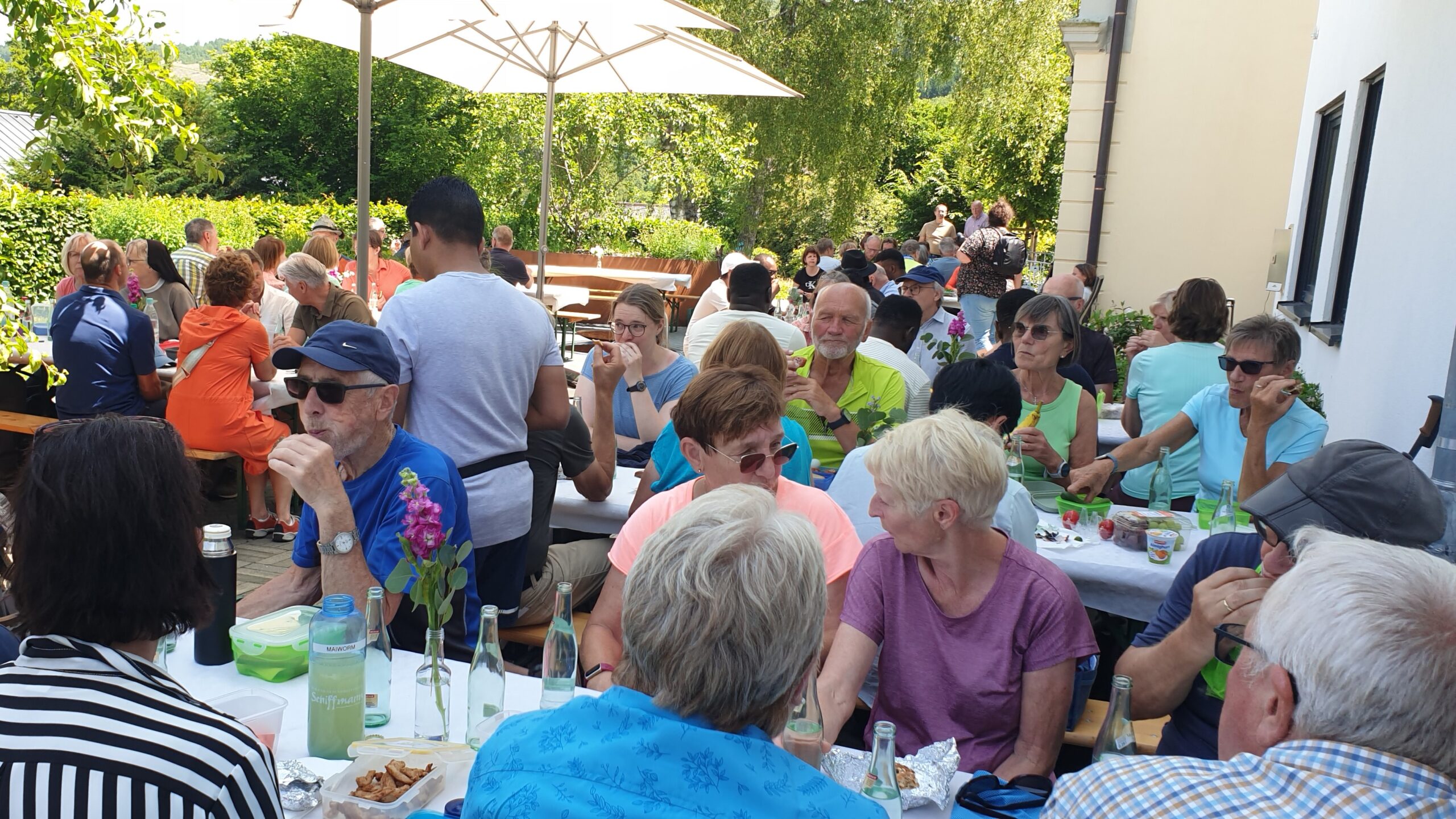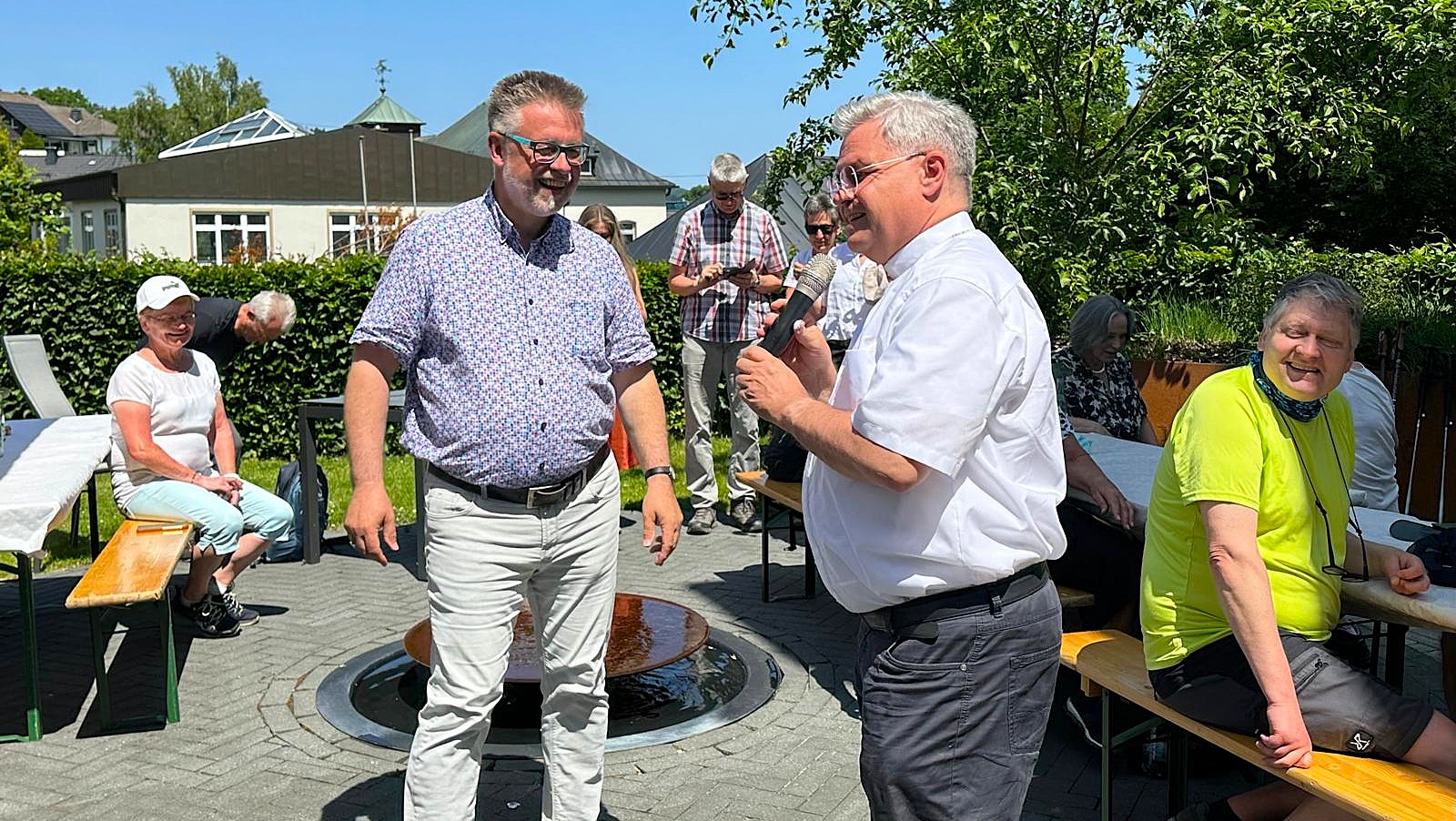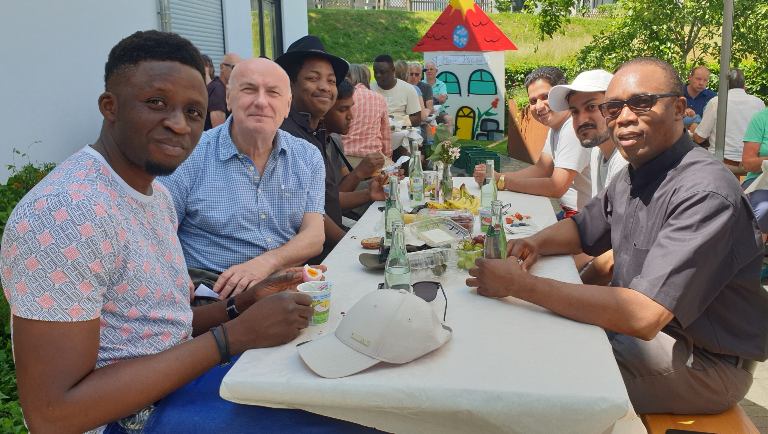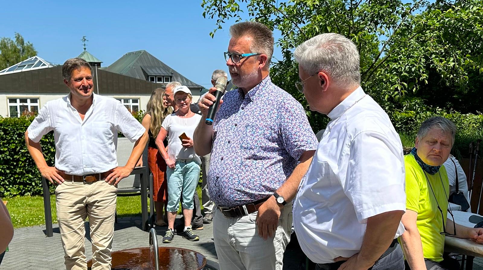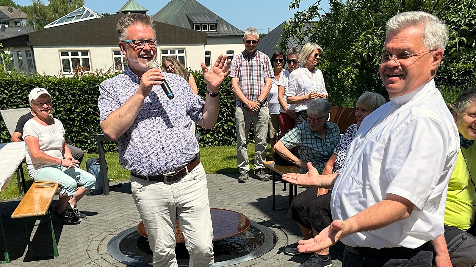Erzbischof Udo Markus Bentz hatte sich Zeit genommen, um die Pilgergruppe ab Welschen Ennest, wo das Caritas-Zentrum die Wallfahrer zur Mittagspause empfing, zu begleiten. Pater Modenbach begrüßte den Erzbischof, bevor die Mitarbeiterinnen und Mitarbeiter das Caritas-Zentrum mit den verschiedenen Einrichtungen vorstellten.