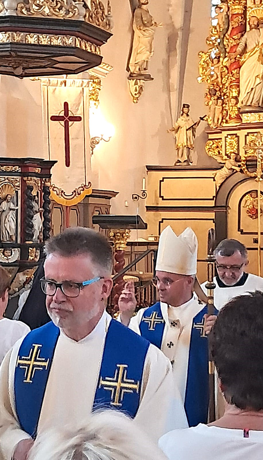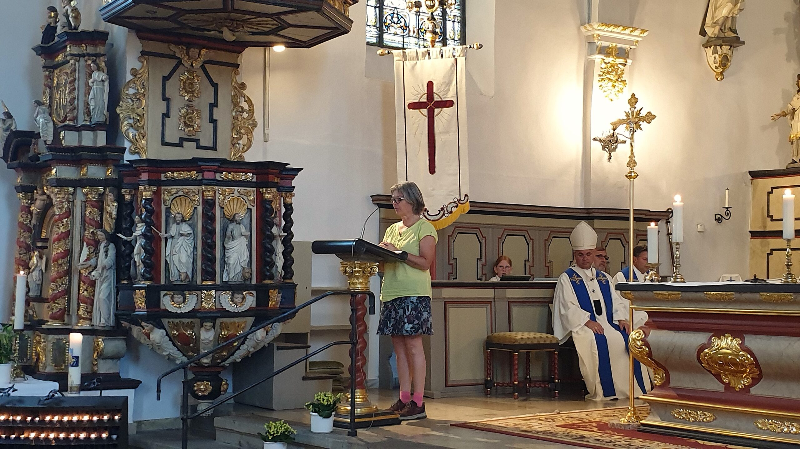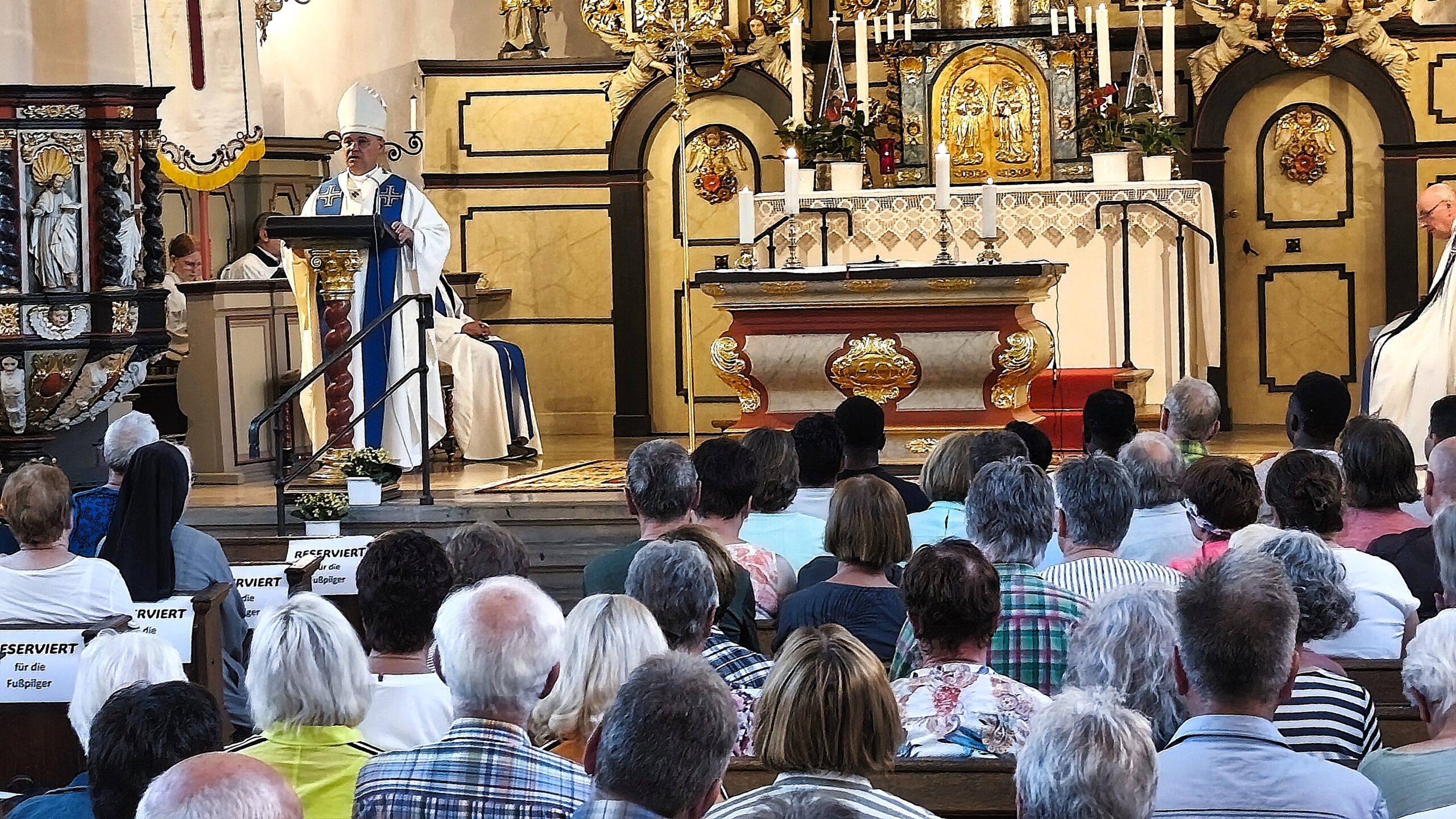Anschließend machten sich die Pilgerinnen und Pilger zusammen mit dem Erzbischof auf den zweiten, beschwerlicheren Teil des Weges hinauf zum Kohlhagen. Höhepunkt waren dann direkt nach der Ankunft die Statio am Gnadenaltar der Schmerzhaften Gottesmutter und der sich anschließende Wallfahrtsgottesdienst in einer vollbesetzen Wallfahrtskirche – ein wirkliches Fest der Gemeinschaft und des Glaubens.
