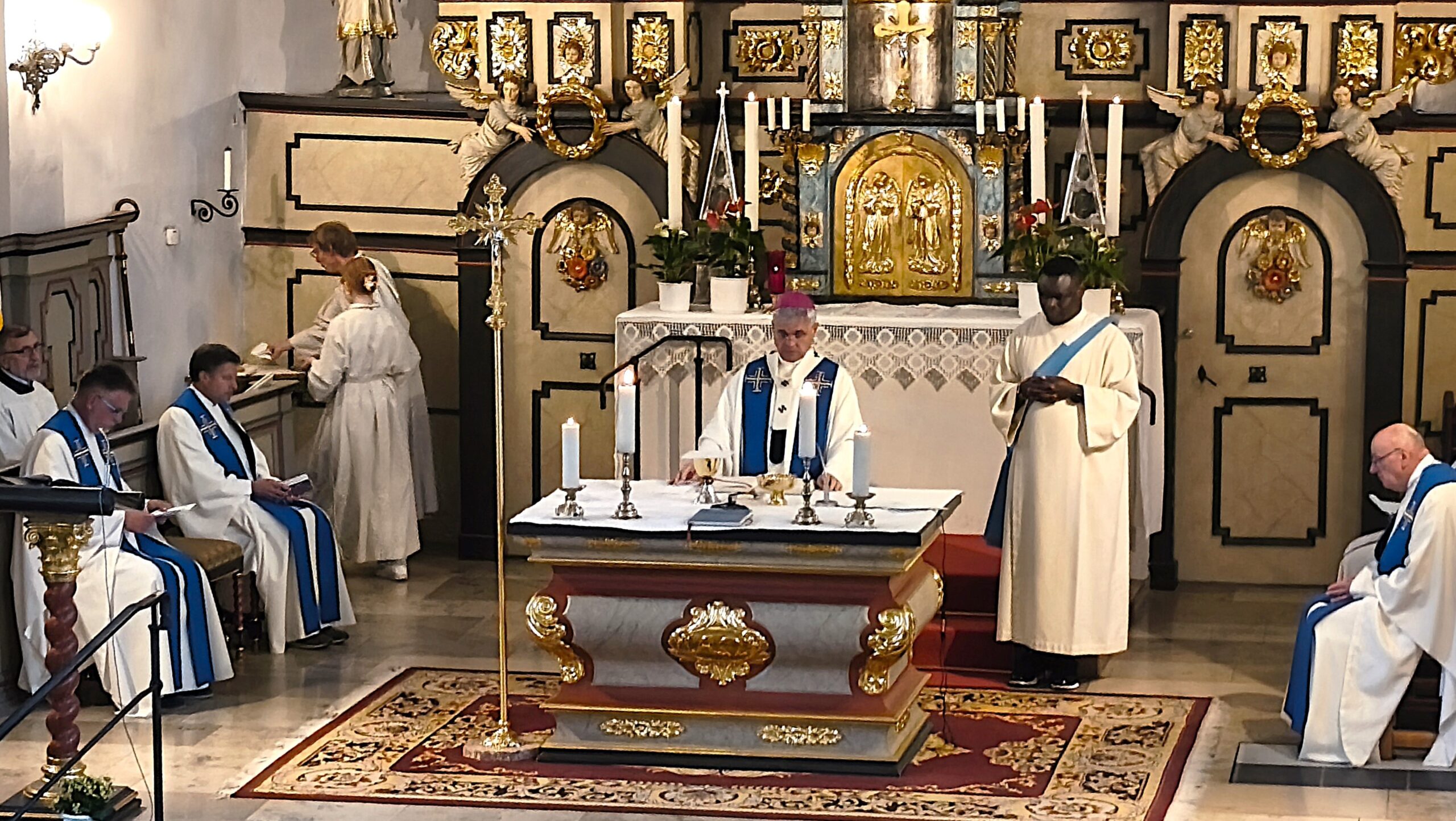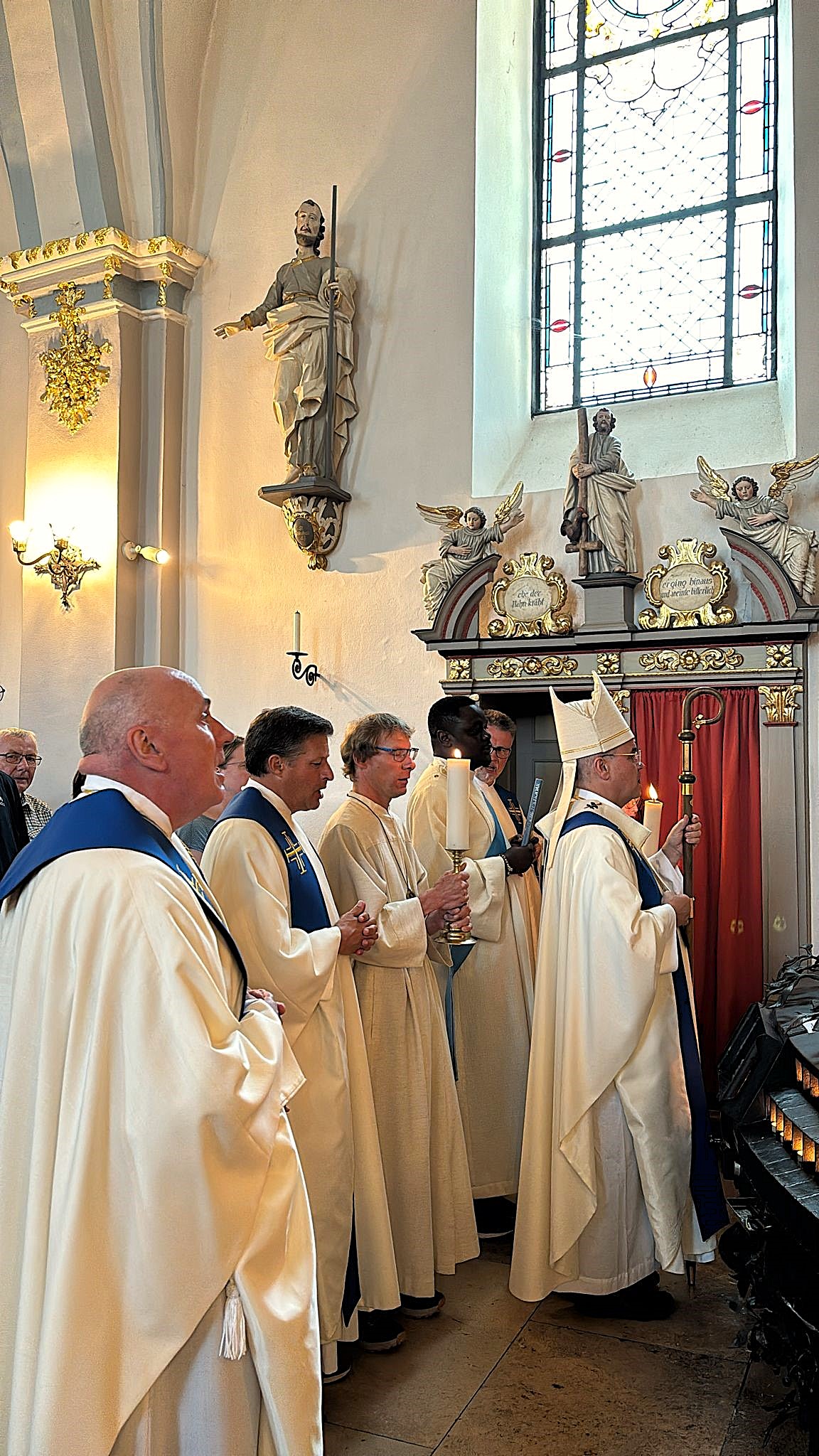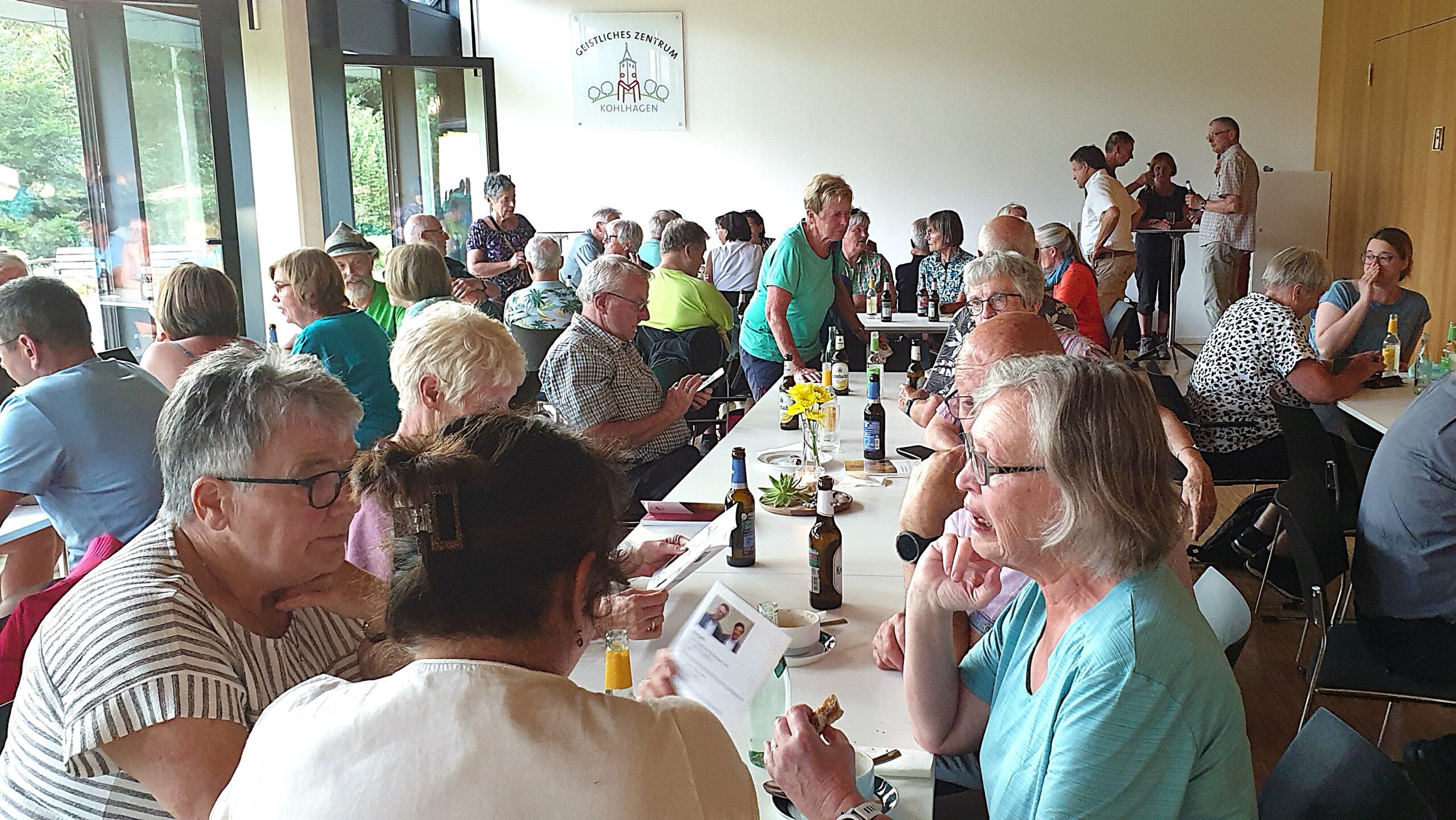Anschließend machten sich die Pilgerinnen und Pilger zusammen mit dem Erzbischof auf den zweiten, beschwerlicheren Teil des Weges hinauf zum Kohlhagen. Höhepunkt waren dann direkt nach der Ankunft die Statio am Gnadenaltar der Schmerzhaften Gottesmutter und der sich anschließende Wallfahrtsgottesdienst in einer vollbesetzen Wallfahrtskirche – ein wirkliches Fest der Gemeinschaft und des Glaubens.