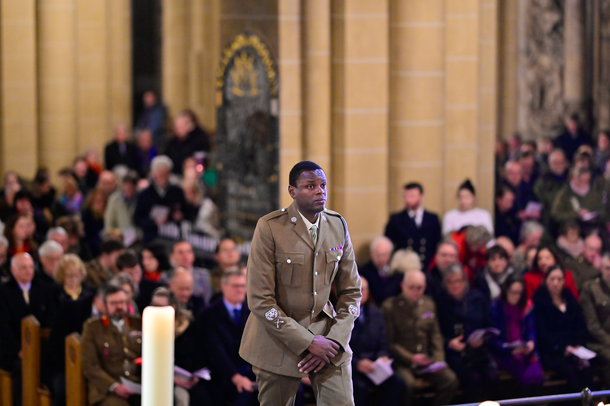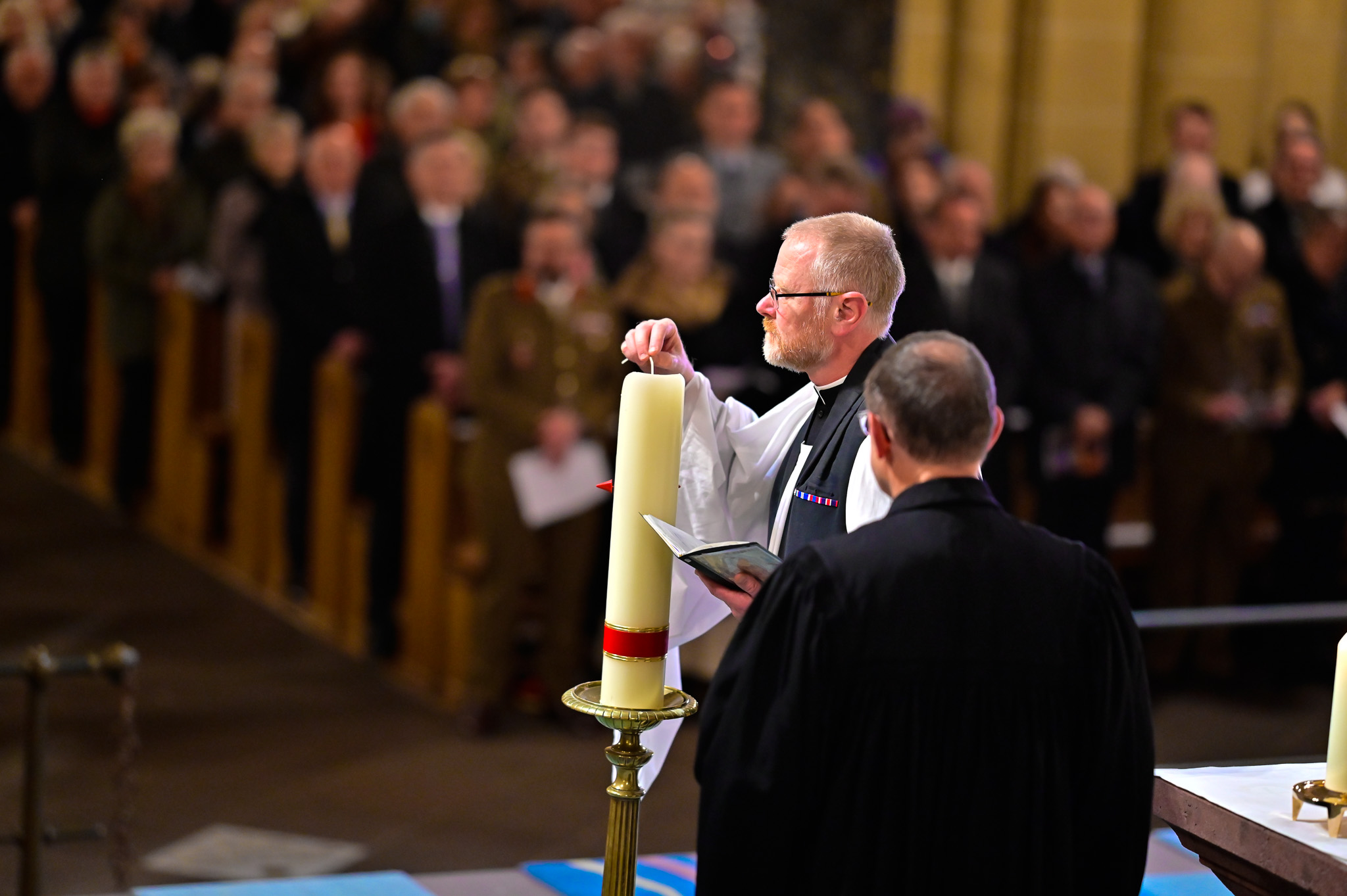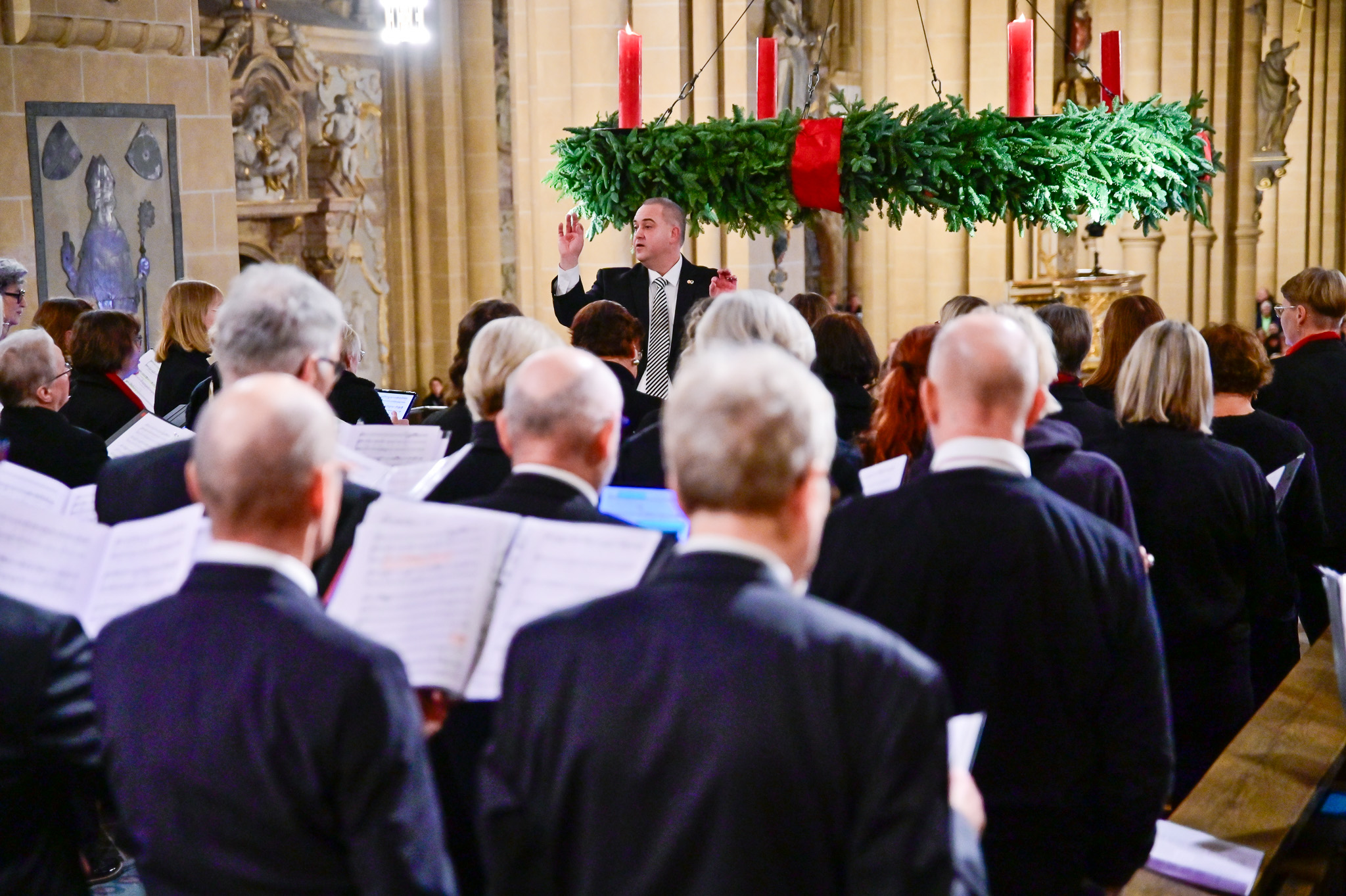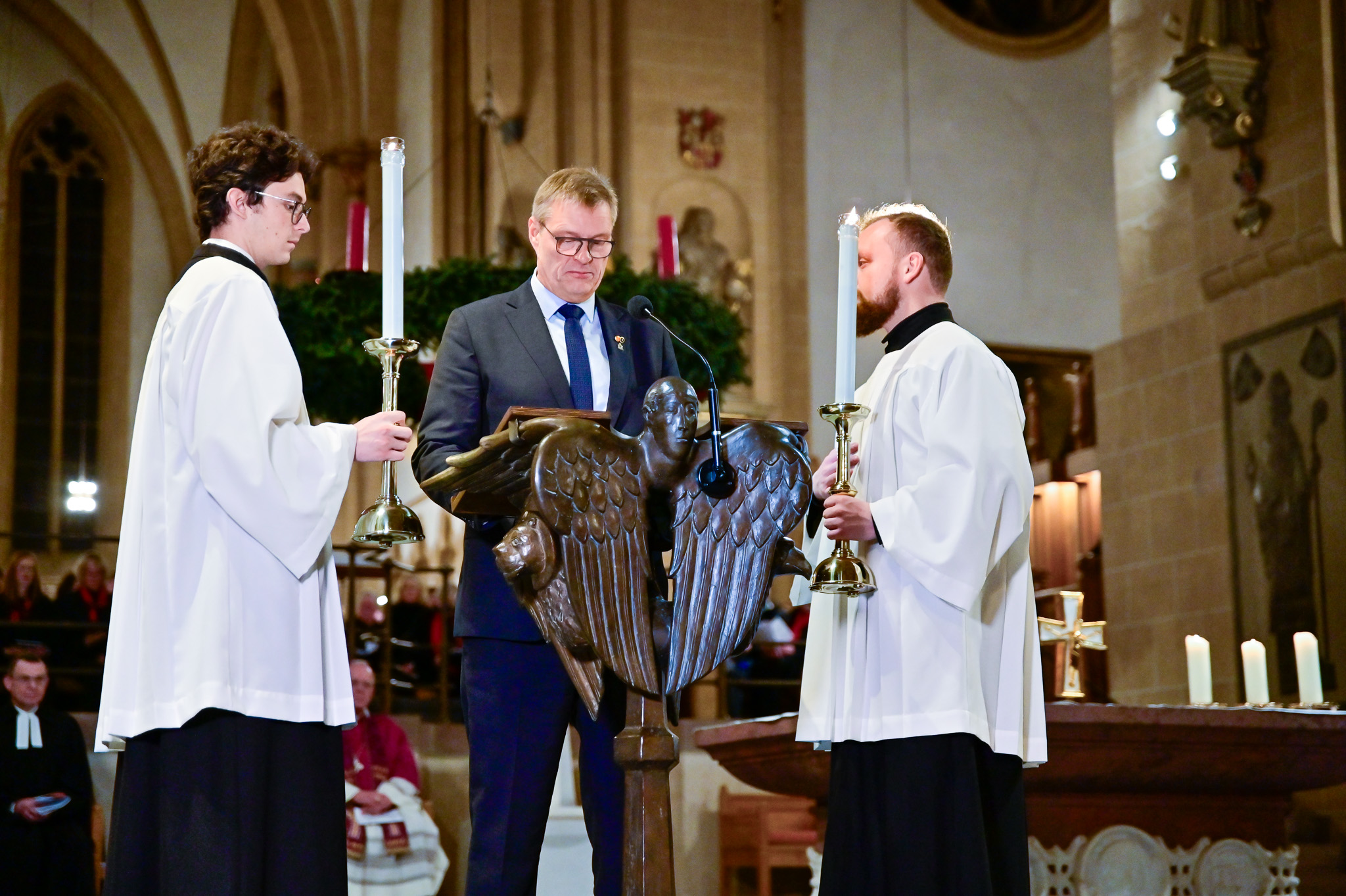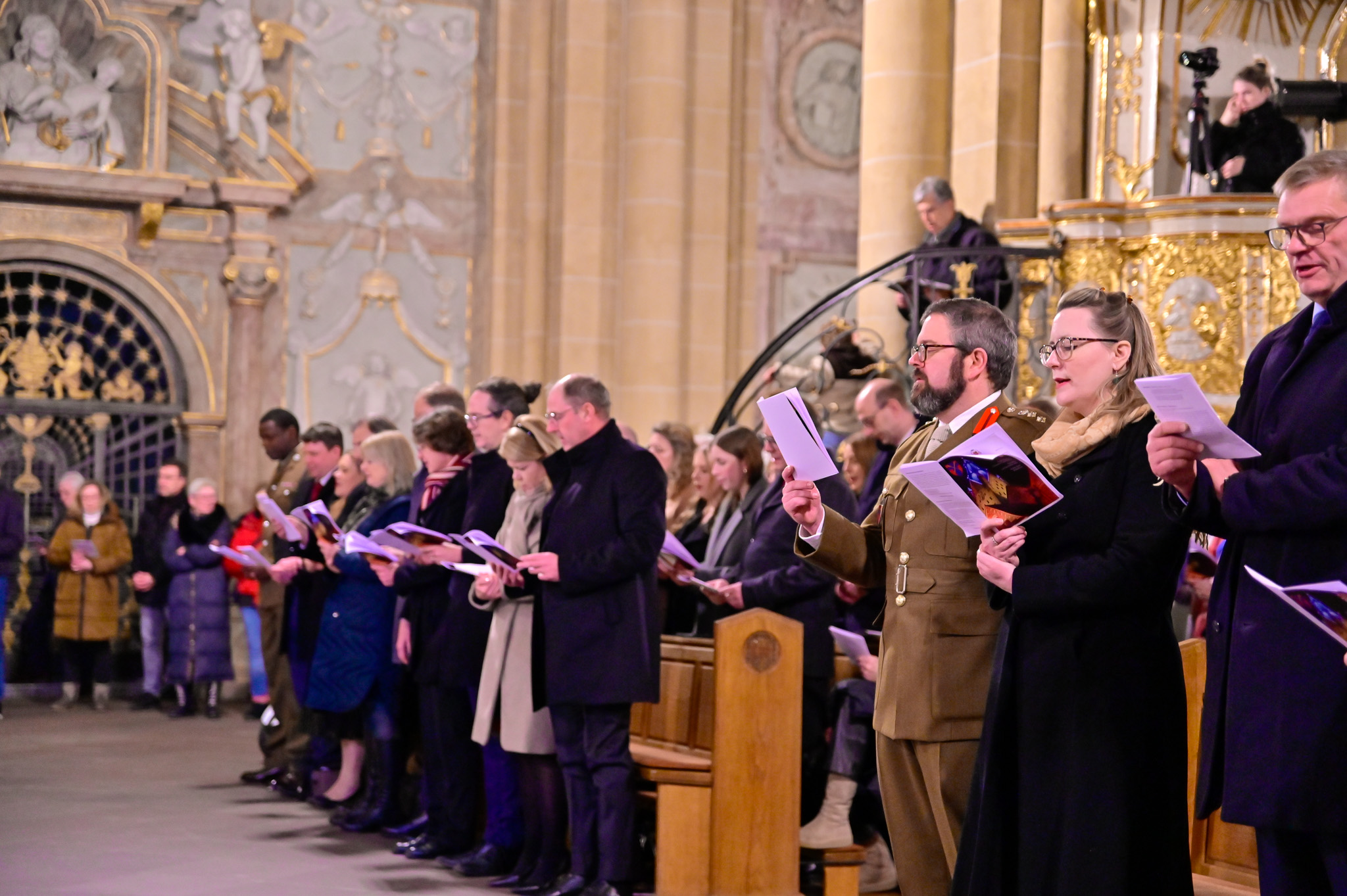 Der Deutsch-Britische Weihnachtsgottesdienst im Paderborner Dom gilt als alljährliches Fest des Glaubens, das Kulturen, Nationen und Konfessionen verbindet. Auch in diesem Jahr hat die britische Tradition der „Nine Lessons and Carols“ und die bewegende musikalische Gestaltung wieder hunderte Menschen im Paderborner Dom versammelt. Wer einen Sitzplatz ergattern wollte, musste schnell sein – lange vor Beginn des Gottesdienstes waren diese restlos belegt und auch die Seitengänge füllten sich rasch mit Gottesdienstbesuchern. Sie alle waren gekommen, um teilzuhaben an der eindrucksvollen internationalen Botschaft des Friedens und der Hoffnung, die sich in diesem Jahr vor allem an die Menschen in der Ukraine, im Sudan und im Nahen und Mittleren Osten richtete: „Trotz aller Not, aller Kriege und Krisen in der Welt: Christen haben durch alle Zeiten weitergehofft, dass Frieden möglich ist. Die Botschaft vom Friedensfürsten Jesus Christus hat ihnen dazu die Hoffnung geschenkt. Diese Botschaft will auch uns heute Abend anrühren und uns so ins Herz gehen, dass wir Botinnen und Boten des Friedens werden“, appellierte Weihbischof Matthias König zu Beginn des Gottesdienstes.