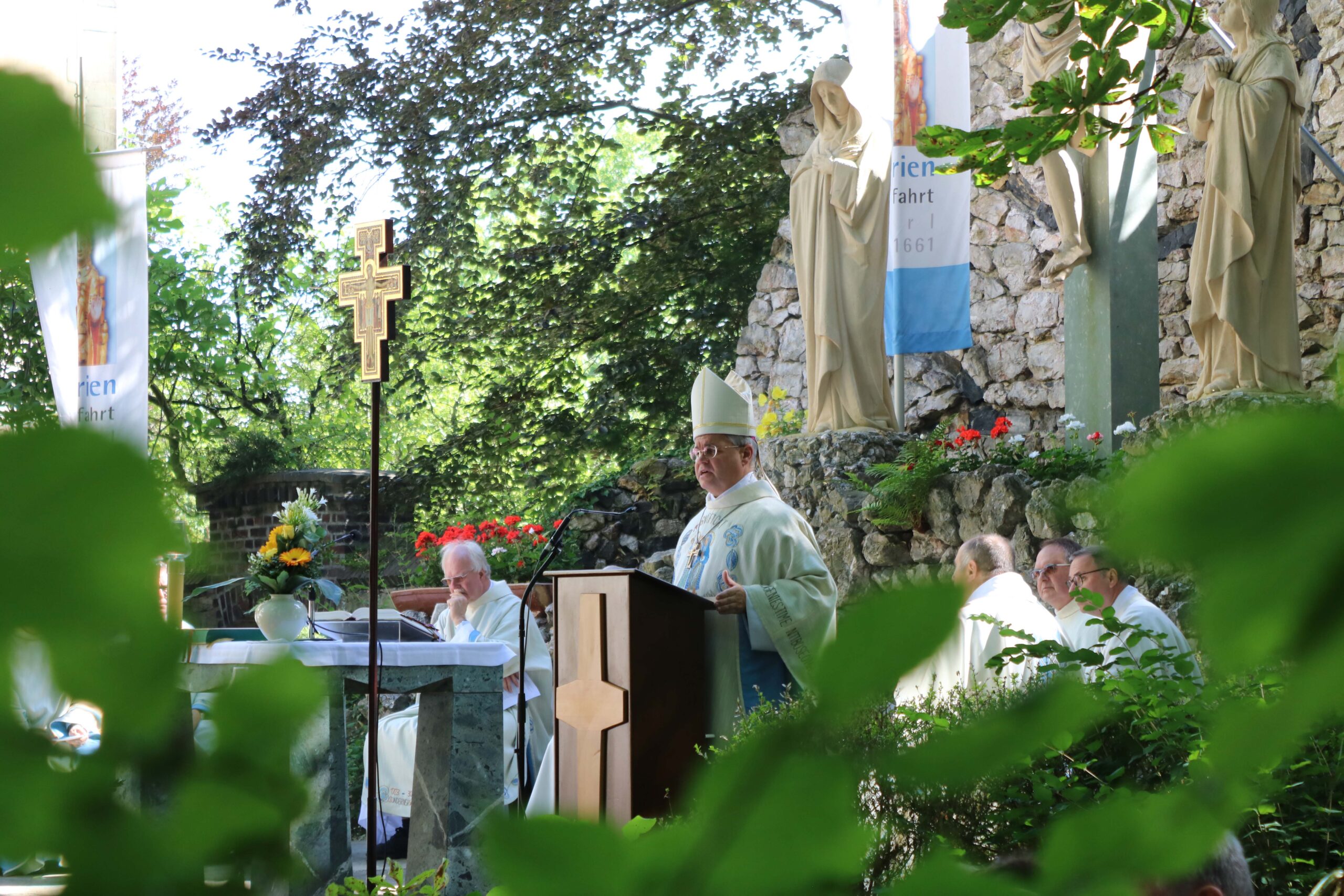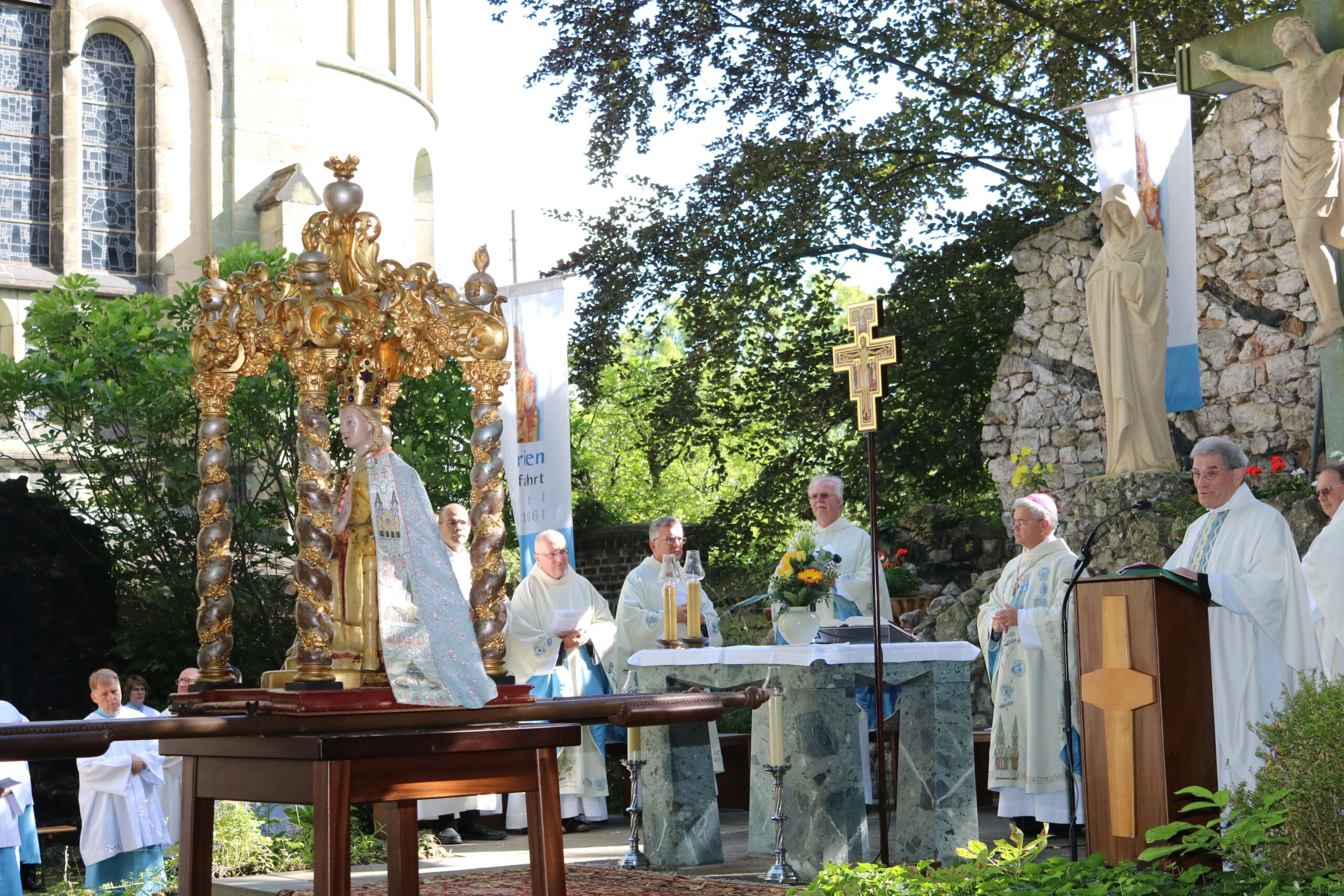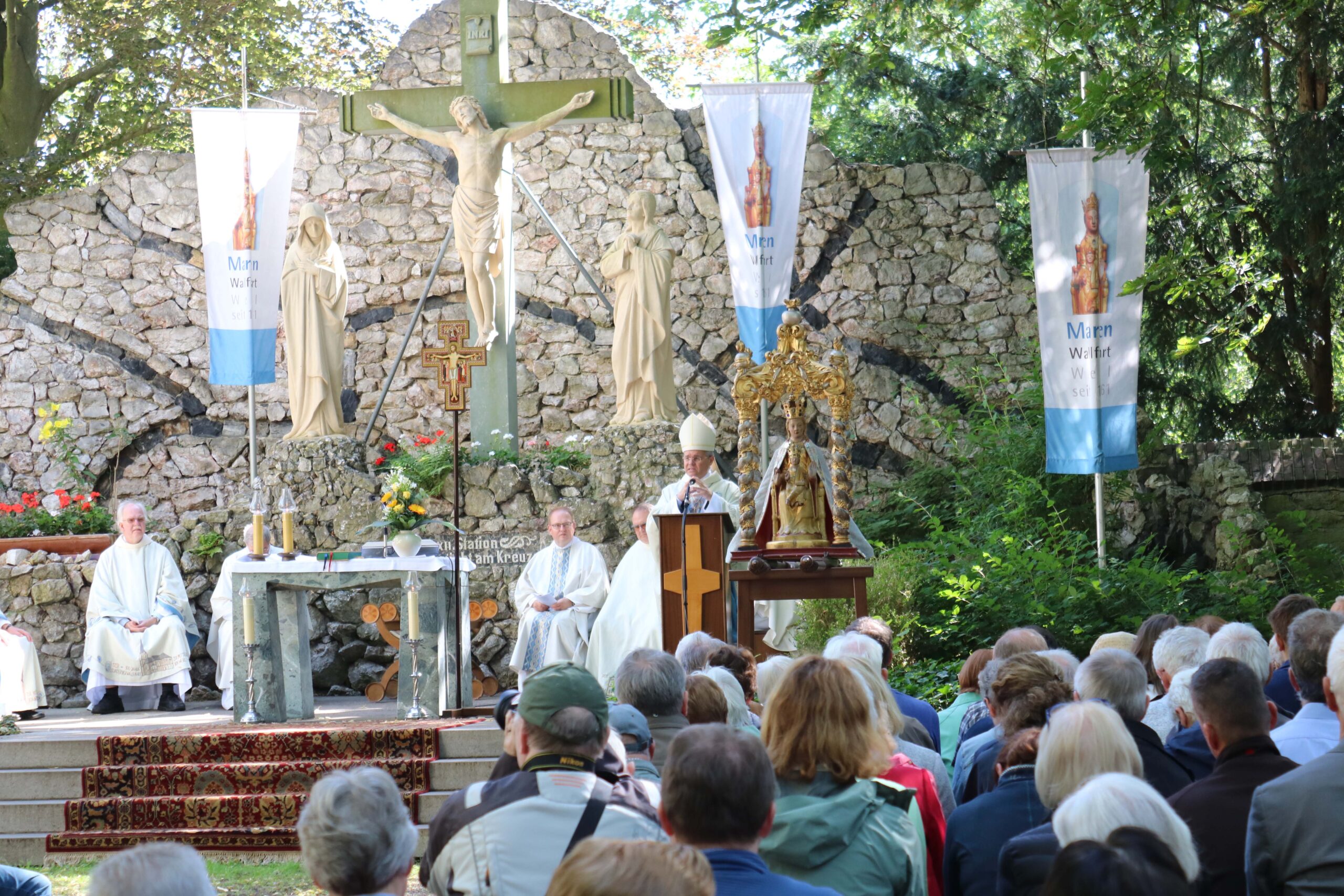 Erzbischof Dr. Udo Markus Bentz wurde mit freundlichen Worten vom Wallfahrtsleiter Pastor Dr. Gerhard Best willkommen geheißen. Der Seelsorger verdeutlichte in seinem Grußwort, dass Wallfahrten immer auch zu guten Begegnungen beitragen und damit wichtiger denn je sind.