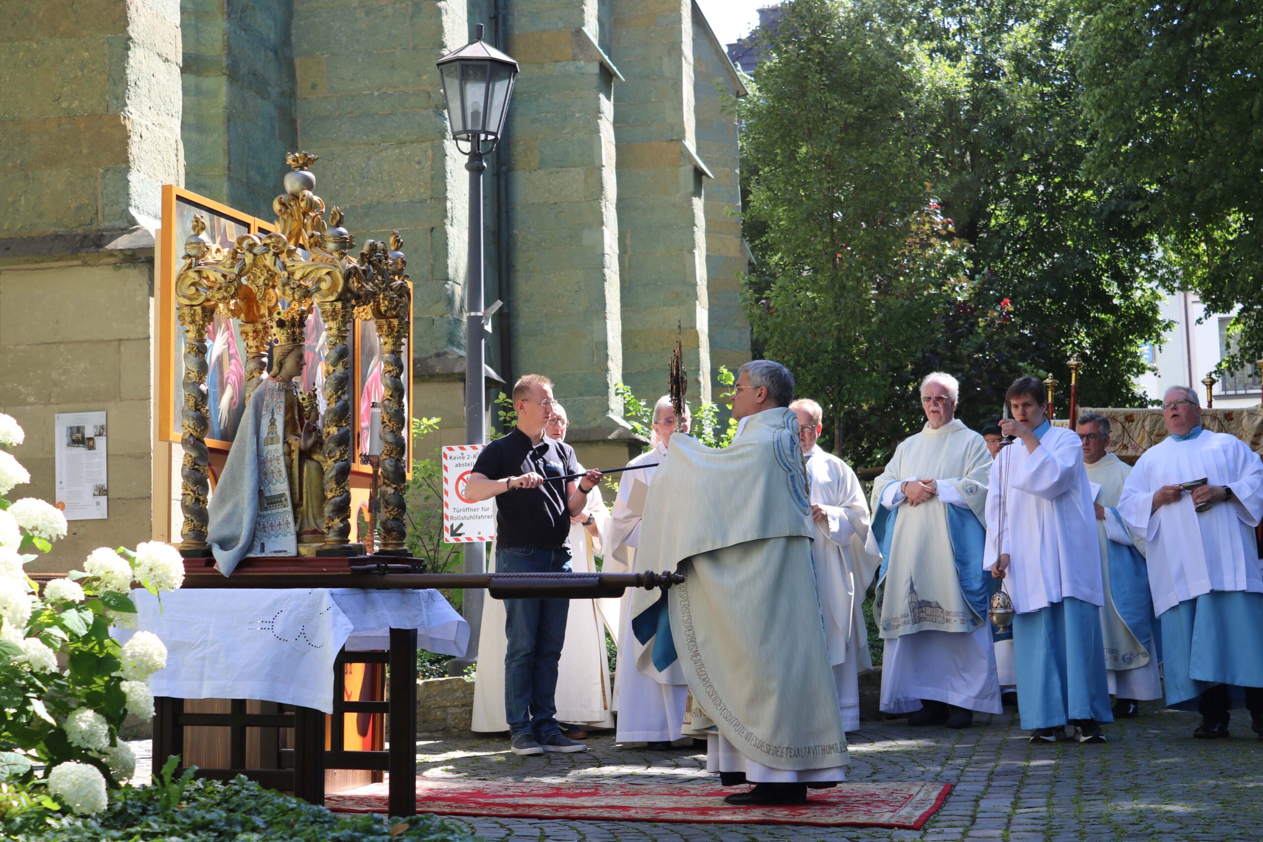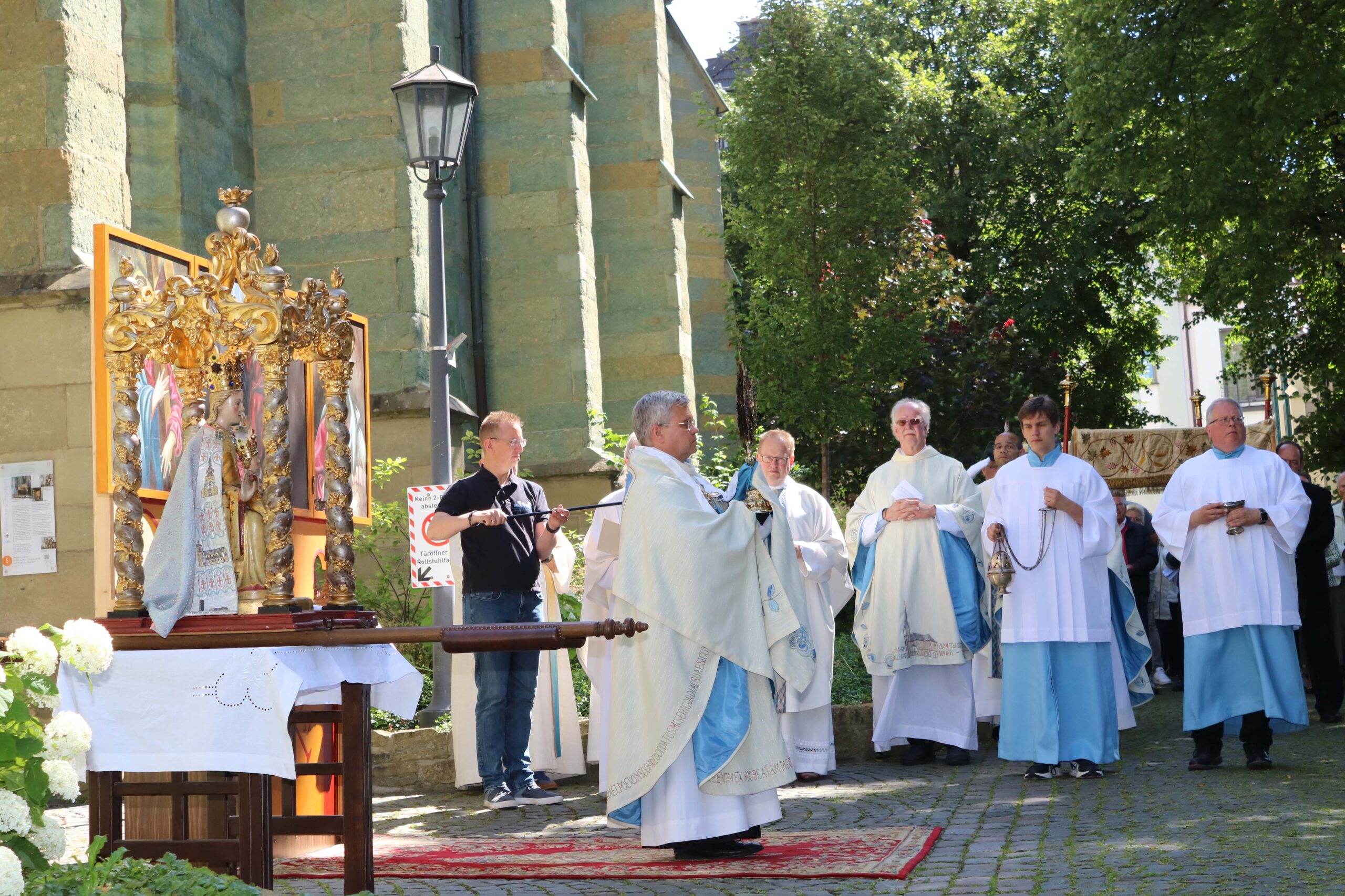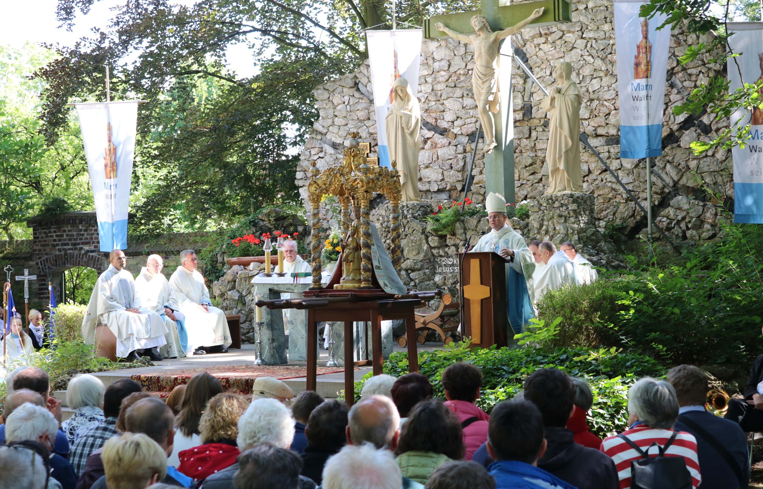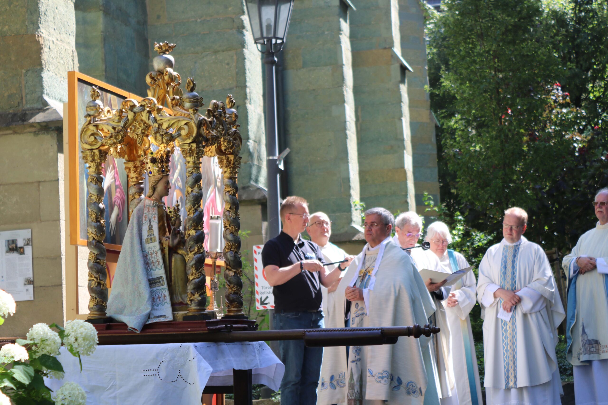 Erzbischof Dr. Udo Markus Bentz wurde mit freundlichen Worten vom Wallfahrtsleiter Pastor Dr. Gerhard Best willkommen geheißen. Der Seelsorger verdeutlichte in seinem Grußwort, dass Wallfahrten immer auch zu guten Begegnungen beitragen und damit wichtiger denn je sind.