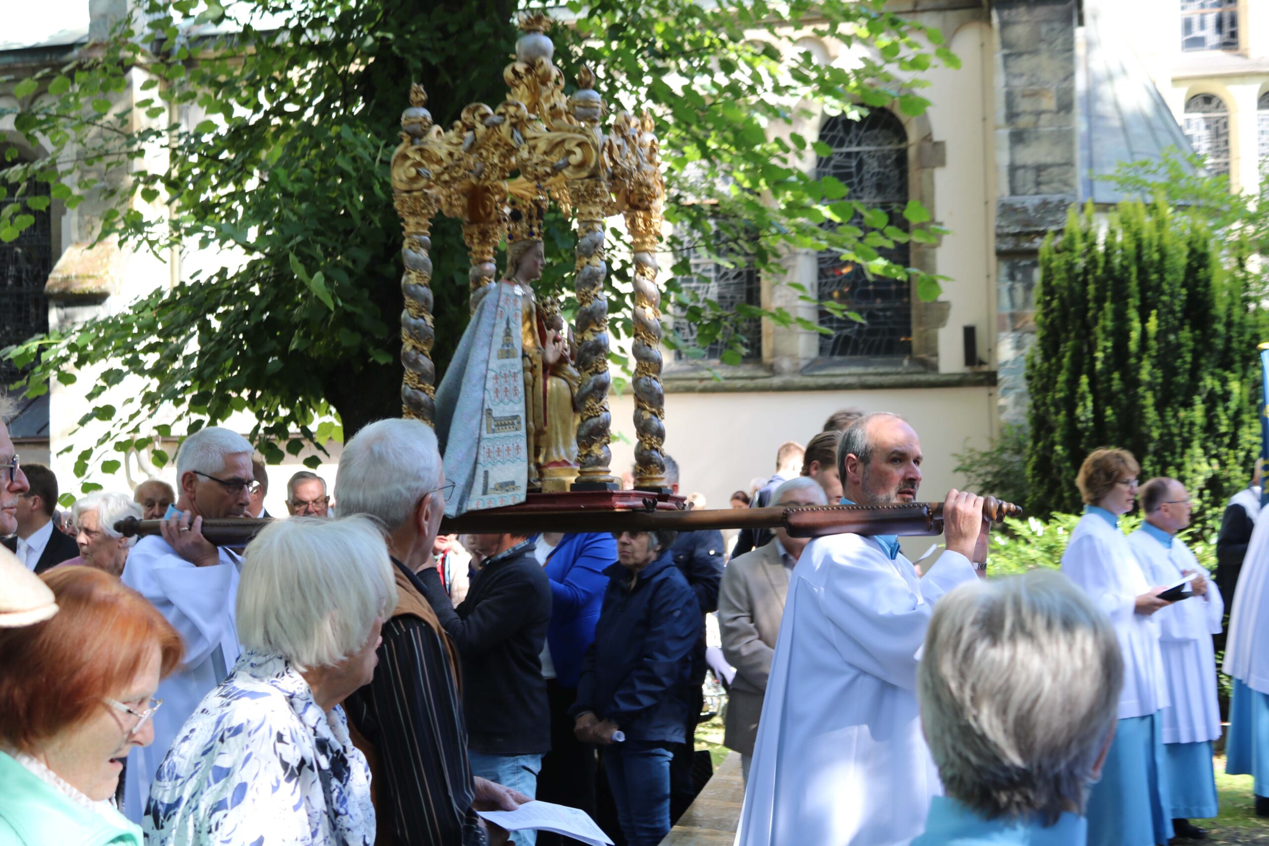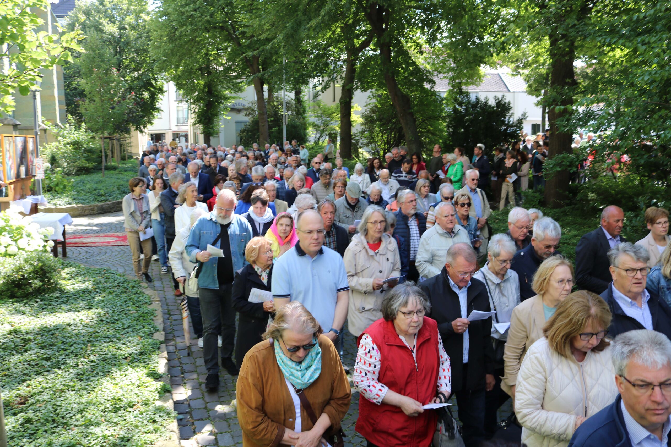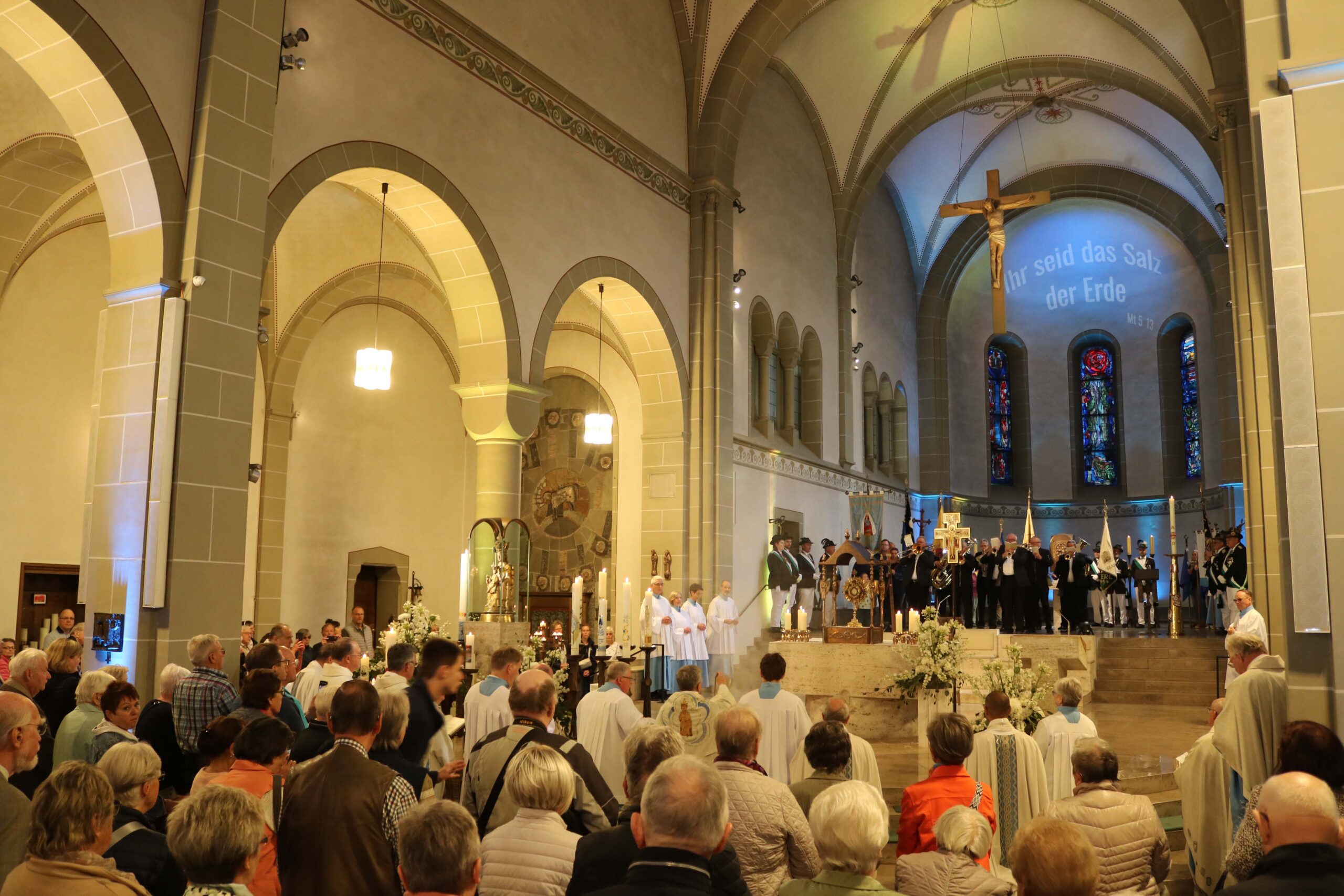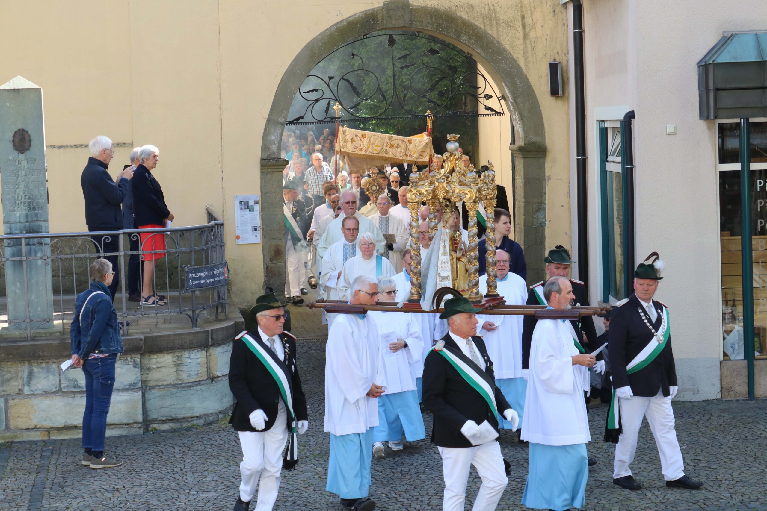 Diesen Begegnungs-Aspekt nahm Erzbischof Dr. Udo Markus Bentz in seiner Predigt auf: „Wir brauchen in unserer Kirche auch künftig solche Orte und Ereignisse, in denen vertiefte Begegnungen miteinander und mit Gott ermöglicht werden: besondere Kirchorte wie Werl, zu denen Menschen aufbrechen können und Begegnung erleben.“ Der Paderborner Erzbischof schlug den Bogen von der Begegnung zur Bewegung und brachte den Gläubigen vor Ort damit die Verbindung zu Maria nahe: „Maria macht sich auf den Weg. Wer aufbricht und nicht sitzen bleibt, wer sich auf den Weg macht, bei dem kommt auch innerlich etwas in Bewegung. Das gilt auch für uns als Kirche. Es muss uns gelingen, uns als Kirche – als Erzbistum – als Gemeinde vor Ort – in Bewegung zu kommen. Das Festgefahrene festzuhalten, hilft uns nicht weiter. Schon immer war es ein großartiges Bild, die Kirche als ‚das pilgernde Volk Gottes unterwegs‘ zu bezeichnen. Und wenn uns in unserer Zeit die gleiche Frage wie Maria umtreibt – Wie geht es weiter, was bringt die Zukunft? – dann möchte ich uns ermutigen: Wenn wir es wirklich mit Gott zu tun bekommen, dann werden wir nicht erstarren, sondern uns verändern und aufbrechen.“