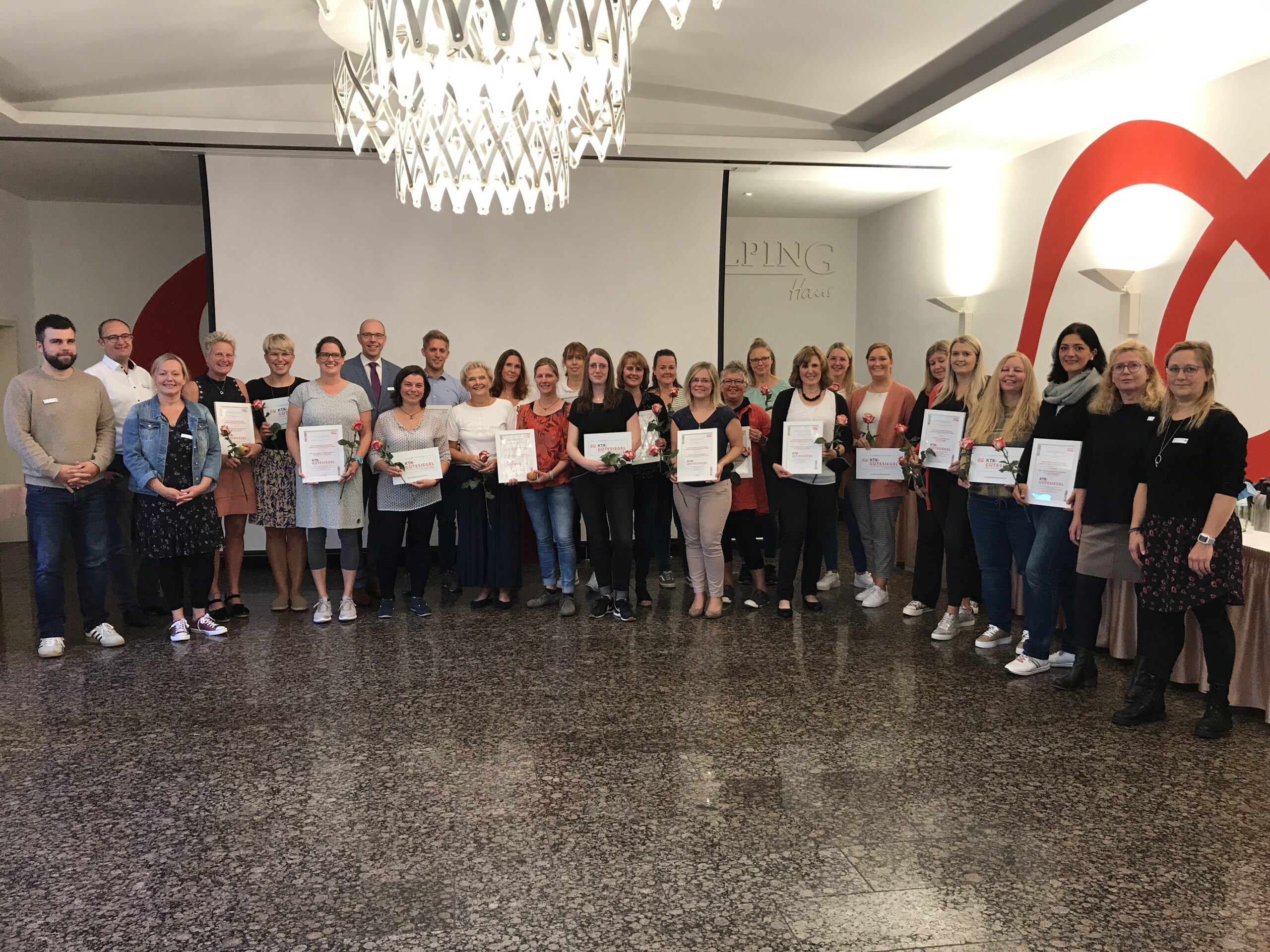 „Das KTK-Gütesiegel ist ein hervorragendes Angebot für katholische Kindertageseinrichtungen, um werteorientiert Qualität zu entwickeln und dabei dem Recht der Kinder auf religiöse Entwicklung zu entsprechen“, resümiert auch der Geschäftsführer der kooperierenden Kita gem. GmbHs Hellweg, Hochsauerland-Waldeck und Siegerland-Südsauerland, Michael Stratmann. Durch das Zertifizierungsverfahren werde u.a. testiert, dass wichtige wissenschaftliche Erkenntnis und gesetzliche Anforderungen in der Kita umgesetzt würden und wesentliche Indikatoren der Praxis den hohen Qualitätsanforderungen einer Kindertageseinrichtung entsprechen. „Sie können sehr stolz auf sich sein, dass Sie in Ihren Kitas allesamt diese anspruchsvollen Maßstäbe erfüllen und somit heute das Zertifikat für ihre Einrichtung entgegennehmen können“, gratulierte Stratmann während der Urkundenübergabe kürzlich im Olper Kolpinghaus den anwesenden Kita-Leitungen und Qualitätsbeauftragten aus den Einrichtungen.
