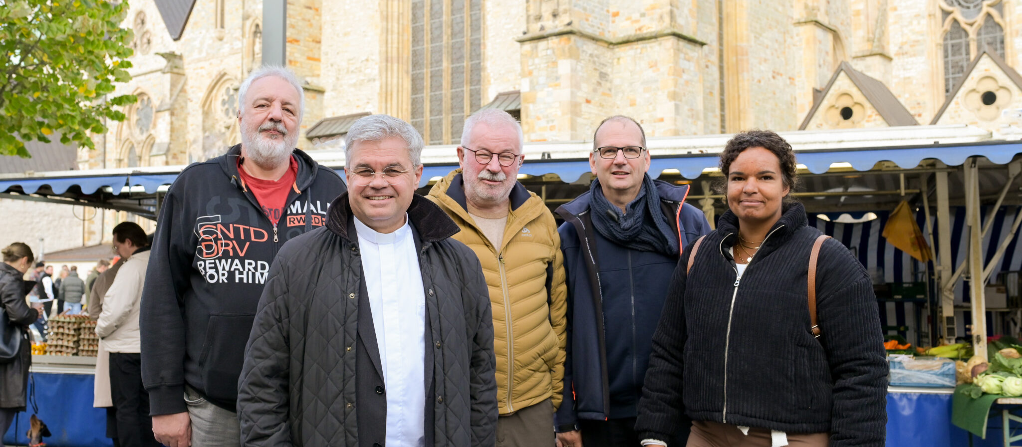 Die Teilnehmenden, die aus weiten Teilen Deutschlands angereist waren, trafen sich zunächst im Hotel Aspethera. Zum gemeinsamen Frühstück am Samstagmorgen kam Erzbischof Dr. Udo Markus Bentz dazu. Gemeinsam mit dem Paderborner Erzbischof besuchten die Teilnehmenden anschließend den Paderborner Wochenmarkt. „Gemeinsam mit dem Interventionsteam des Erzbistums haben wir eine Einkaufsliste mit Zutaten für das Abendessen vorbereitet, das die Teilnehmenden später zusammen zubereitet haben“, erklärt Heinrich Maiworm die gemeinsame Einkaufstour.