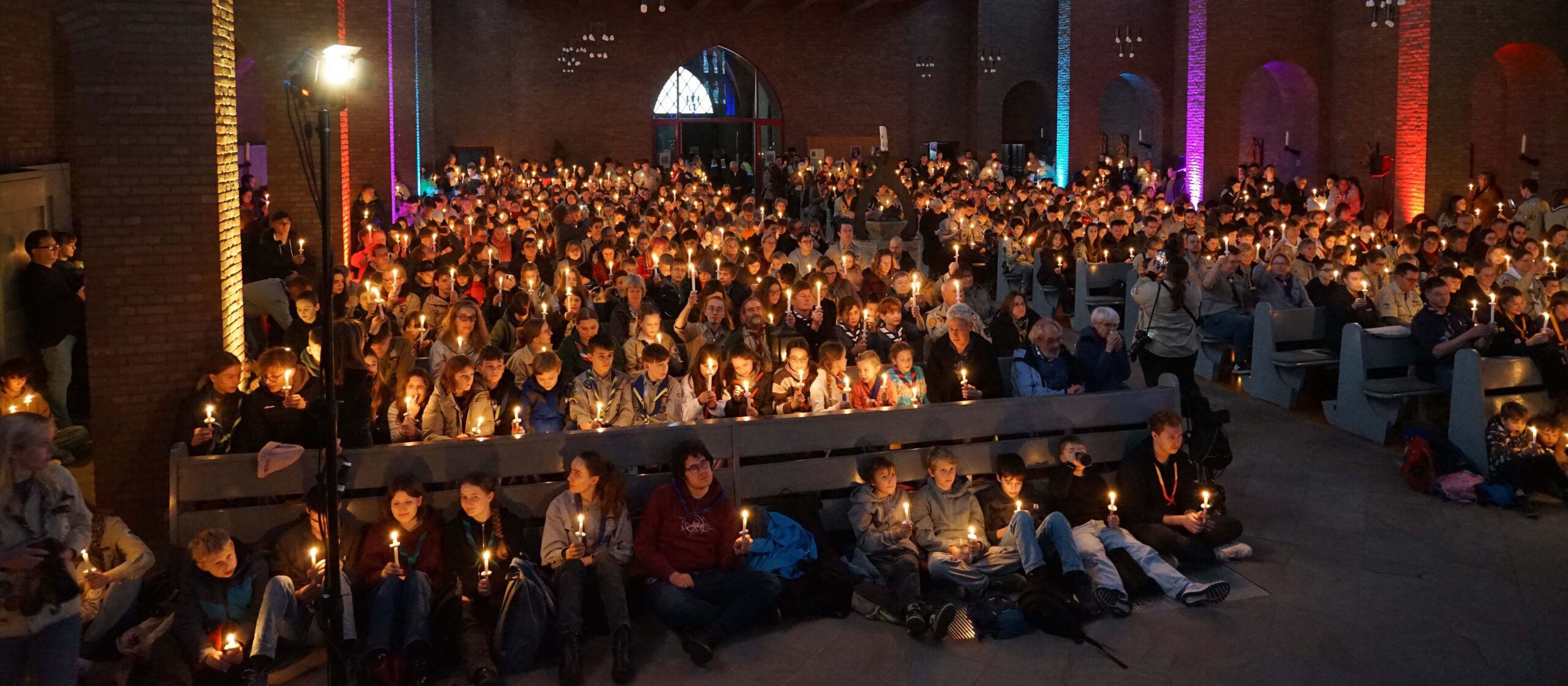 Im ökumenischen Gottesdienst nahmen Thorsten Hasse, Diözesankurat der katholischen DPSG, und der evangelische Landesjugendpfarrer Christian Branko Uhlstein das Friedenslicht offiziell in Empfang. Anschließend gaben sie es an die zahlreichen Besucherinnen und Besucher weiter, die es untereinander teilten – ein Moment, der die Kirche in warmes Kerzenlicht tauchte. Wie in den Vorjahren war die Atmosphäre geprägt von großer Achtsamkeit, Stille und der spürbaren Bereitschaft, das Licht als Auftrag zum Frieden mit in den Alltag zu nehmen.
