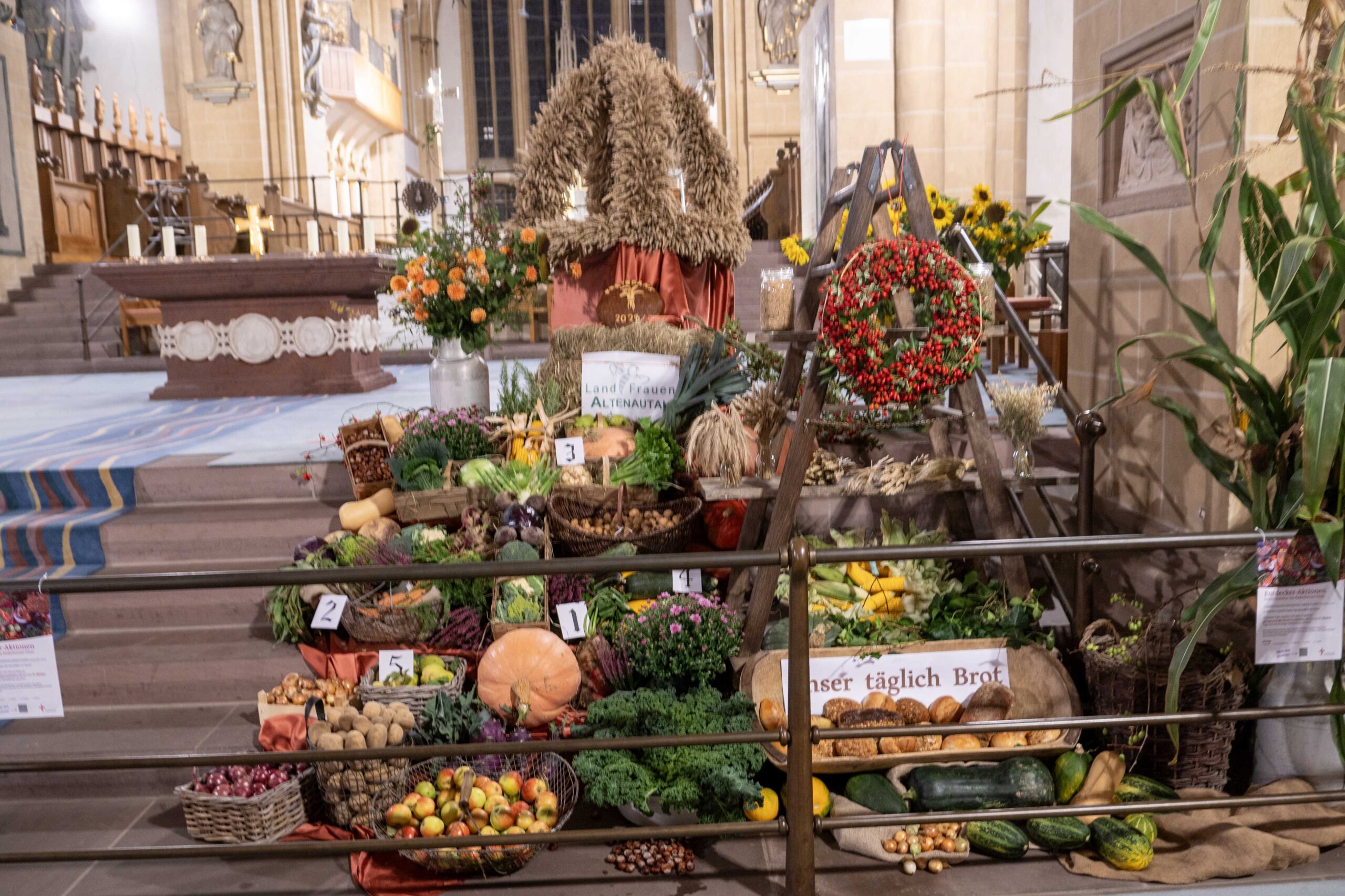 Die meisten Kirchengemeinden im deutschsprachigen Raum begehen das Erntedank-Fest auf ähnliche Weise wie im Paderborner Dom und schmücken den Altar oder den Altarraum mit Erntegaben.
