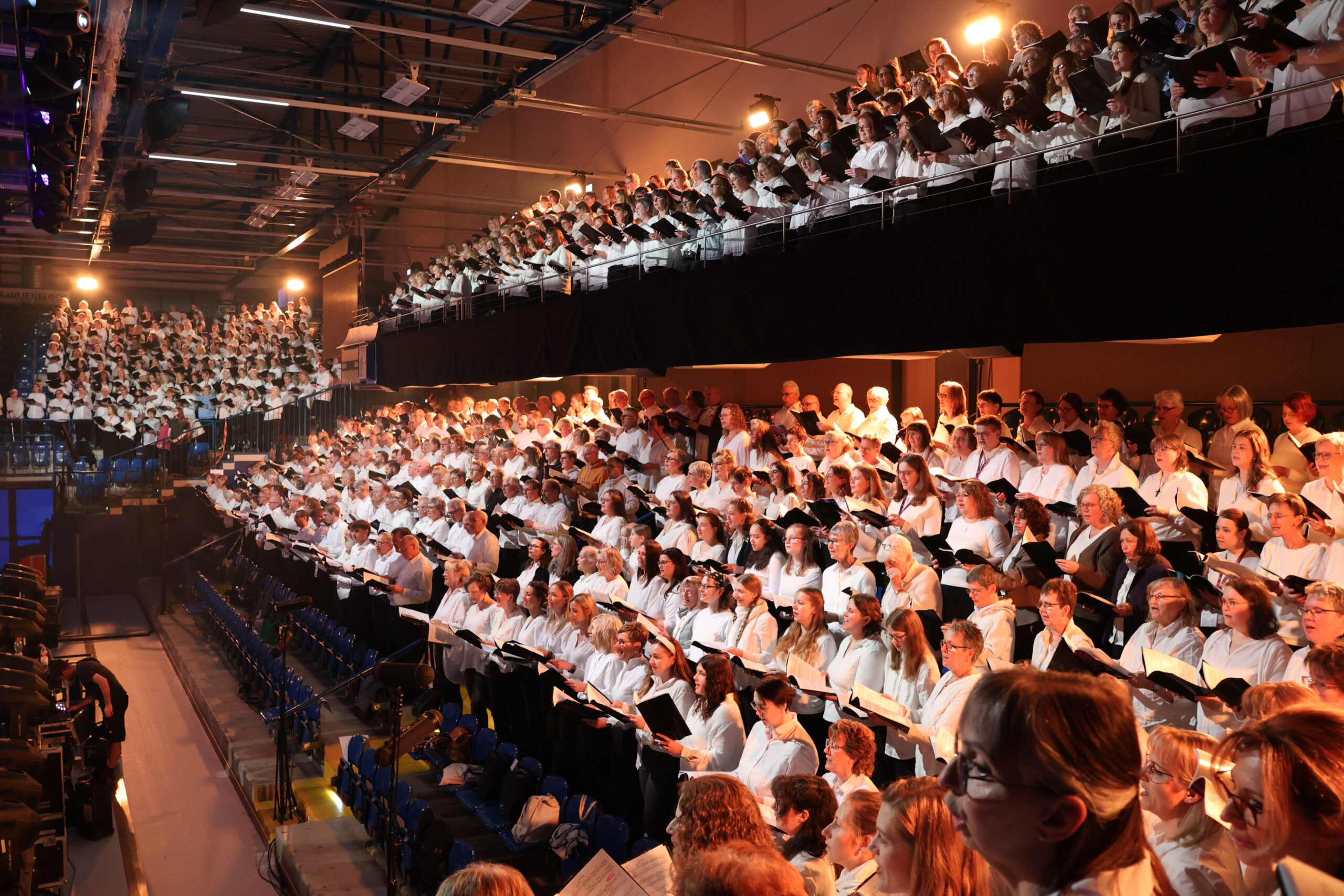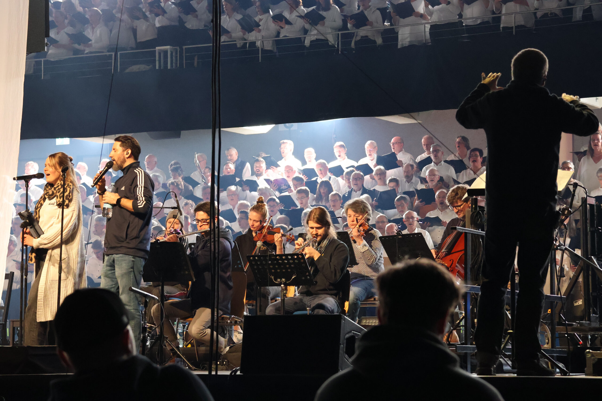 Dann endlich die Generalprobe am Samstagnachmittag direkt vor der Aufführung. „Mit den Chormusicals schaffen wir einmalige Erlebnisse, die für die Beteiligten lange nachklingen“, sagte Marcel Volkmann, Vorstand der Stiftung Creative, und sprach den Sängerinnen und Sängern aus der Seele. „Habt Spaß heute“, rief er ihnen zu und erntete auch dafür dankbaren Applaus. Die Basis für einen gelungenen Abend wurde hier ein Stückweit mitgelegt.