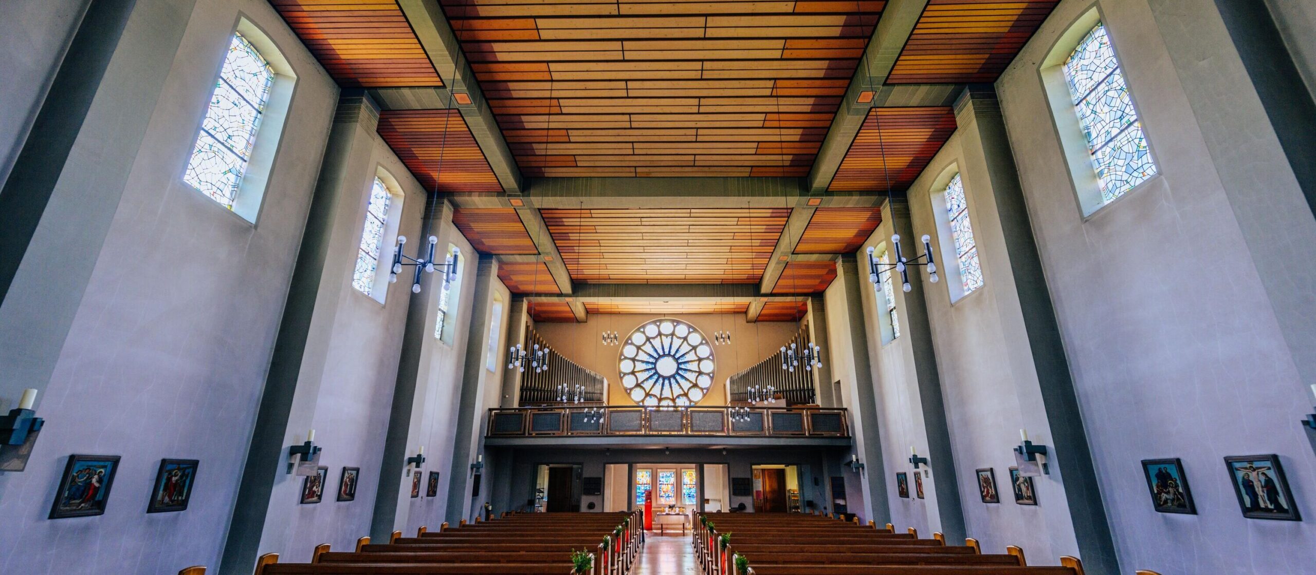 Paul Brandenburg mag seine Herz-Jesu-Kirche. Mittlerweile ist er nach Essen gezogen. Mit Mitte 80 fällt ihm die 40 Kilometer weite Fahrt nach Witten nicht mehr ganz so leicht wie früher. Trotzdem kommt er regelmäßig zu den Nachmittagen für Seniorinnen und Senioren der Katholischen Arbeitnehmerbewegung (KAB) in seine alte Heimatstadt. In der Herz-Jesu-Gemeinde war er über ein Jahrzehnt Mitglied des Kirchenvorstands. Auch hat er an gleich mehreren heimatkundlichen Schriften mitgewirkt, kennt die Geschichte der Kirchengemeinde wie die des Kirchengebäudes aus dem Effeff. Aber was das Bildmotiv des Glasmosaikfensters aussagen soll, das für dieses Kalenderblatt ausgewählt wurde, kann der Kirchenkenner nicht sagen. „Die Bedeutung der oberen Bildbestandteile ist sonnenklar“, sagt Paul Brandenburg. „Die Taube symbolisiert den Heiligen Geist, die Feuerzungen darunter spielen auf das Pfingstwunder an. Aber für die gekreuzten Schwerter darunter habe ich noch keine schlüssige Erklärung gehört.“