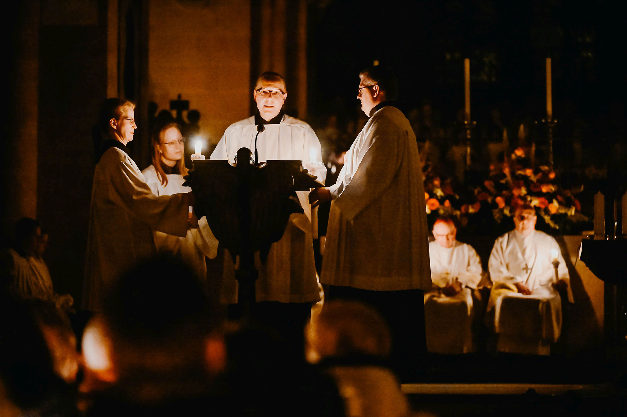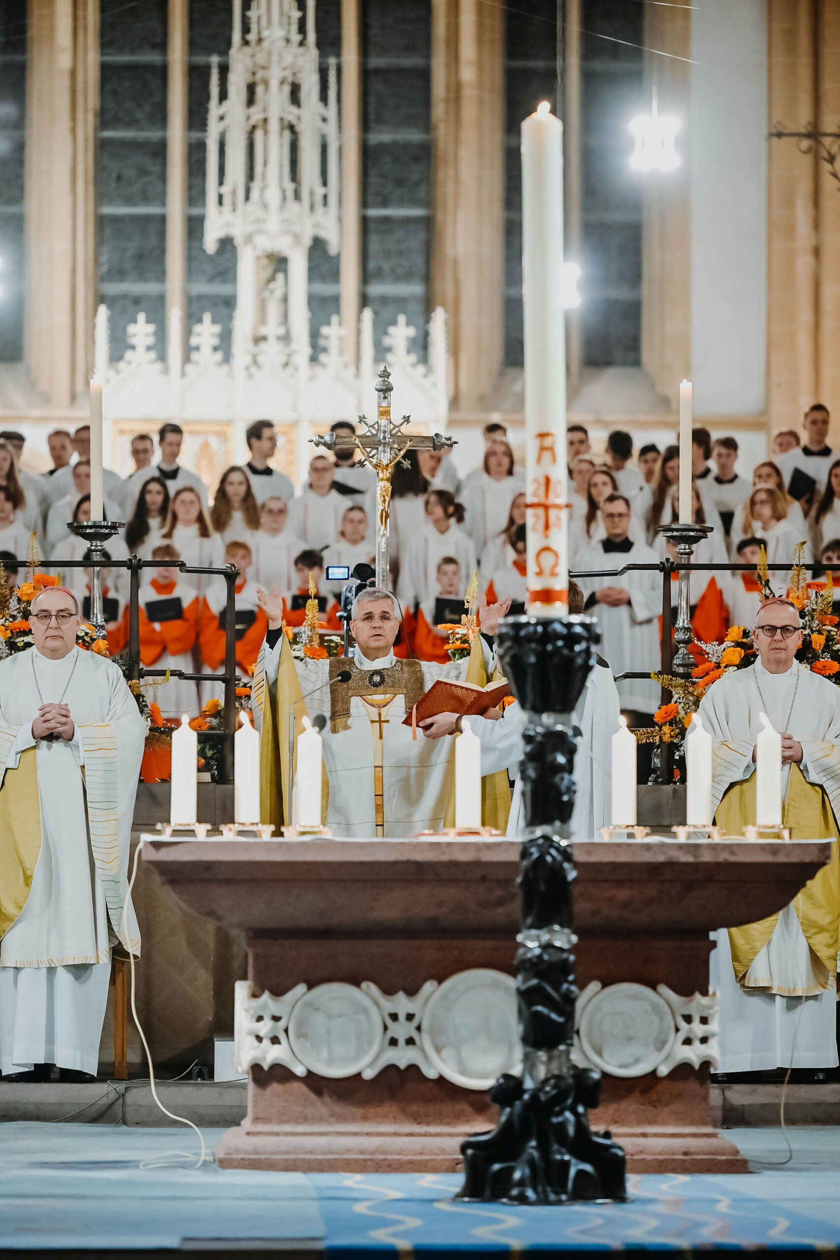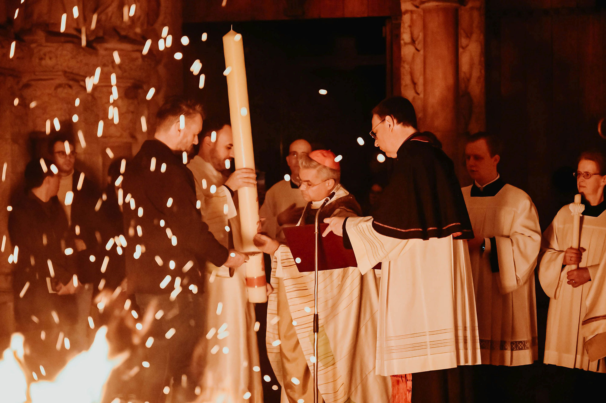 „Dreimal haben wir in der Karfreitagsliturgie bei der Kreuzverehrung das ‚Ecce lignum‘ gesungen“, machte Erzbischof Dr. Bentz deutlich. „Aber das ist nur das Vorletzte. Heute haben wir drei Mal das ‚Lumen Christi‘ gesungen. Das Licht des auferstandenen Christus steht im großartigsten Sinn für das Letzte, das den Tod überwindet.“