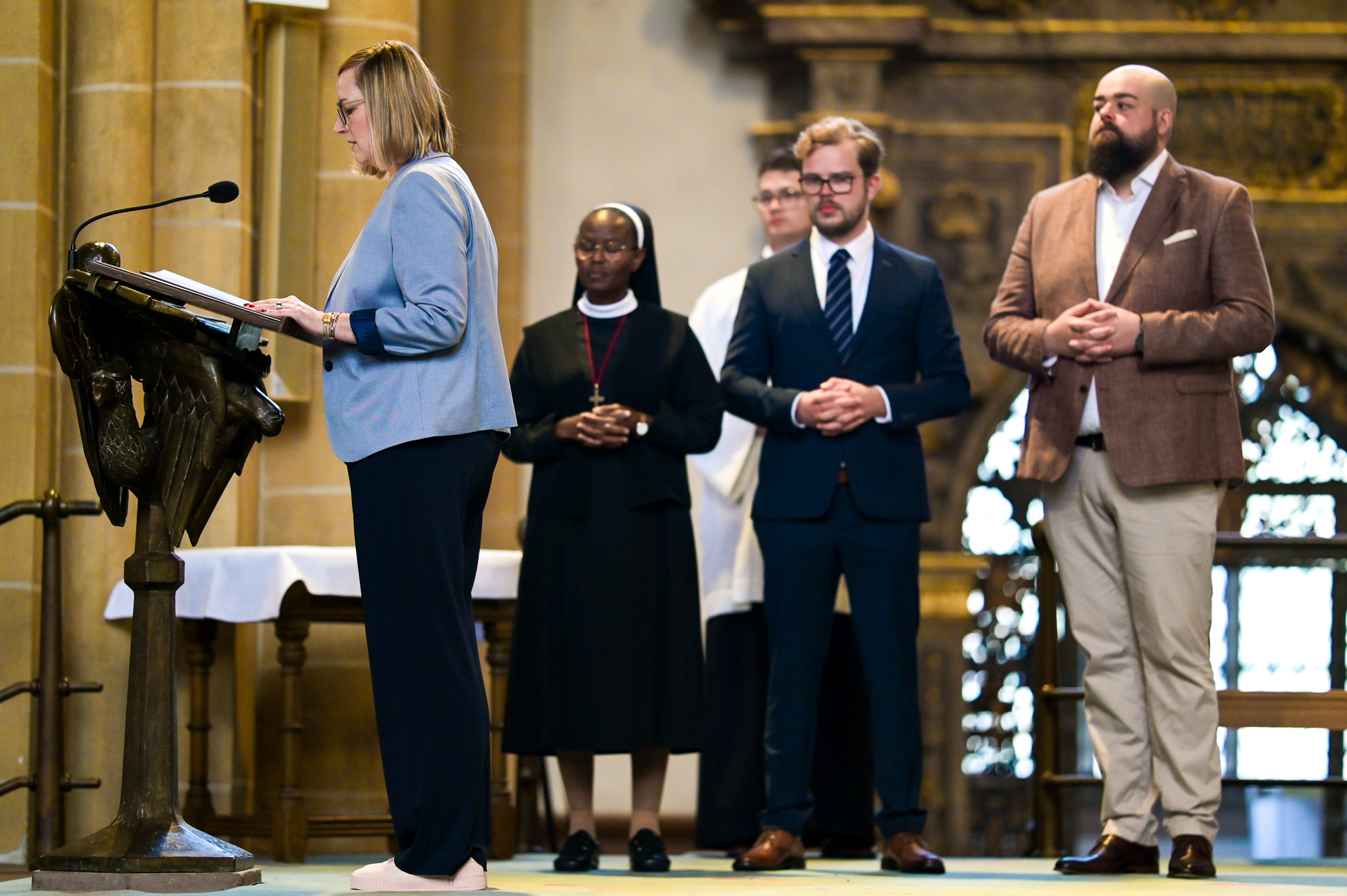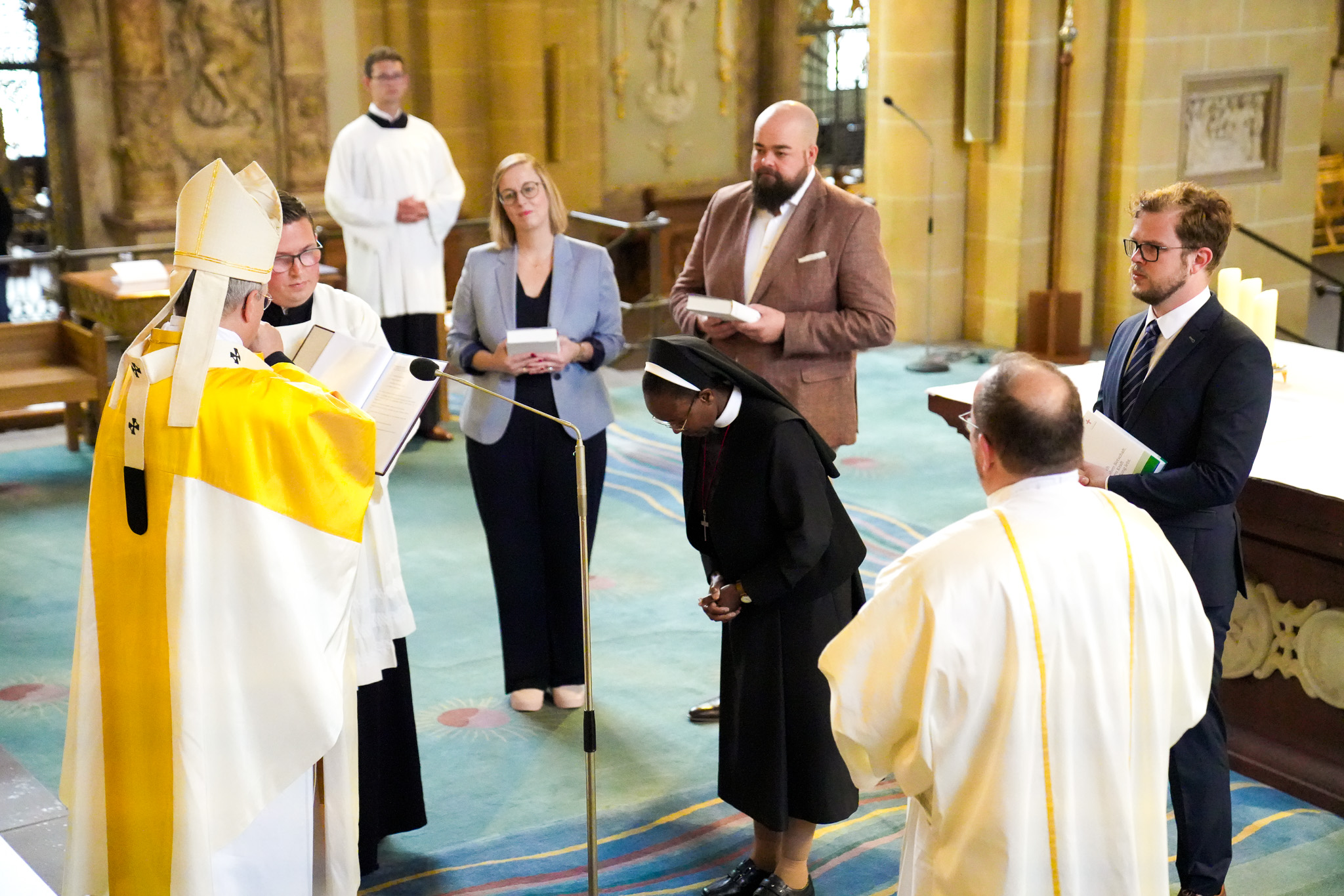 Schwester Mary Grace Sawe aus dem Pastoralen Raum An Egge und Lippe ist Ordensschwester vom Kostbaren Blut. Sie wurde 1974 geboren und hat nach ihrem Abschluss im Jahr 1994 eine Ausbildung zur Krankenschwester absolviert. Während ihrer Assistenzzeit war sie von 2016-2020 im Bistum Münster in der Anna Katharina Pfarrei Coesfeld beschäftigt. Als Gemeindereferentin wird Schwester Mary Grace Sawe an den Reha-Kliniken in Bad Lippspringe wirken.