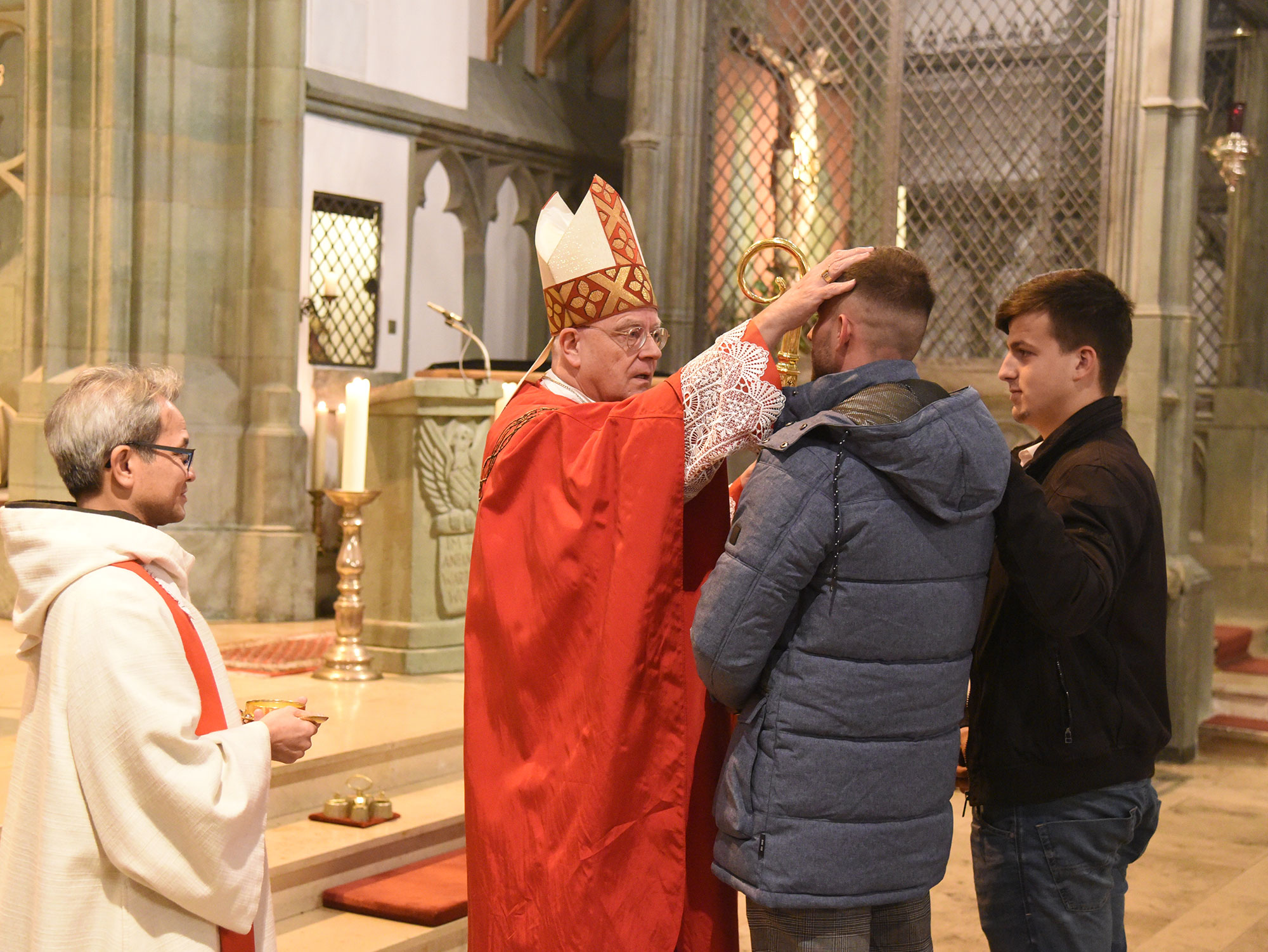 Menschen würden nicht gern die Kontrolle über ihr Leben und ihre Pläne abgeben, machte Weihbischof König weiter deutlich. „Aber es lohnt sich, Gott ein Stück unserer Freiheit abzugeben und sich ihm zu überlassen.“ Durch die Firmung verleihe der Heilige Geist die Kraft und den Anschub, von dem, was Gott gibt, etwas aufzunehmen und weiterzugeben. „Das ist das, wovon die Welt lebt“, unterstrich Weihbischof Matthias König zum Abschluss seiner Predigt.