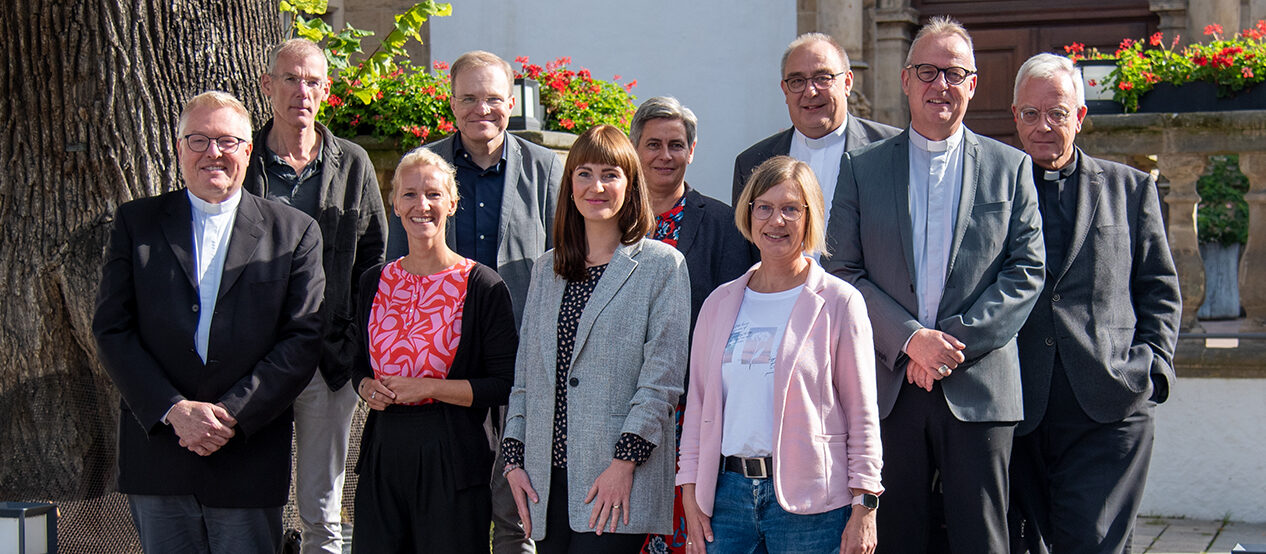 Zu aktuellen Fragen queersensibler Seelsorge im Erzbistum Paderborn haben sich Diözesanadministrator Monsignore Dr. Michael Bredeck, die Weihbischöfe Matthias König, Dr. Dominicus Meier OSB und Josef Holtkotte sowie Offizial Hans Jürgen Rade mit dem seit Anfang 2022 bestehenden diözesanen Arbeitskreis „Queersensible Pastoral“ getroffen. Bei dem Treffen am Donnerstag, 14. September 2023, im Paderborner Liborianum sprachen die Bistumsspitze und die Mitglieder des Arbeitskreises unter anderem über den derzeitigen Stand der Arbeit des Fachkreises.