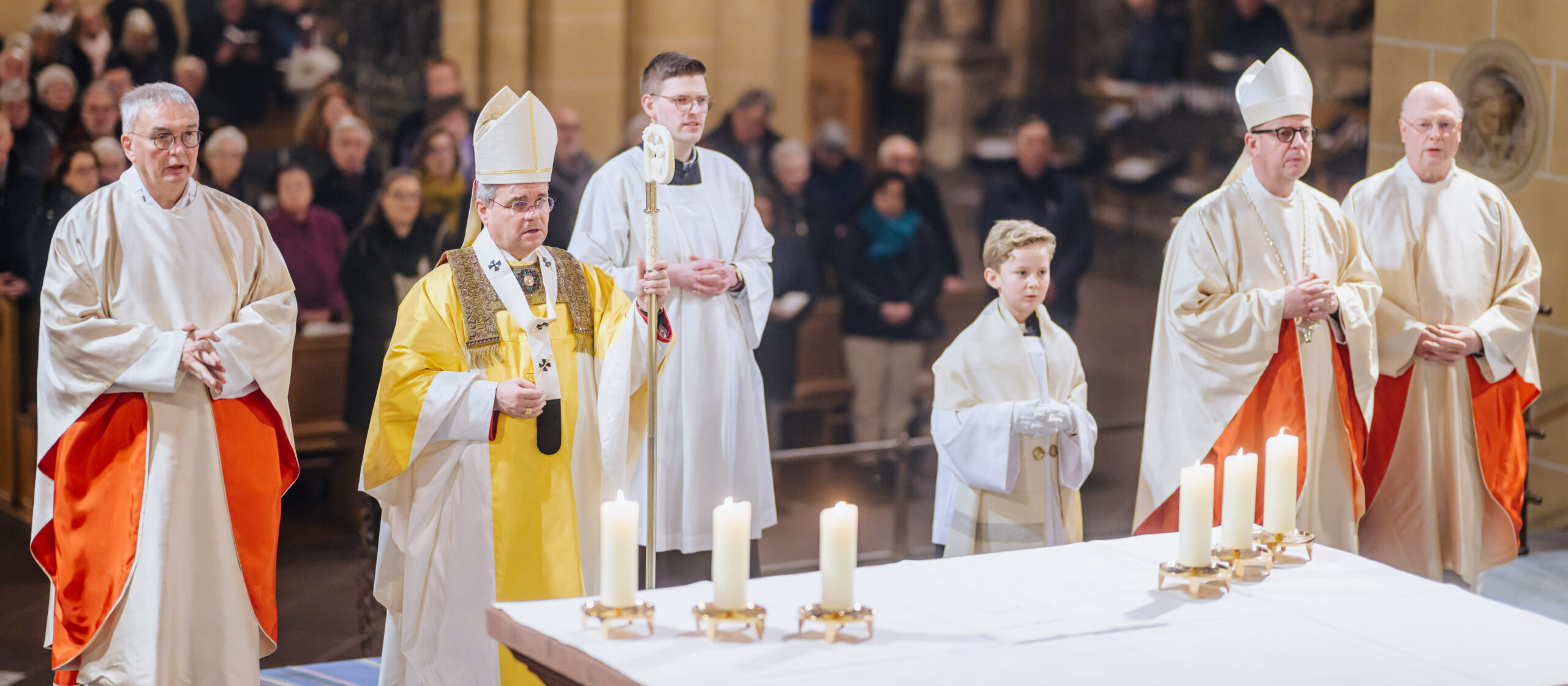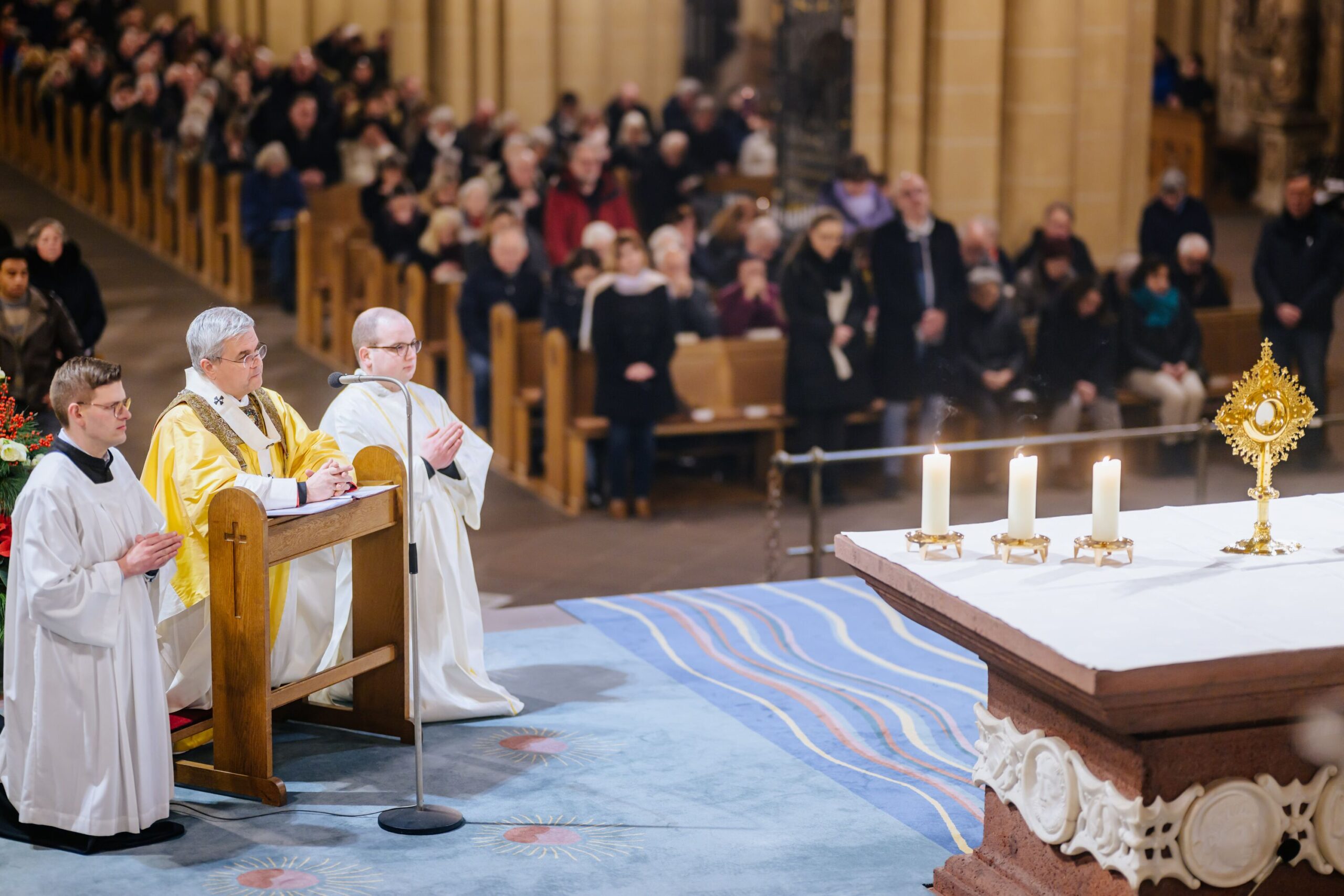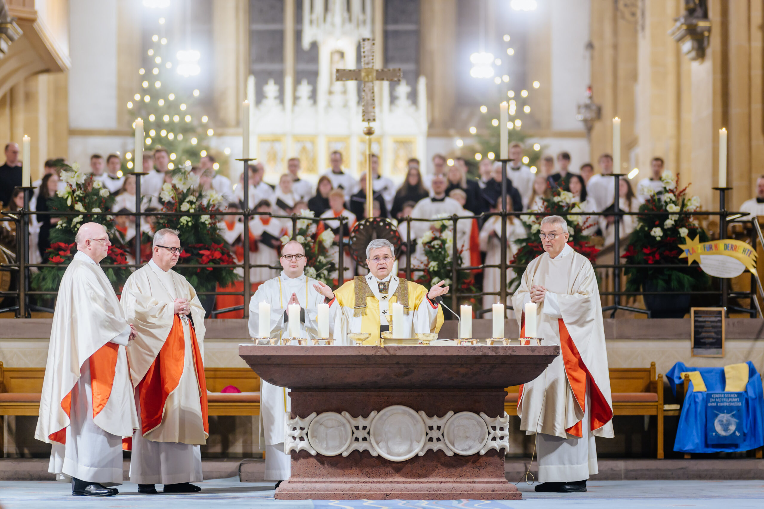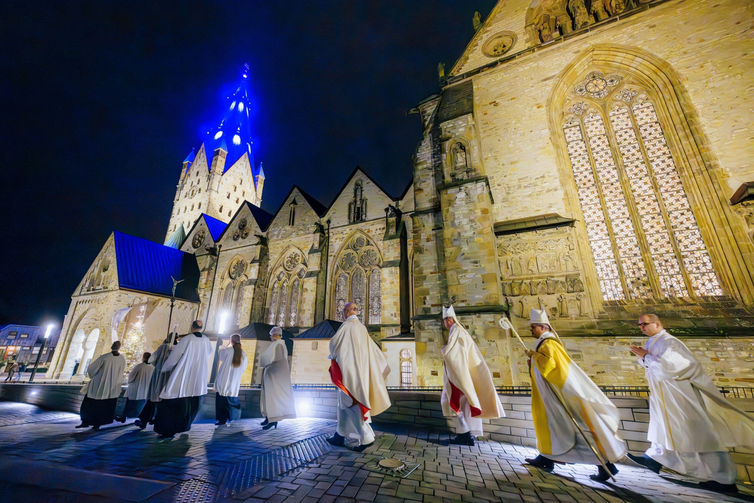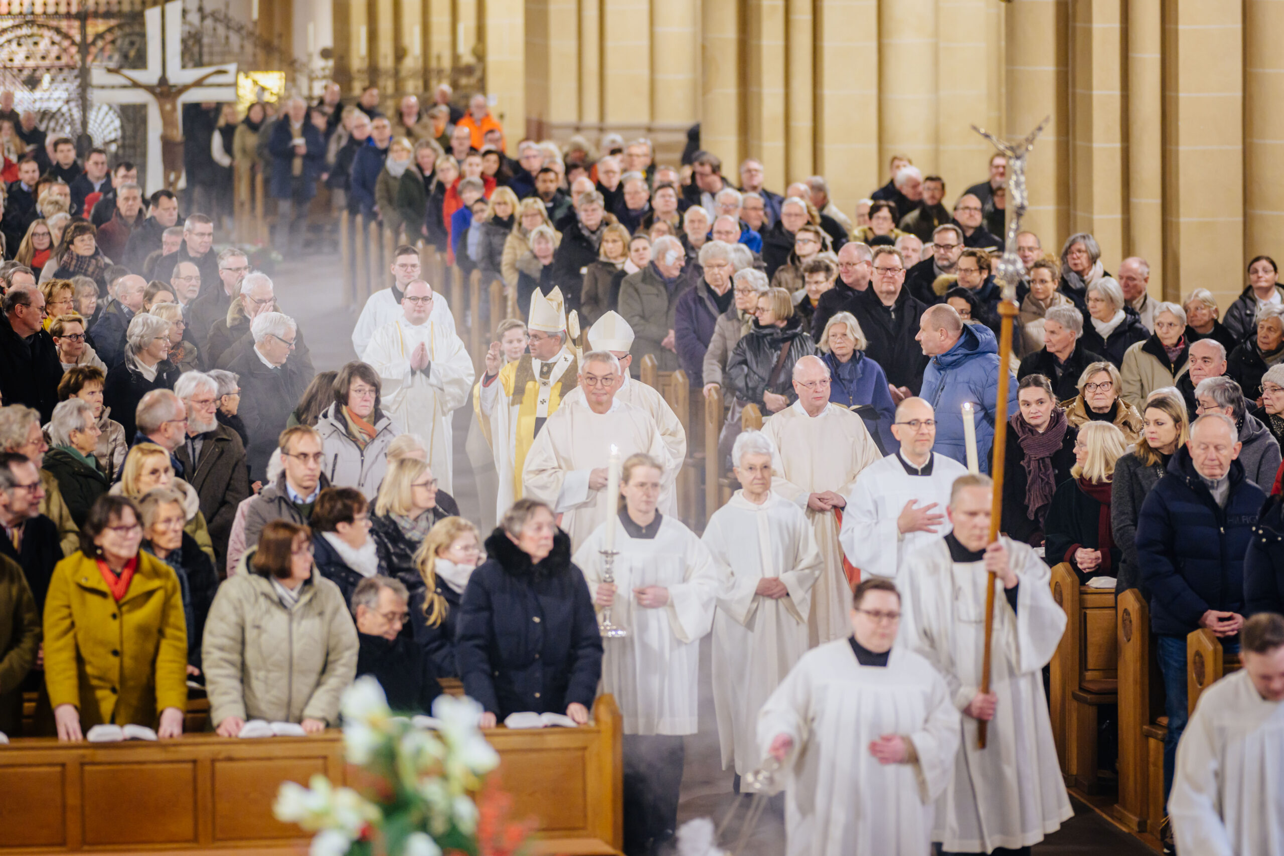 Erzbischof Dr. Udo Markus Bentz rief am Silvesterabend, 31. Dezember 2024, in der Jahresabschlussmesse 2024 im Hohen Dom zu Paderborn zu einem geistlichen Umgang mit der Zeit auf. In seiner Predigt bekräftigte der Paderborner Erzbischof, dass aus der Erfahrung, wie Gott sein Volk in der Vergangenheit begleitet und durch Krisen hindurchgeführt habe, Vertrauen und Hoffnung auf Zukunft hin geschöpft werden könne. „Aus der Erfahrung der Vergangenheit – Gott ist treu – können wir Hoffnung, Kraft und Vertrauen für die vor uns liegenden Aufgaben schöpfen.“ Erzbischof Dr. Bentz ermutigte dazu, das Gewesene nicht als erledigt abzuhaken, vielmehr sich des Vergangenen zu erinnern, um daraus die geistliche Kraft – das Vertrauen, den Mut, die Hoffnung – zu schöpfen, in die Zukunft zu gehen. Zugleich betonte der Paderborner Erzbischof die Bedeutung und „Kostbarkeit“ des Augenblicks, der Gegenwart, des „Jetzt“. Zahlreiche Gläubige feierten in der Bischofskirche des Erzbistums Paderborn das Pontifikalamt zum Jahresabschluss 2024. Am Ende spendete Erzbischof Dr. Udo Markus Bentz nach einer Zeit der Anbetung den Gläubigen den Eucharistischen Segen für das neue Jahr 2025. Der Gottesdienst wurde im Livestream aus der Kathedralkirche der Erzdiözese übertragen.