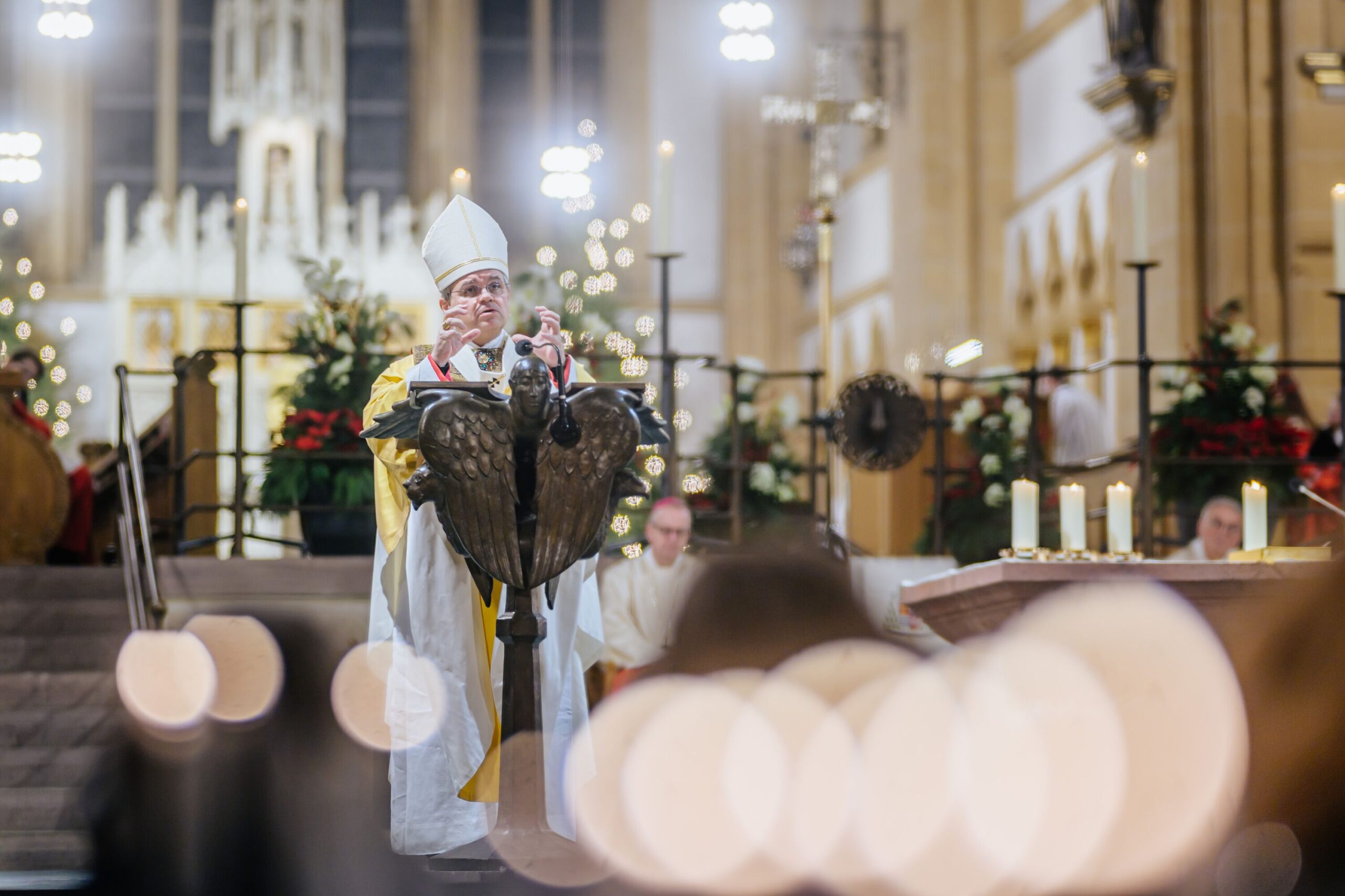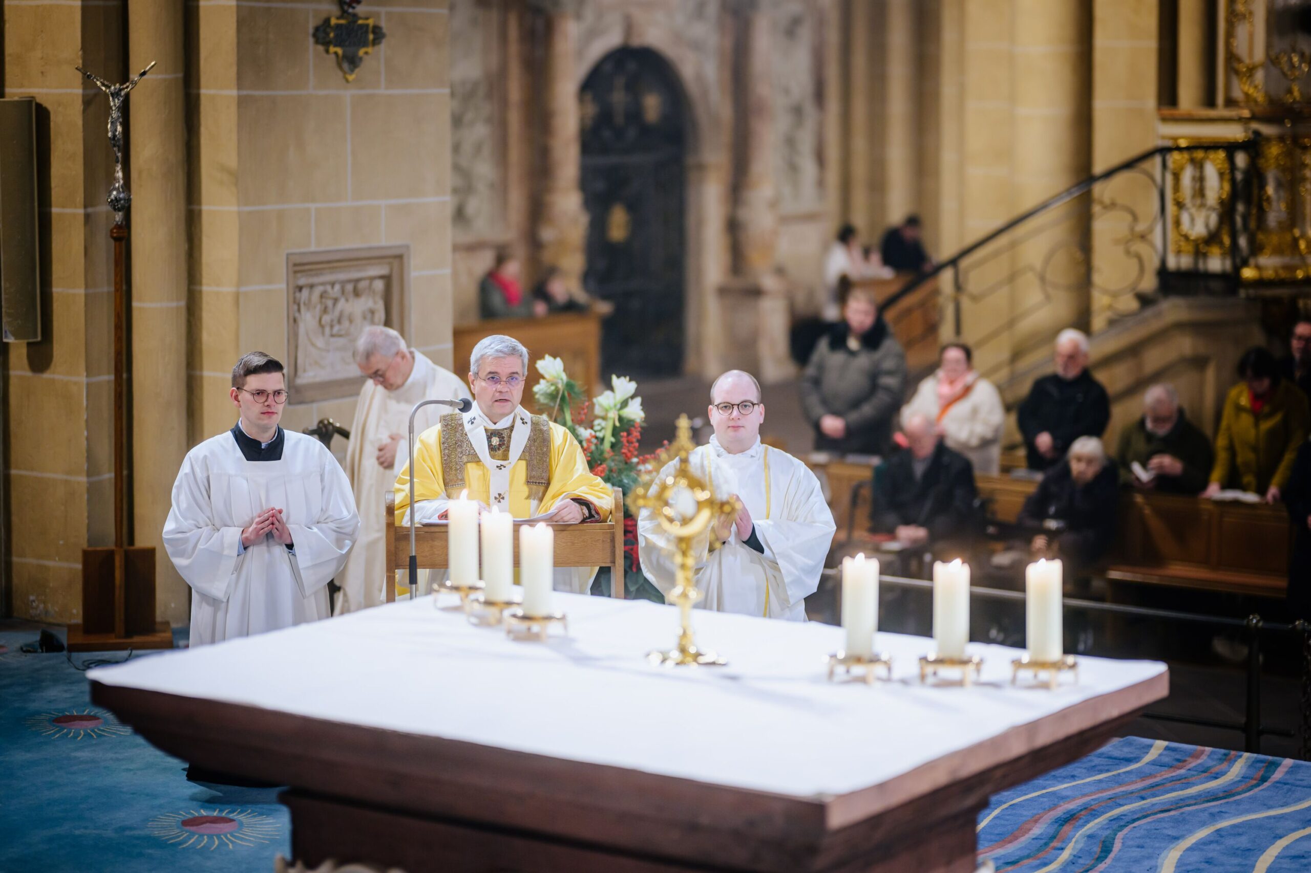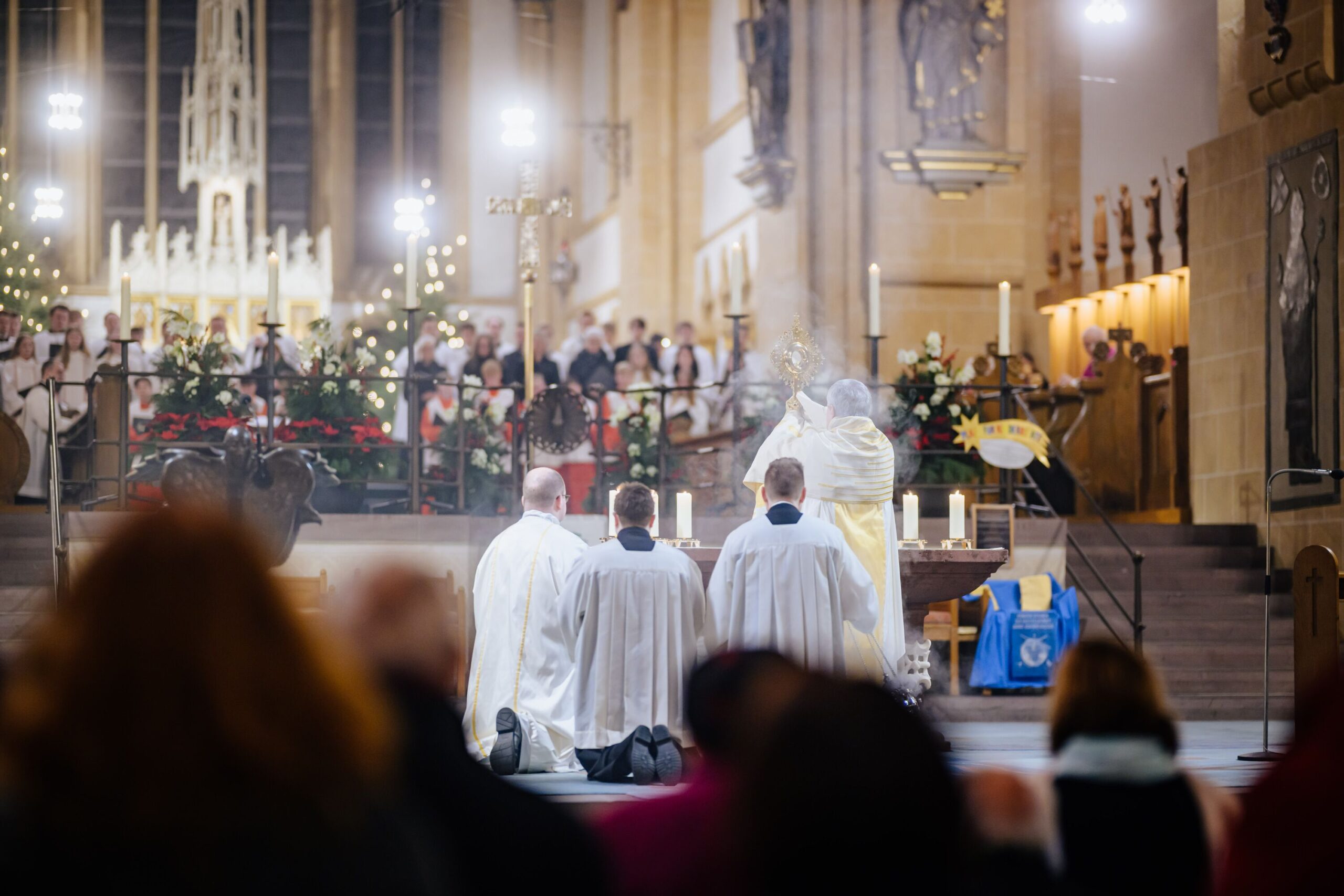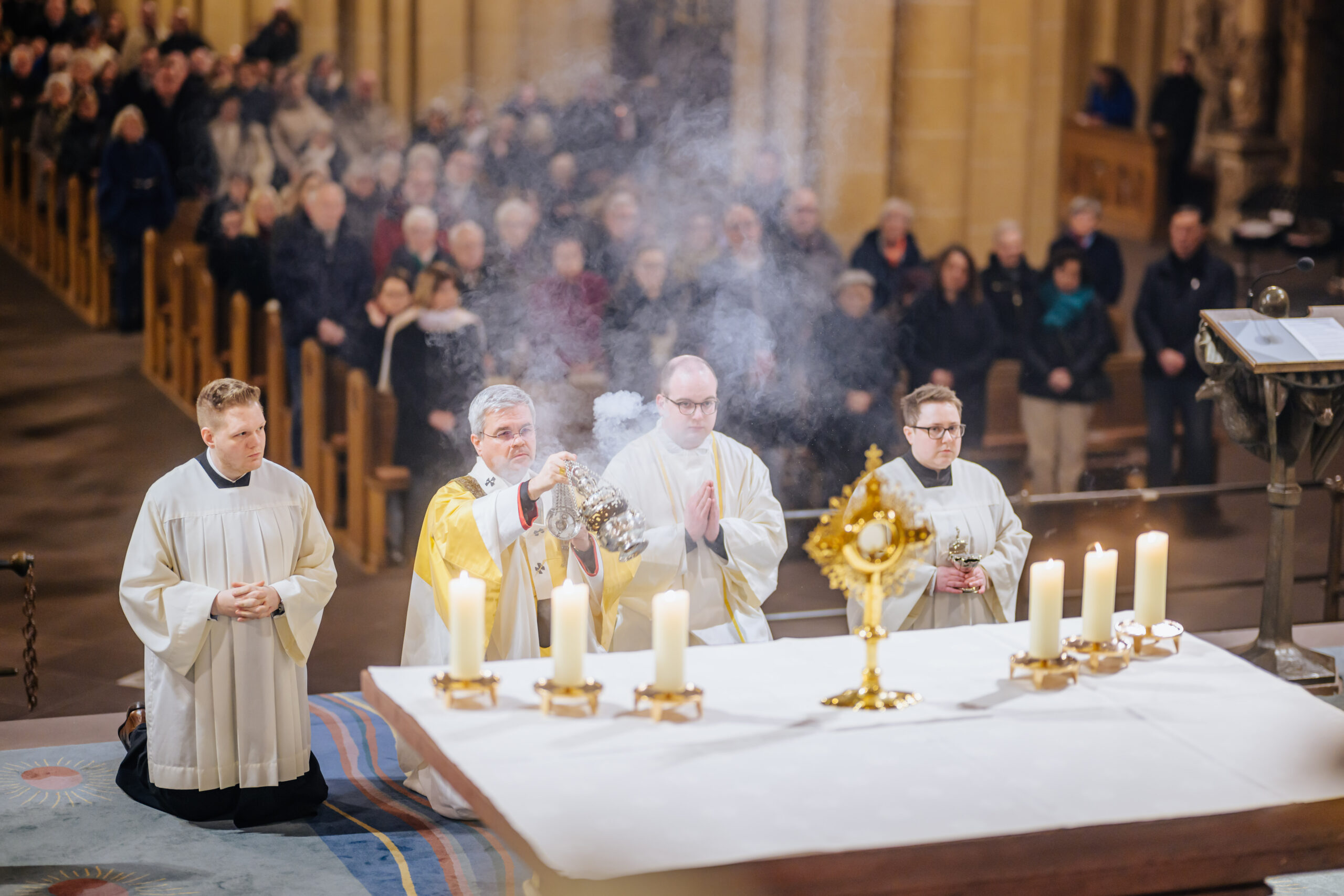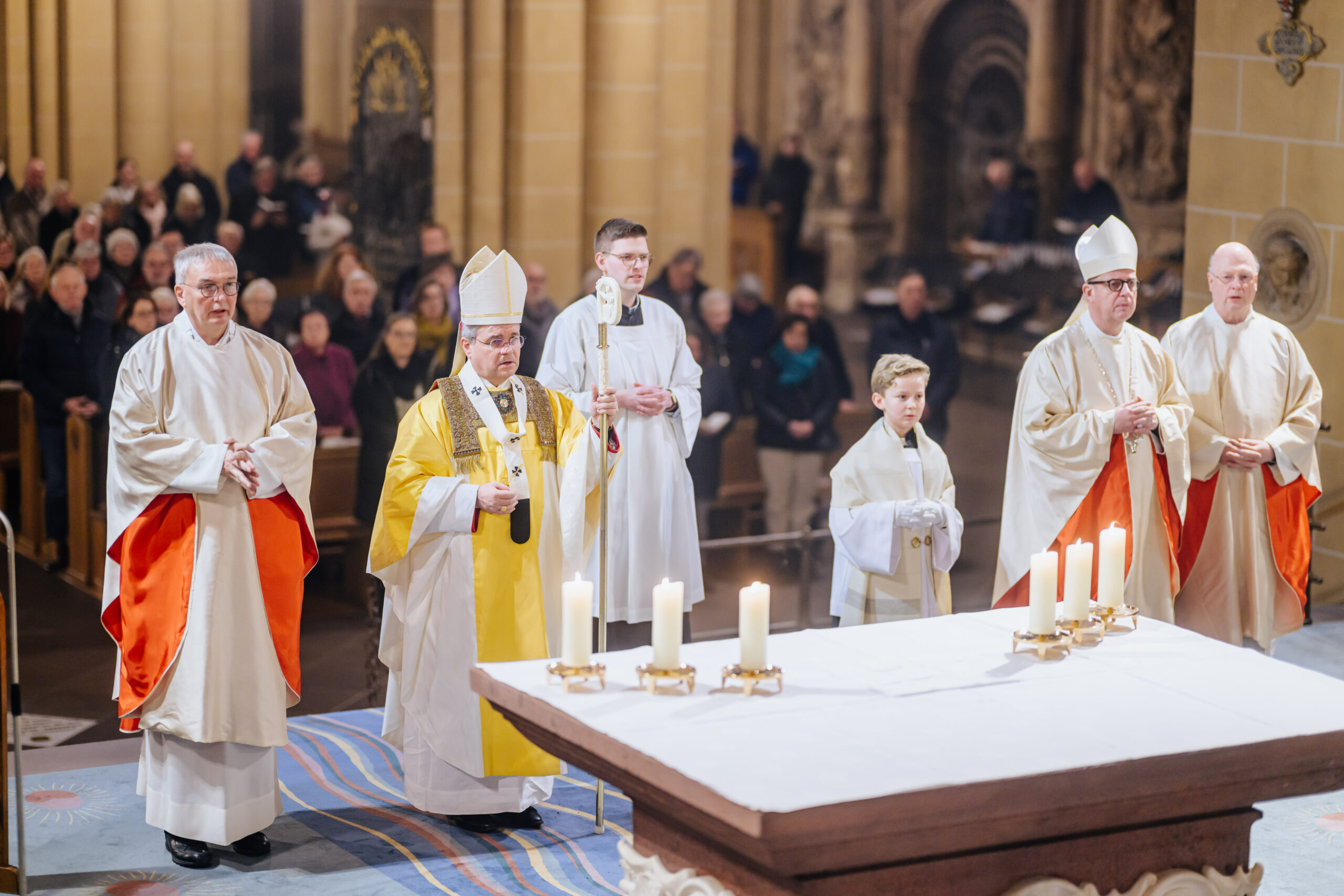 Erzbischof Dr. Udo Markus Bentz rief am Silvesterabend, 31. Dezember 2024, in der Jahresabschlussmesse 2024 im Hohen Dom zu Paderborn zu einem geistlichen Umgang mit der Zeit auf. In seiner Predigt bekräftigte der Paderborner Erzbischof, dass aus der Erfahrung, wie Gott sein Volk in der Vergangenheit begleitet und durch Krisen hindurchgeführt habe, Vertrauen und Hoffnung auf Zukunft hin geschöpft werden könne. „Aus der Erfahrung der Vergangenheit – Gott ist treu – können wir Hoffnung, Kraft und Vertrauen für die vor uns liegenden Aufgaben schöpfen.“ Erzbischof Dr. Bentz ermutigte dazu, das Gewesene nicht als erledigt abzuhaken, vielmehr sich des Vergangenen zu erinnern, um daraus die geistliche Kraft – das Vertrauen, den Mut, die Hoffnung – zu schöpfen, in die Zukunft zu gehen. Zugleich betonte der Paderborner Erzbischof die Bedeutung und „Kostbarkeit“ des Augenblicks, der Gegenwart, des „Jetzt“. Zahlreiche Gläubige feierten in der Bischofskirche des Erzbistums Paderborn das Pontifikalamt zum Jahresabschluss 2024. Am Ende spendete Erzbischof Dr. Udo Markus Bentz nach einer Zeit der Anbetung den Gläubigen den Eucharistischen Segen für das neue Jahr 2025. Der Gottesdienst wurde im Livestream aus der Kathedralkirche der Erzdiözese übertragen.