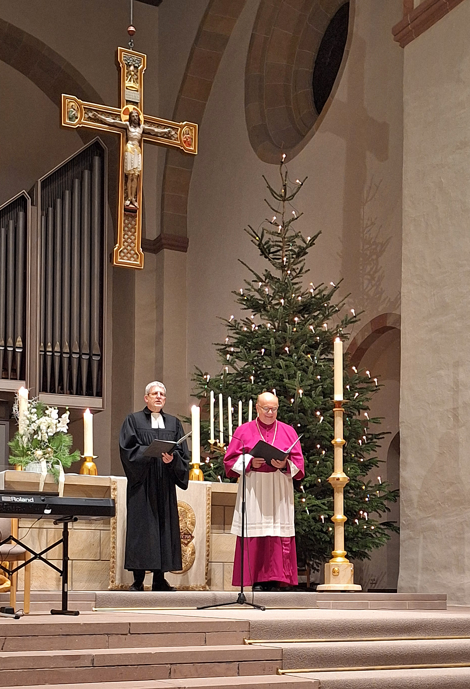„Wir erinnern uns an die Menschen, die während der NS-Zeit ermordet wurden: Jüdinnen und Juden, Sinti und Roma, queere Menschen, behinderte Menschen, politisch Andersdenkende, Menschen aus Osteuropa und viele andere“, sagte Volker Neuhoff, Superintendent des Evangelischen Kirchenkreises Paderborn. Dieser Gottesdienst solle eine Unterbrechung, ein Stillstehen sein, so Neuhoff. Als Zeichen des Gedenkens an die Opfer wurden Kerzen an einem siebenarmigen Leuchter entzündet.