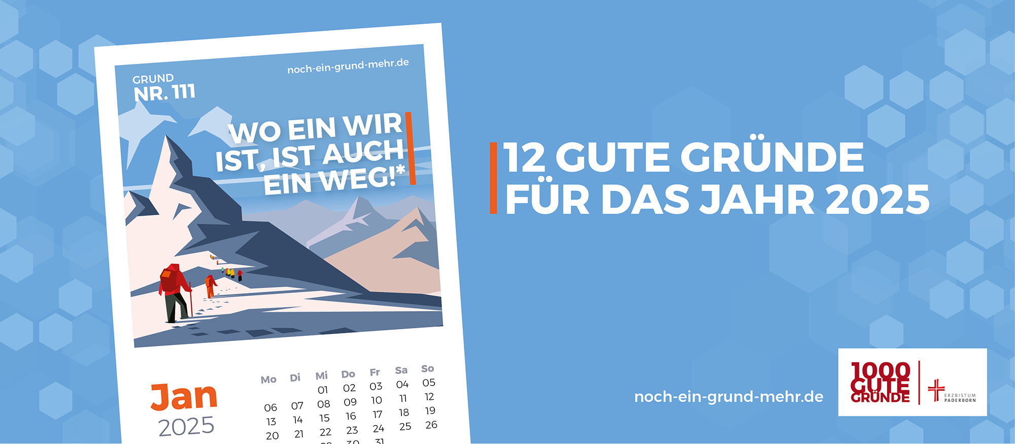 Gott hat uns alle in unserer Einzigartigkeit erschaffen – die nimmt uns auch niemand weg. Aber richtig stark werden wir erst in Gemeinschaft. Hier verbinden sich unsere unterschiedlichen Fähigkeiten und werden größer als die Summe des Ganzen: in Familie, Kirche oder Gesellschaft. Gemeinschaftlich werden Wege geebnet, die wir allein vielleicht nie gefunden oder uns nicht zu gehen getraut hätten. Wo ein Wir ist, ist auch ein Weg – suchen wir gemeinsam nach neuen Wegen im vor uns liegenden Jahr!