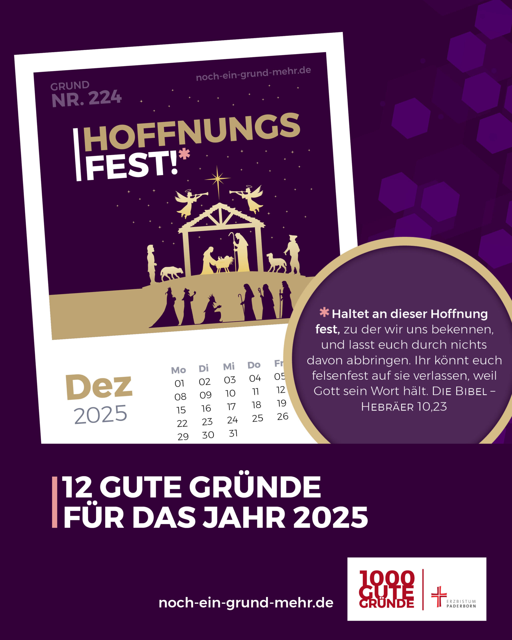 Trotzdem oder gerade deshalb feiern wir zu Weihnachten Jahr für Jahr ein Wunder: Gott wird Mensch. Gott wird Mensch in all der scheinbar hoffnungslosen Unzulänglichkeit dieser Welt. Gott bleibt nicht als ferne Vertröstung „irgendwo“. Er hat uns seinen Sohn geschenkt, der selbst Mensch geworden ist und in seinem Leiden und Sterben durch die hoffnungslosesten Stunden gegangen ist, die ein Mensch durchleben kann. Durch seine Geburt, sein Leiden und Sterben und seine Auferstehung ist er unsere Hoffnung. Gerade deshalb können wir fest in der Hoffnung sein – und Weihnachten als Hoffnungsfest feiern.