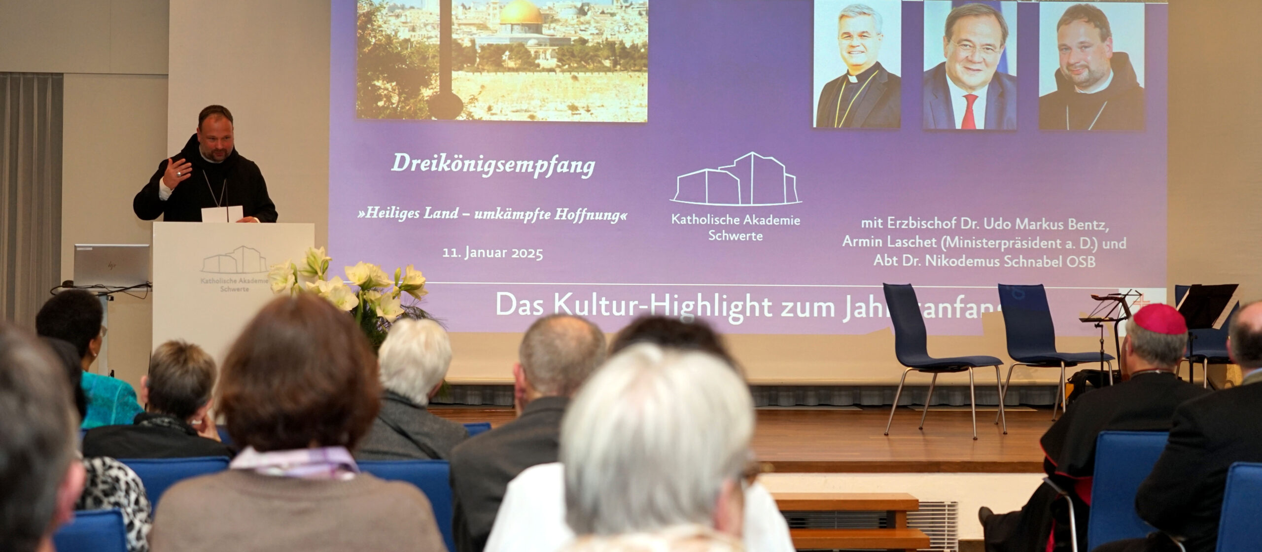 Erzbischof Dr. Udo Markus Bentz, der auch Vorsitzender der Arbeitsgruppe Naher und Mittlerer Osten der Deutschen Bischofskonferenz ist, hob das verbindende Potential hervor, das den Christen im Nahen Osten zukomme: „Christen leben auf allen Seiten des Krieges, in Palästina und als israelische Staatsbürger in Israel.“ Er habe die Hoffnung, dass „Christen mit ihrem Gespür als Angehörige einer Religion des Wortes dazu beitragen, die zerbrochenen Gesprächsbrücken wieder neu aufzubauen“, erläuterte Erzbischof Dr. Bentz. Religion, betonte er, sei nicht der Treiber des Konfliktes.