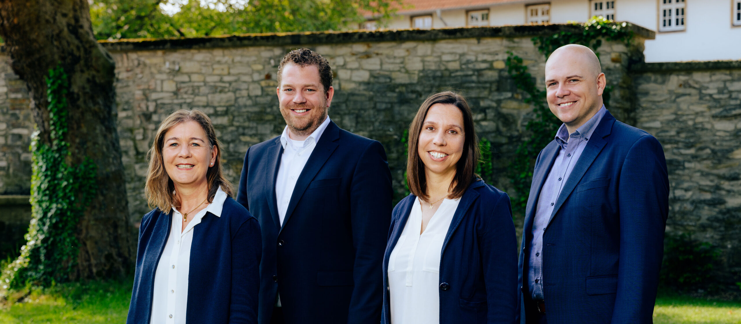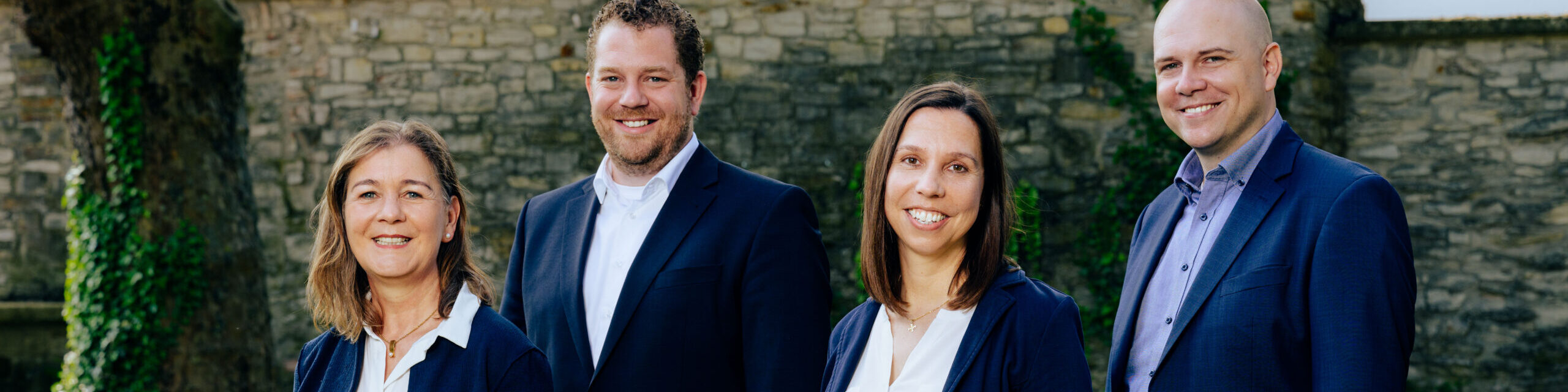 Barbara zum Hebel, Xenia Taubmann (beide Bereich Bauen) Simon Rüffin (Bereich Pastorale Dienste) und Thomas Hänsdieke (Bereich Finanzen) geben Hilfestellung und beraten auf Wunsch.