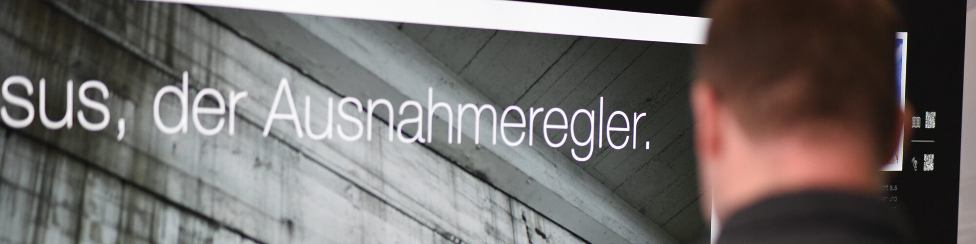 „Ich war sehr neugierig auf die Ausstellung. Nicht alles spricht mich an, manches finde ich auch gewagt“, geht Jens S. (Name von der Redaktion geändert) begeistert durch die Aufsteller und schaut auf die Bilder. „Ich bin katholisch und habe einen Zugang zum Glauben“, gesteht der 40-Jährige, der nun seit 8 Monaten im offenen Vollzug in Bielefeld, aber schon seit 17 Jahren in Haft ist. „Jesus, der Mitbewohner“, spricht ihn am meisten an. „Er ist auch in der Haft mein Mitbewohner, zu dem ich am Morgen und am Abend bete.“