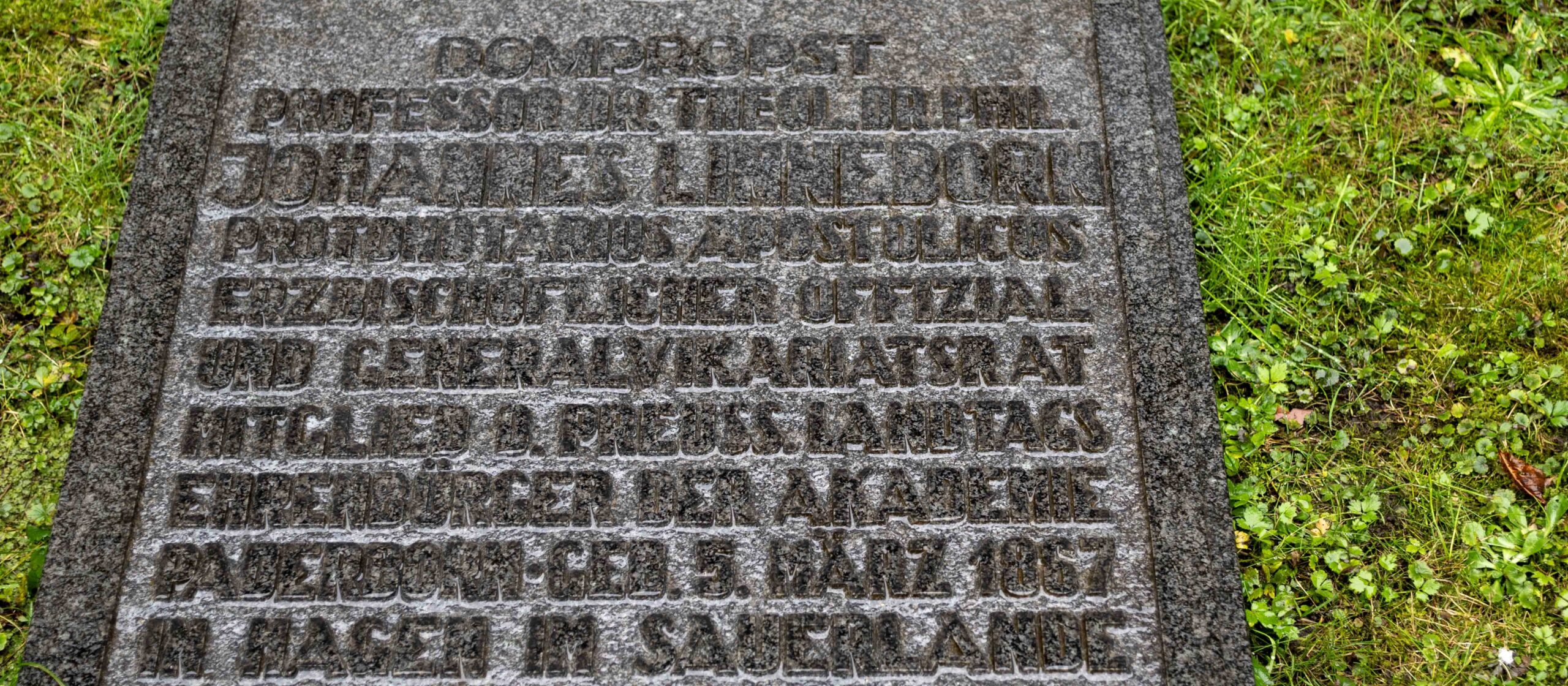 Am 5. März 1867 in Hagen bei Sundern im Sauerland geboren, studierte Johannes Linneborn nach seinem Abitur im Dreikaiserjahr 1888 am Gymnasium Theodorianum in Paderborn an der heutigen Theologischen Fakultät. 1892 wurde er im Hohen Dom zu Paderborn zum Priester geweiht. Nach seelsorglicher Tätigkeit im damaligen Ostteil des Bistums in Alsleben an der Saale und Gerbstedt (heute: Bistum Magdeburg) promovierte Johannes Linneborn in Münster zum Doktor der Philosophie und der Theologie. Seine Aufmerksamkeit galt der kirchlichen Rechtsgeschichte, insbesondere der Orden. Von 1910 bis 1919 und nochmals von 1921 bis 1922 übernahm er in Paderborn den Lehrstuhl für Kirchenrecht. Zudem arbeitete er im Paderborner Generalvikariat, der Verwaltungsbehörde des Bistums Paderborn, wirkte als Domkapitular, Offizial und später als Dompropst. Seit 1924 gehörte er als Abgeordneter des Zentrum dem Preußischen Landtag an. Johannes Linneborn starb am 22. Januar 1933. Sein Grab befindet sich auf dem Kapitelsfriedhof des Paderborner Domes, nördlich der Westfalenkapelle.