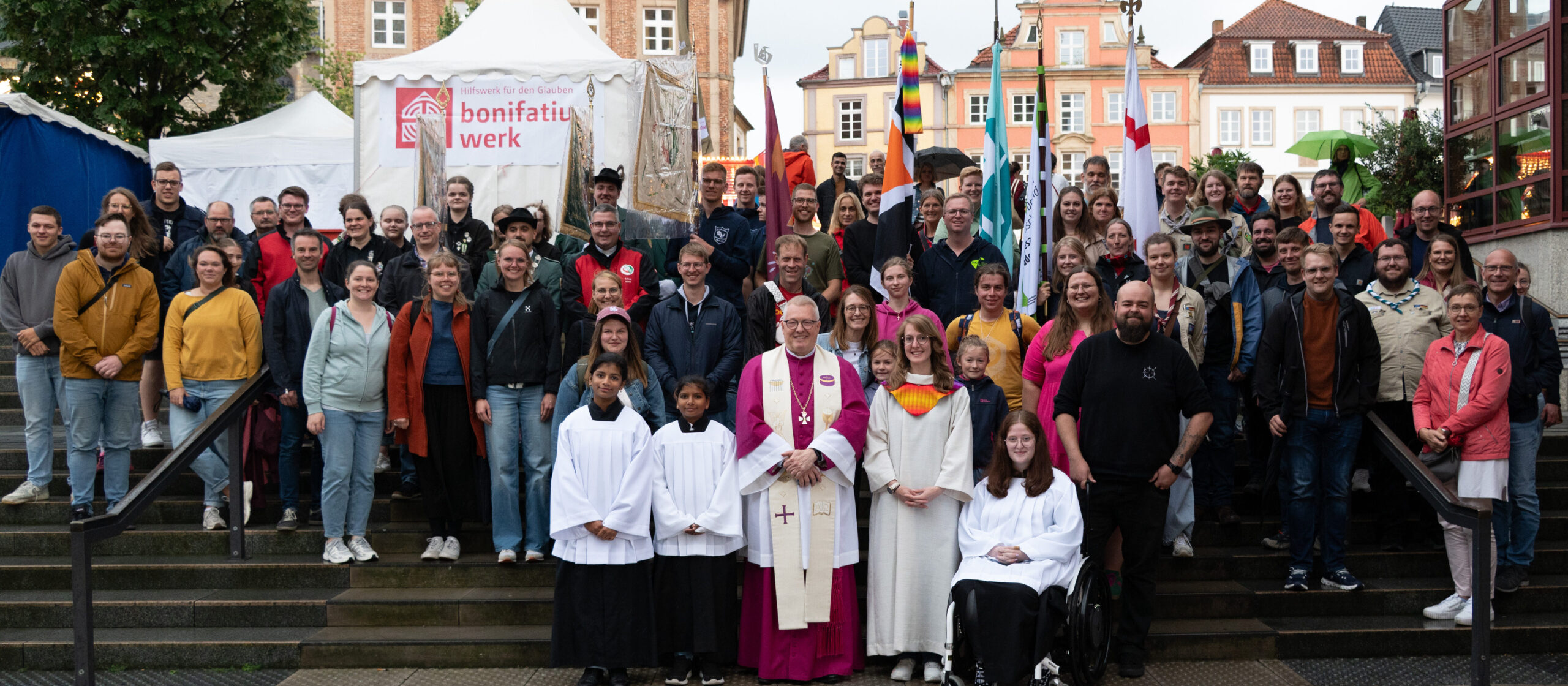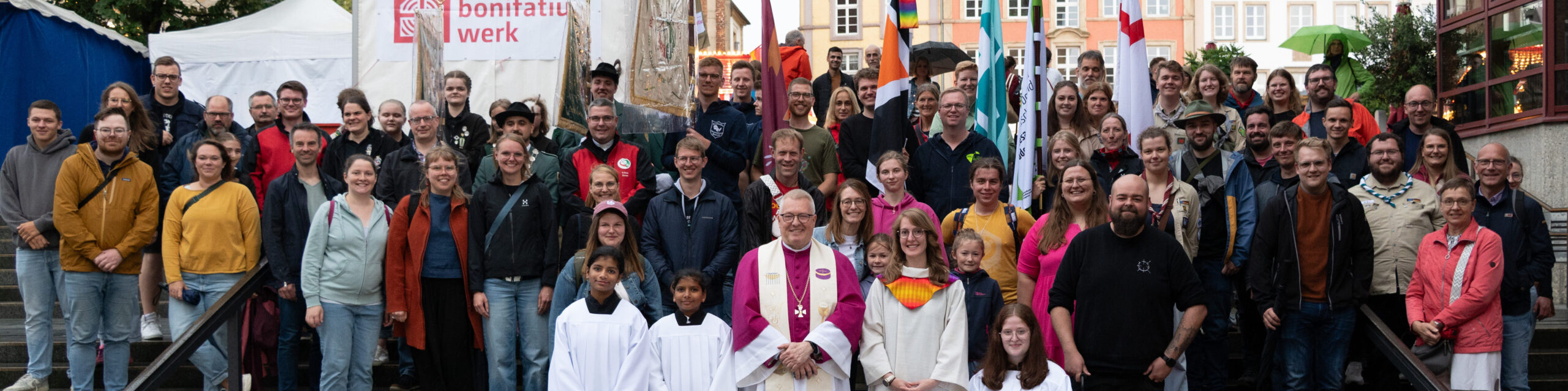 Während draußen wieder mal der Regen auf den Paderborner Dom niederging, zogen drinnen die Jugendverbände mit ihren Fahnen feierlich zum Gottesdienst ein. Popkantoren Caspar Beule und Nils Kollmeier gestalteten die Liturgie musikalisch – mit ruhigen, atmosphärischen Klängen, die den Altarraum in eine dichte, spirituelle Stimmung tauchten.