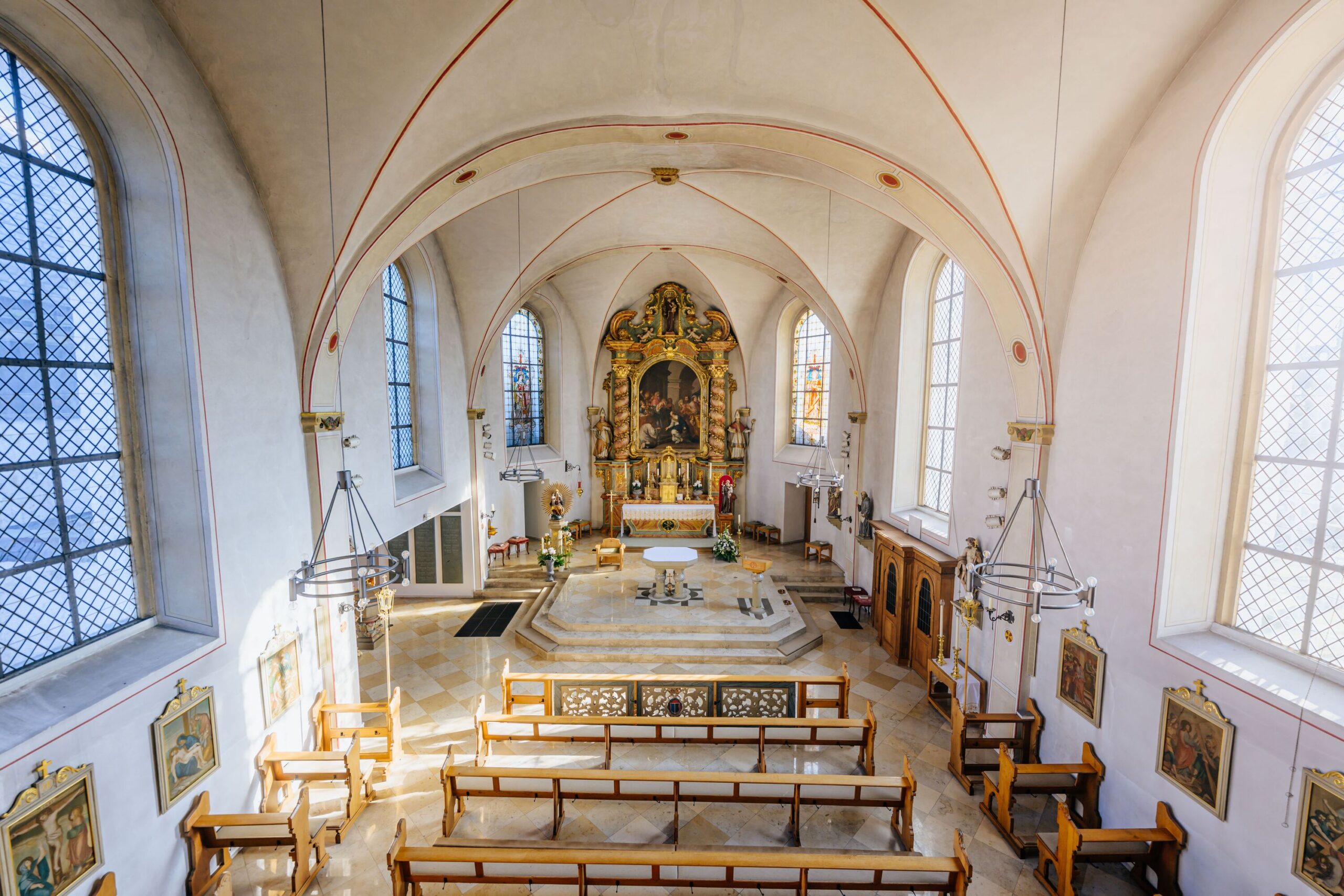 Den Blick von der Orgelempore in das Kirchenschiff und auf den Hochaltar mag Markus Jonas besonders gern. Wenn der Kirchenraum von St. Antonius wie auf dem Kalenderbild verlassen ist, genießt der engagierte Christ die Stille, die das Gotteshaus in Bad Wünnenberg ausstrahlt.