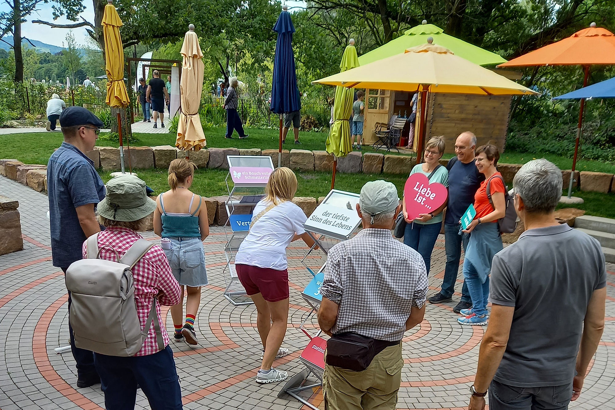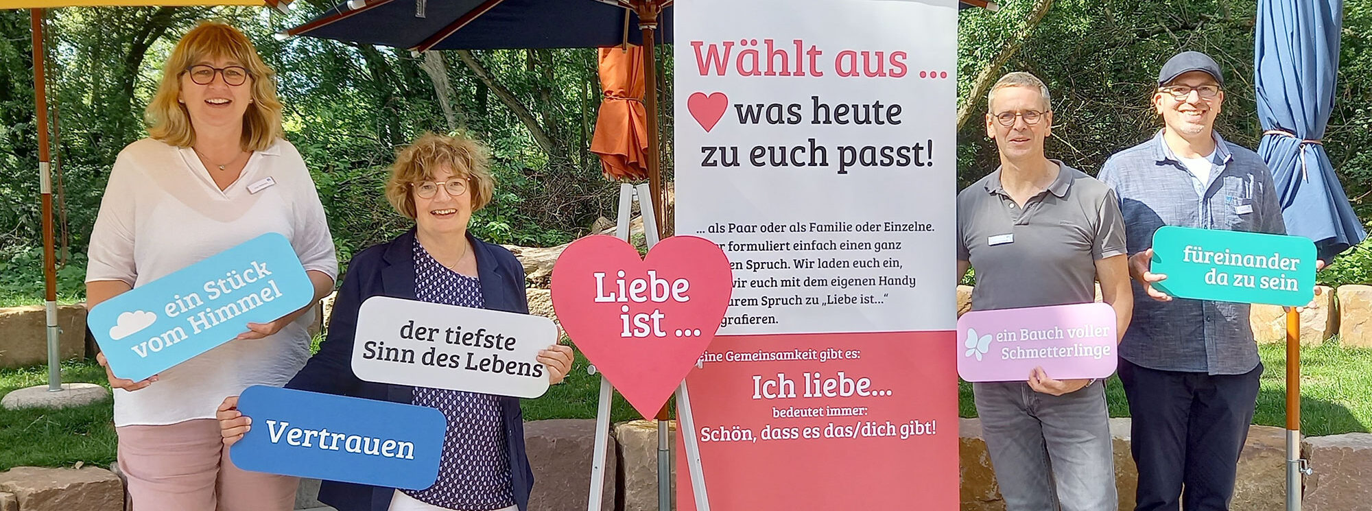 Zu der EFL-Aktion im Schöpfungsgarten der Landesgartenschau in Höxter gibt es auch eine Broschüre mit Impulsen zum Thema „Liebe ist …“, die die tieferen Dimensionen der Liebe erschließt – viele Teilnehmende der Aktion haben die Broschüre im Anschluss an ihr Foto mitgenommen.