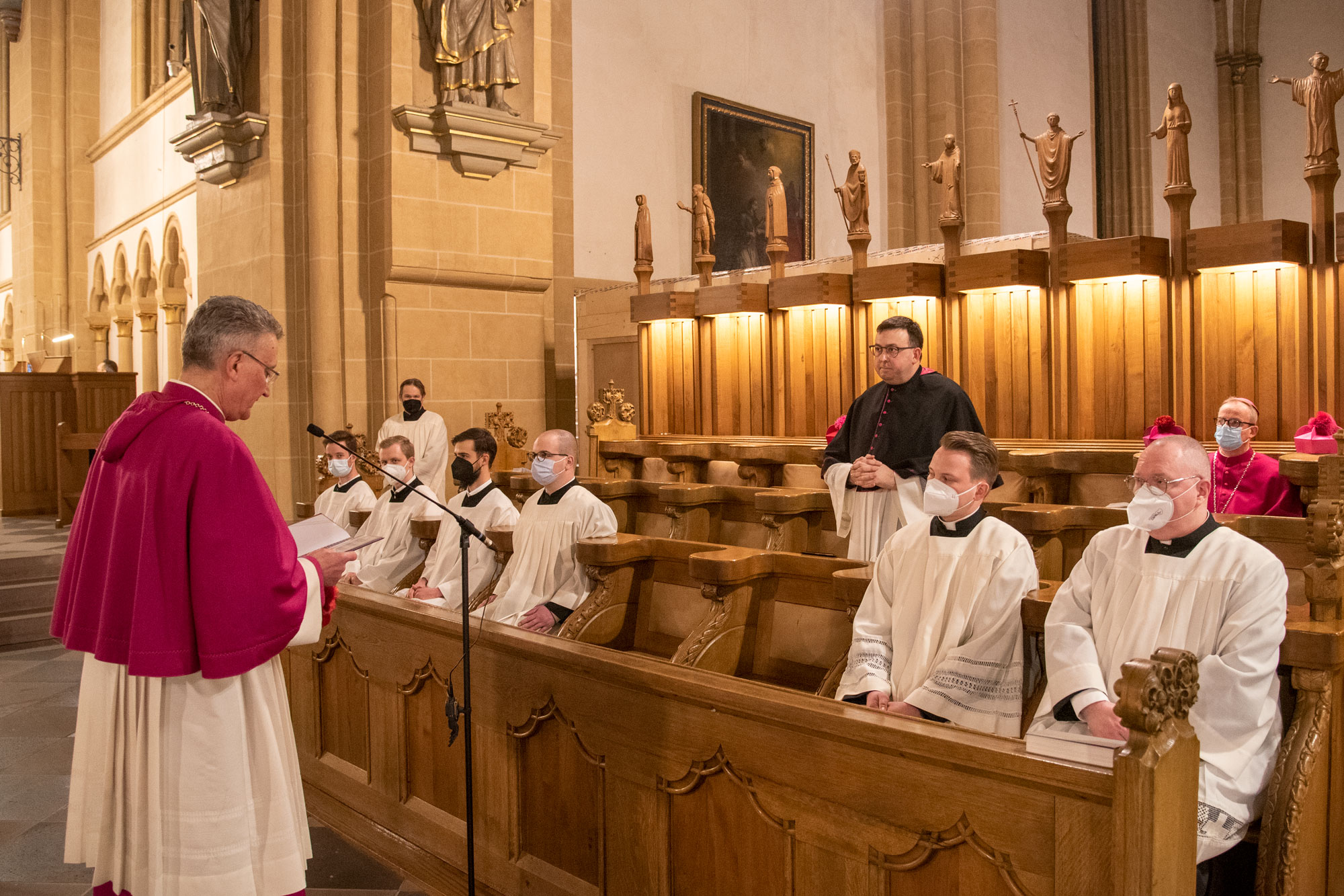 Vor der Eucharistiefeier zog der neuernannte Domvikar mit den anwesenden residierenden und nichtresidierenden Domkapitularen, den Emeriti sowie den Domvikaren vom Paradiesportal in den Altarraum der Kathedralkirche des Erzbistums Paderborn. Dort legte Subregens Klauke vor den im Altarraum versammelten Mitgliedern des Metropolitankapitels unter anderem das Versprechen ab, die Statuten und Gewohnheiten des Hohen Domes und des Paderborner Metropolitankapitels treu zu bewahren.