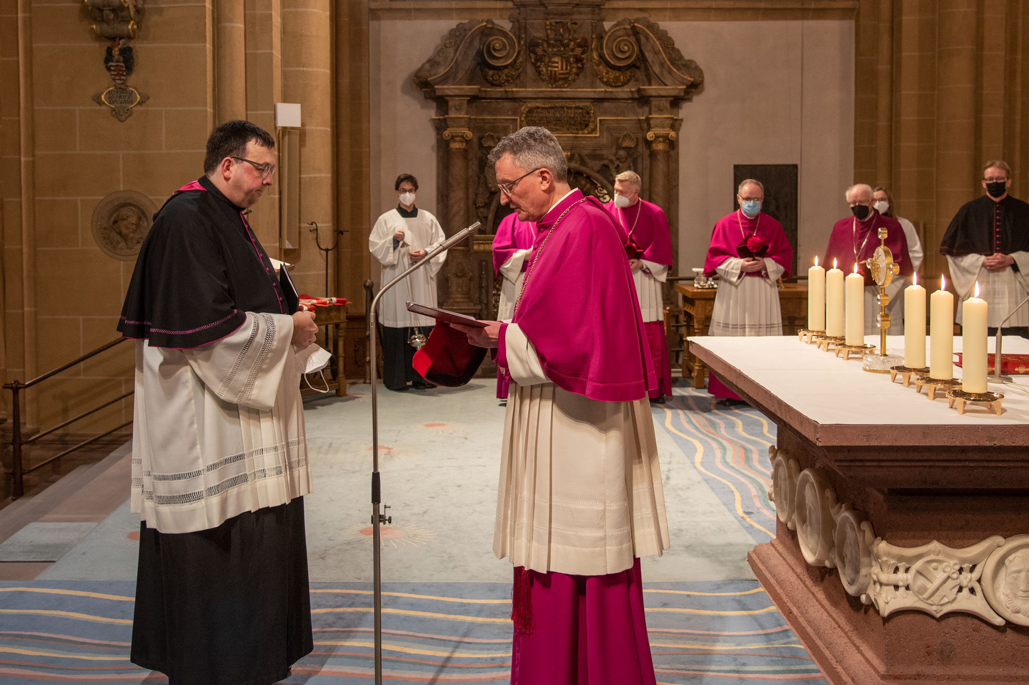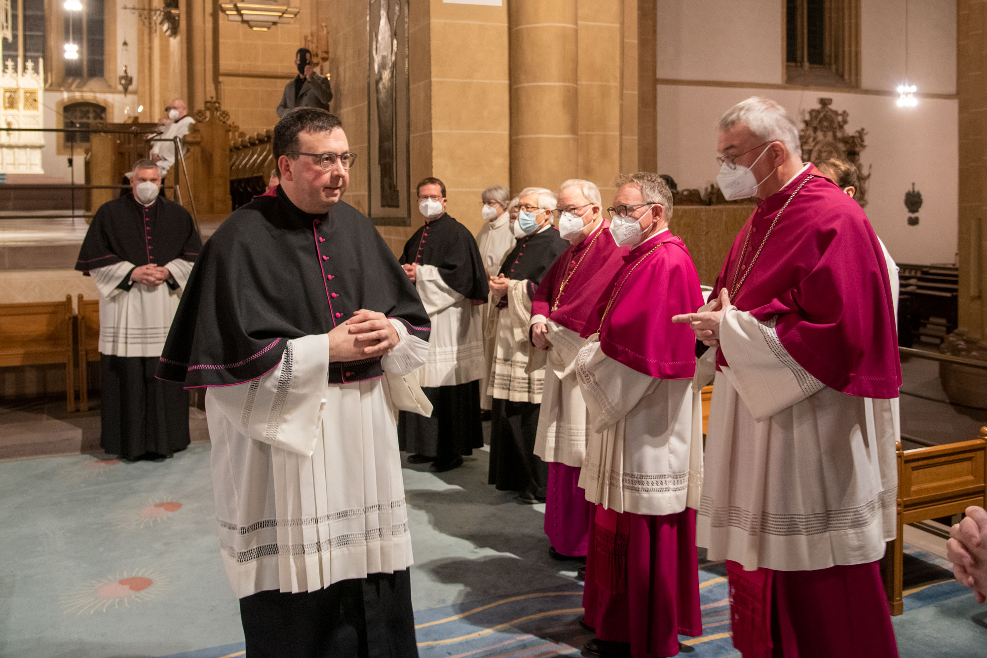 Der Paderborner Dom hat einen neuen Domvikar und Dompastor: Matthias Klauke wurde am Samstag, 5. Februar 2022, zu Beginn der Vorabendmesse im Hohen Dom von Dompropst Monsignore Joachim Göbel in seine neue Aufgabe als Domvikar und Dompastor im Paderborner Metropolitankapitel eingeführt. Erzbischof Hans-Josef Becker hatte den Subregens des Erzbischöflichen Priesterseminars und Mitarbeiter der Diözesanstelle Berufungspastoral unter Beibehaltung seiner bisherigen Aufgaben zum neuen Domvikar am Hohen Dom zu Paderborn ernannt. Der 44-jährige Priester, der im Paderborner Priesterseminar für die Ausbildung zukünftiger Priester zuständig ist, folgt als Domvikar und Dompastor auf Dr. Nils Petrat, der für ein Jahr in Frankfurt am Main bei einem Projekt der Jesuiten auf dem Campus der Hochschule St. Georgen mitarbeitet.