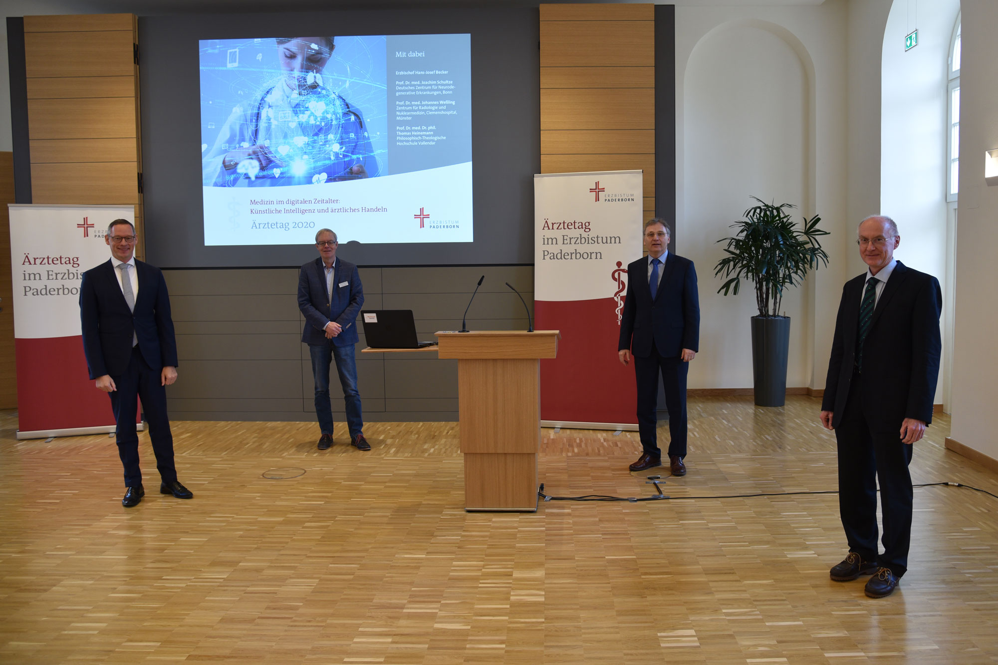 In der Dokumentation ist zunächst der Eröffnungsimpuls von Erzbischof Hans-Josef Becker „Medizin im digitalen Zeitalter: Künstliche Intelligenz und ärztliches Handeln“ nachzulesen. Auch der Vortrag von Professor Dr. med. Joachim Schultze vom Deutschen Zentrum für Neurodegenerative Erkrankungen (Bonn) mit dem Thema „Quo vadis? Grundlagen und Potenziale künstlicher Intelligenz in der Medizin“ kann in der Dokumentation nachvollzogen werden. Der Vortrag „Back to the future! Zum Einsatz der künstlichen Intelligenz am Beispiel der Radiologie“ von Professor Dr. med. Johannes Weßling vom Zentrum für Radiologie, Neuroradiologie und Nuklearmedizin am Clemenshospital in Münster kann nachgelesen werden, ebenso wie der Beitrag von Professor Dr. med. Dr. phil. Thomas Heinemann von der Philosophisch-Theologischen Hochschule Vallendar, der sich dem Thema „Mensch und Maschine – ethische Herausforderungen der Digitalisierung (in) der Medizin“ widmete.