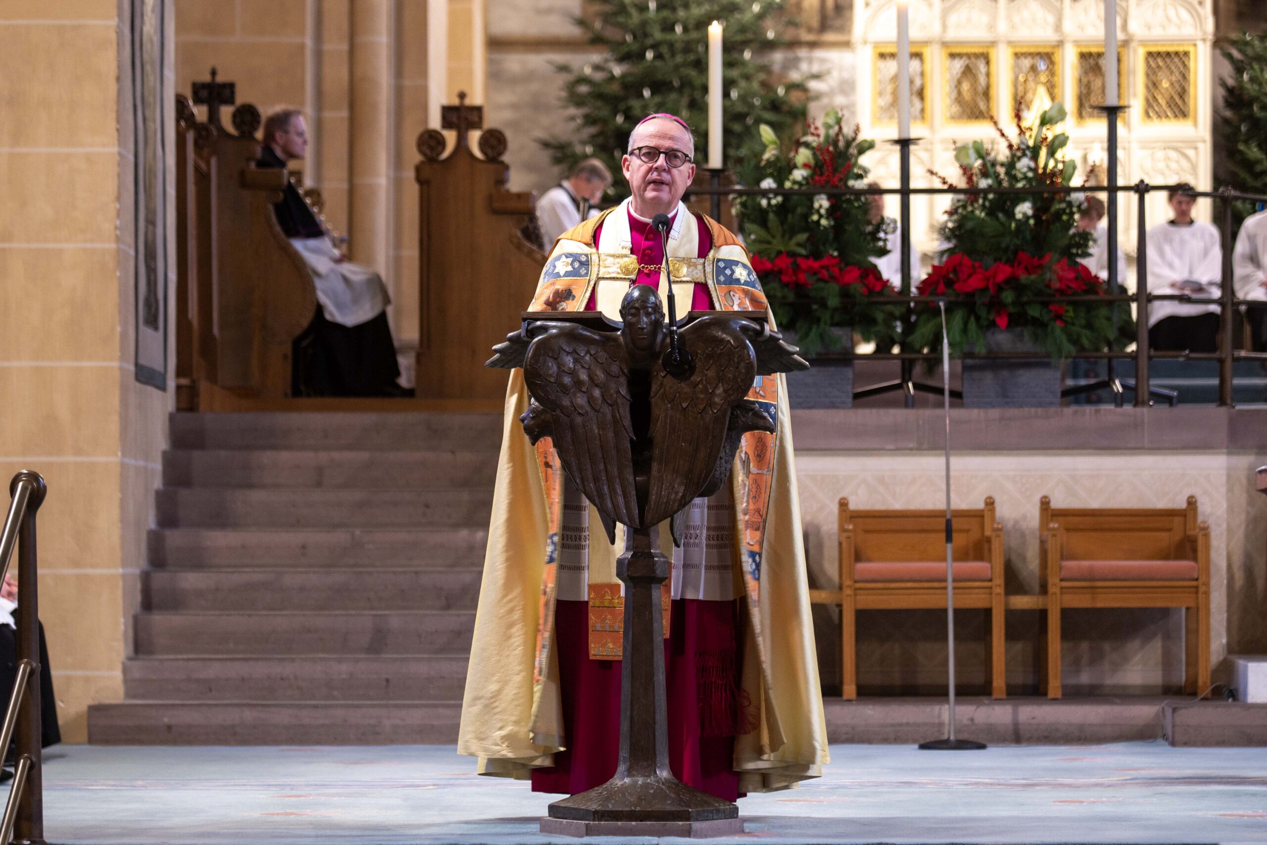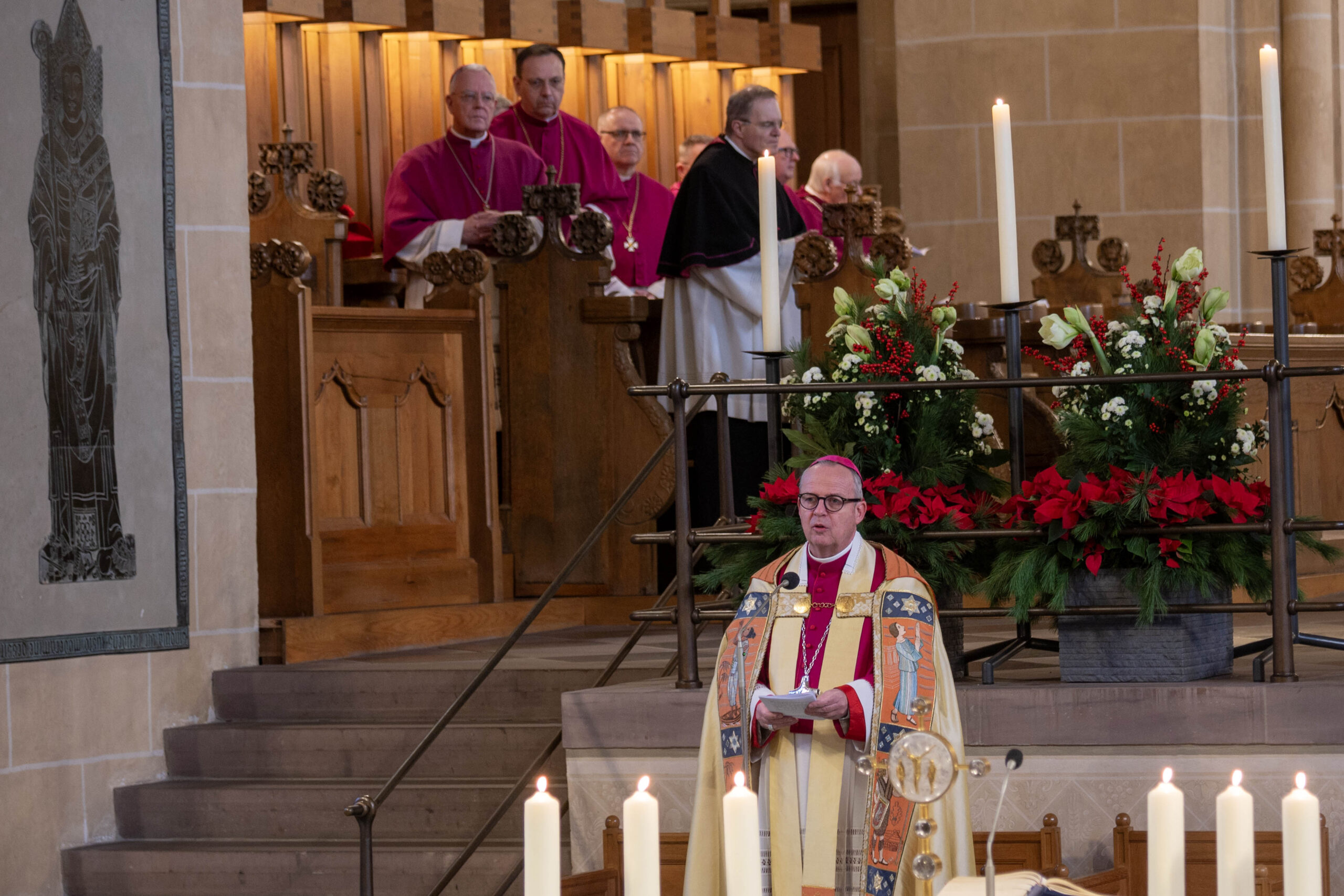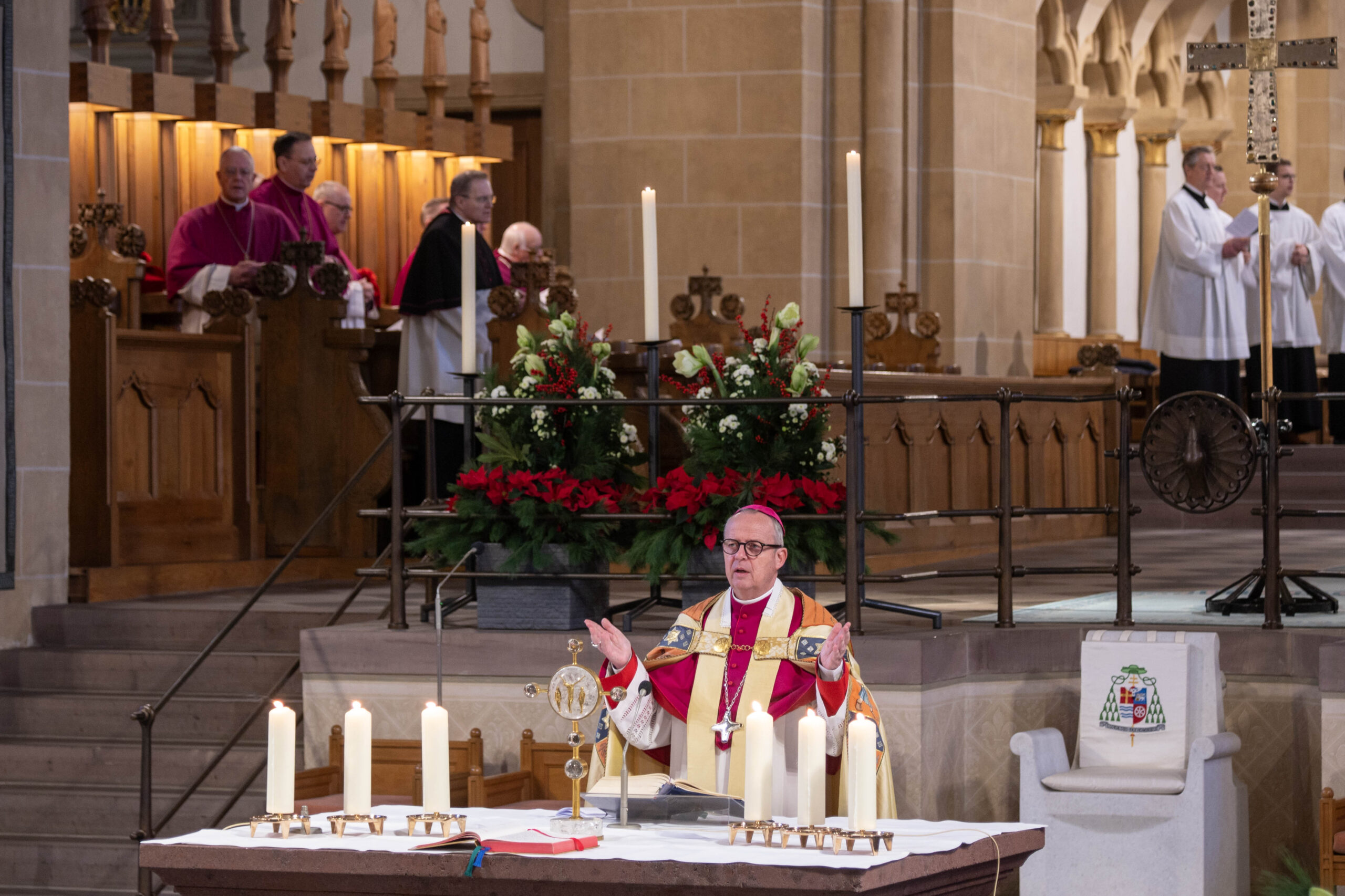 Zum offiziellen Auftakt des Weihnachtsfestes und der Weihnachtszeit 2025 feierte Weihbischof Josef Holtkotte an Heiligabend, 24. Dezember 2025, um 15 Uhr, einen Vesper-Gottesdienst im Paderborn Dom. In seiner Ansprache rief Weihbischof Holtkotte dazu auf, sich in der Heiligen Nacht hineinnehmen zu lassen in die Wahrheit für Gott und die Menschen, sich in Gott festzumachen, vom Heiligen Geist führen zu lassen und sich herausfordern zu lassen von Gottes Liebe: „Bleiben wir Menschen mit Kopf und Verstand und mit Herz und Seele.“